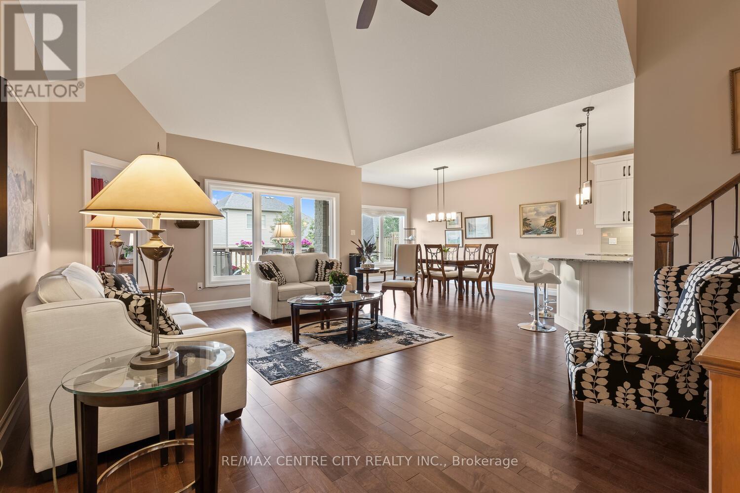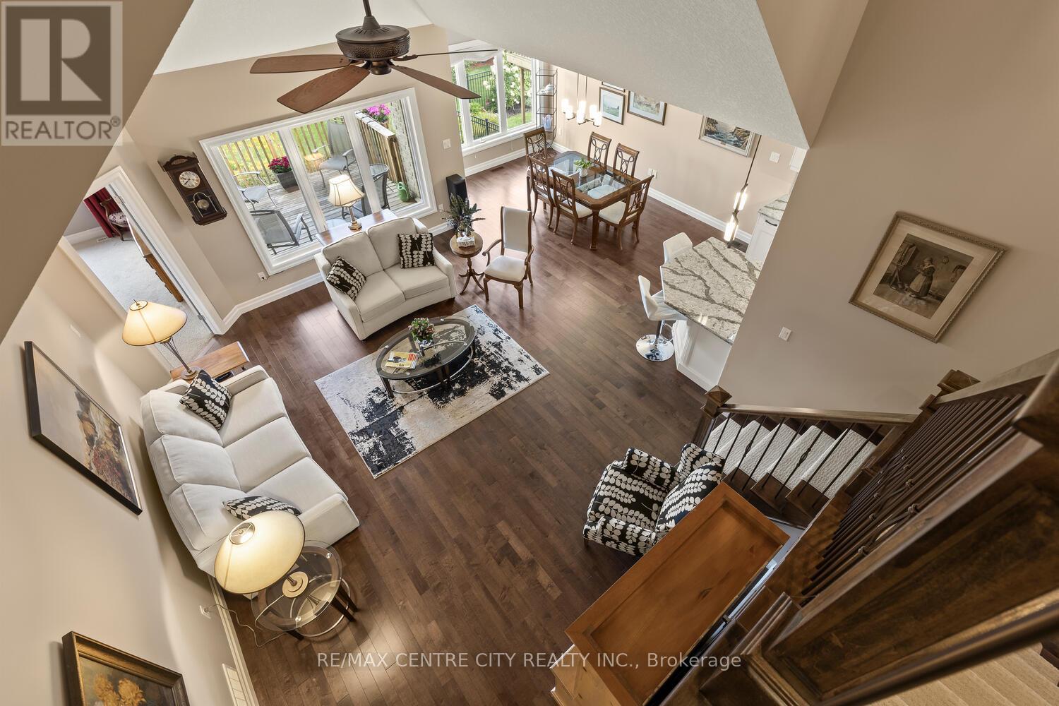 Stonebridge Estates, perfectly located in this beautiful free hold condo enclave in exclusive Sunningdale. Custom built by Rembrandt, what's there not to love about this stunning Bungaloft. Step into this quality home offering (three bedrooms total) with two bedrooms on the main (or the primary bedroom + a den), 2.5 baths, with a separate loft suite bedroom, full bath and reading nook. A stunning open concept plan with an over-sized livingroom (extended floor plan ) offers comfortable living space for friends and family. Quality continues throughout the dining and kitchen area filled with natural light & high quality finishes. The eating area pleasant for everyday dining and yet spacious enough to host your family and friends. Access to the covered deck, a lovely place to relax. This floor plan worked in a variation to the utility room off the kitchen between the garage. Extended to incorporate additional storage / work area. Well thought out! The primary bedroom off to the back corner offer's privacy along with a luxury ensuite. The guest bath tucked up front near the 2nd bedroom or den/office. Laundry and additional closets just across the hall. The lower level remains unfinished but with potential galore. Beautiful 'lookout' windows will create a lovely space. A pleasure to show! Condo Fee Covers Common Area, Grass Cutting & Snow Removal. Owners are responsible for windows, doors, shingles and may enjoy their own gardening. (id:64974)