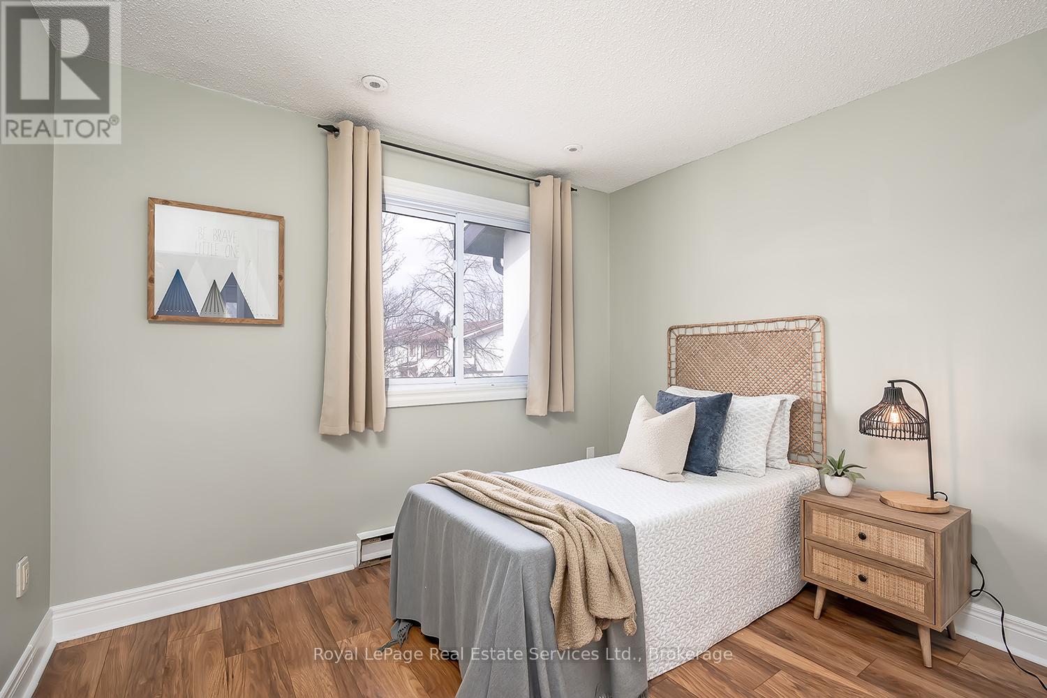 Discover this beautifully updated 3-storey townhome in the highly sought-after Meadowvale community. Featuring 3 spacious bedrooms and 2 bathrooms, this home offers the perfect blend of comfort, style, and functionality-ideal for families or first-time buyers. Step inside to a thoughtfully refreshed interior complete with newer vinyl and laminate flooring, new baseboards throughout, and a fresh coat of paint that creates a bright, modern atmosphere. The updated kitchen is both stylish and practical, showcasing a subway tile backsplash, upgraded hardware, under-cabinet lighting, sleek stainless steel appliances, and ample storage space. The look is beautifully finished with newer, stylish light fixtures throughout the home. Recent quality upgrades provide added peace of mind, including updated electrical, windows (2021), Bath Fitter vinyl tiles in the upstairs bathroom, roof (2023), furnace/heating unit (2017), and air conditioner (2025), plus more. Enjoy added value with maintenance fees that include water, cable TV, and internet. The functional layout features formal living spaces ideal for entertaining, along with a convenient walk-out from the lower level and two private balconies-perfect for relaxing or enjoying outdoor space. Within the complex there is a children's park! Situated in a desirable neighbourhood close to community centre, schools, shopping, and transit, GO station, and major highways, this move-in ready home is an exceptional opportunity you won't want to miss. (id:64974)