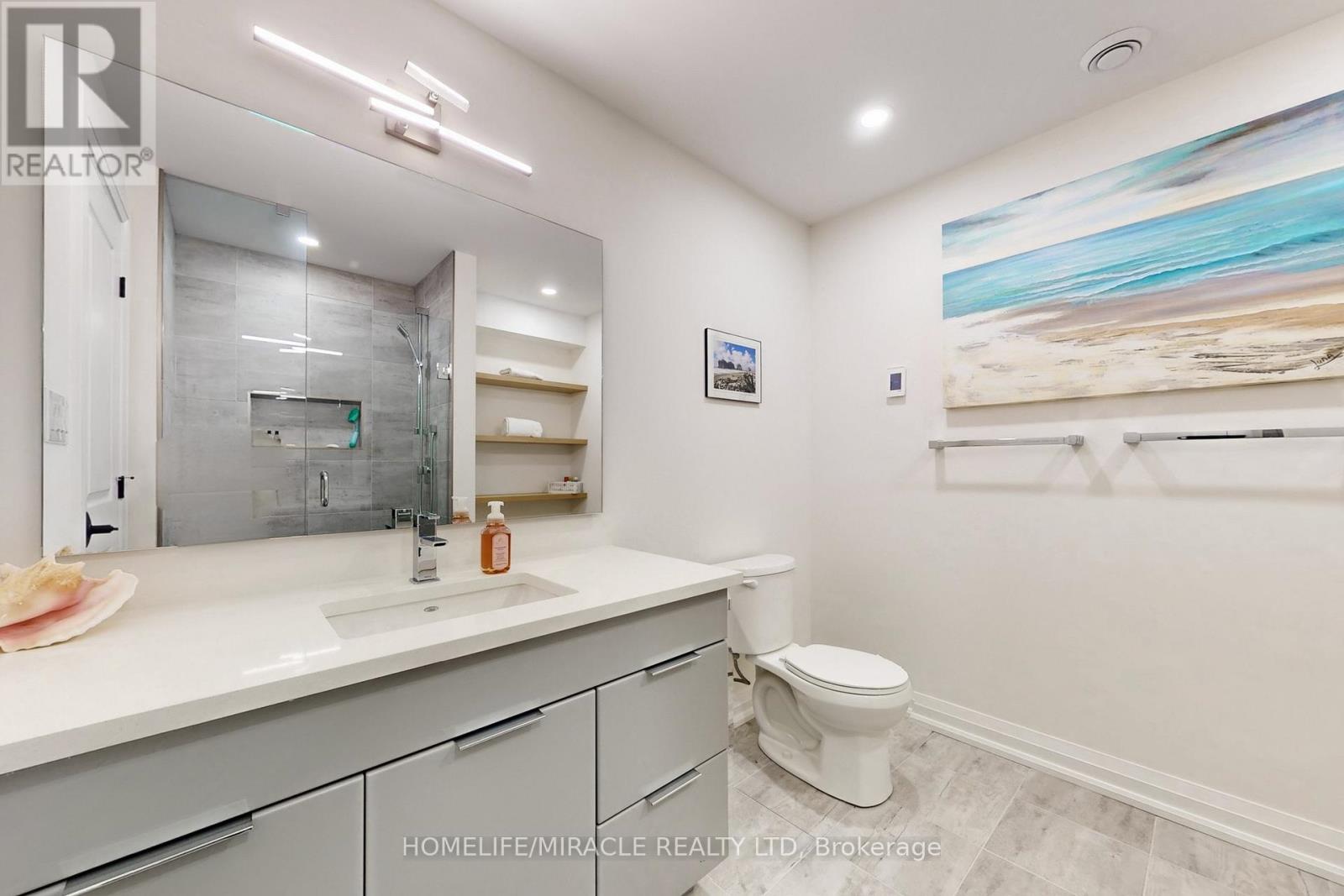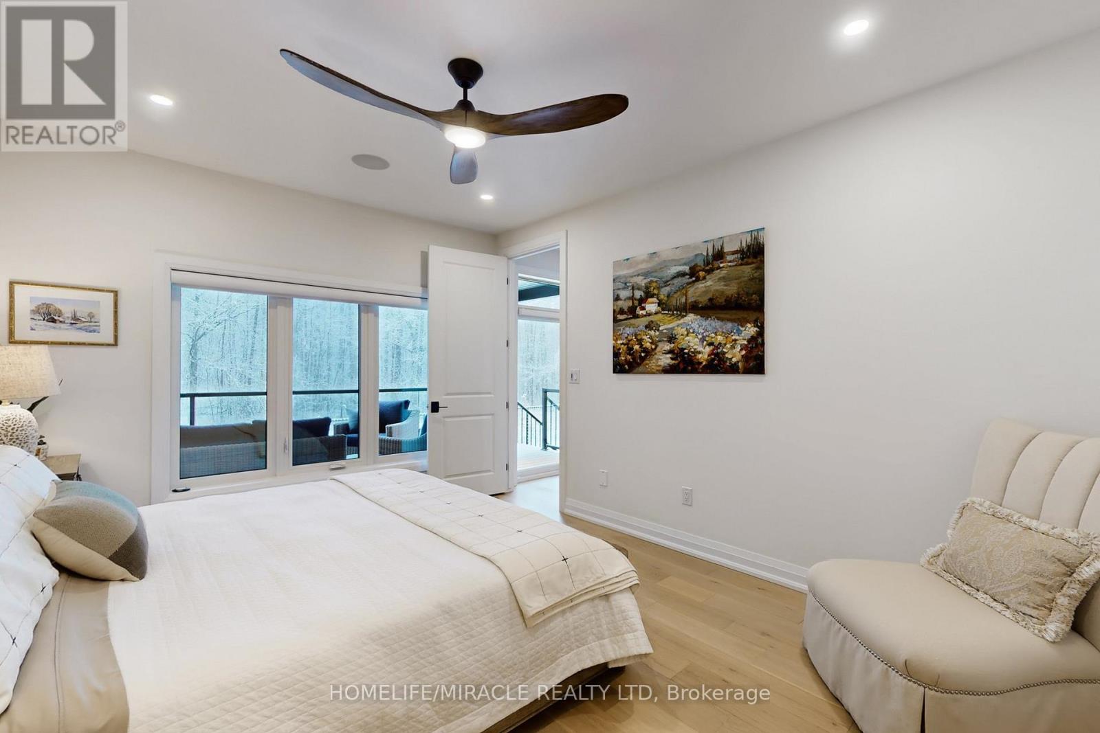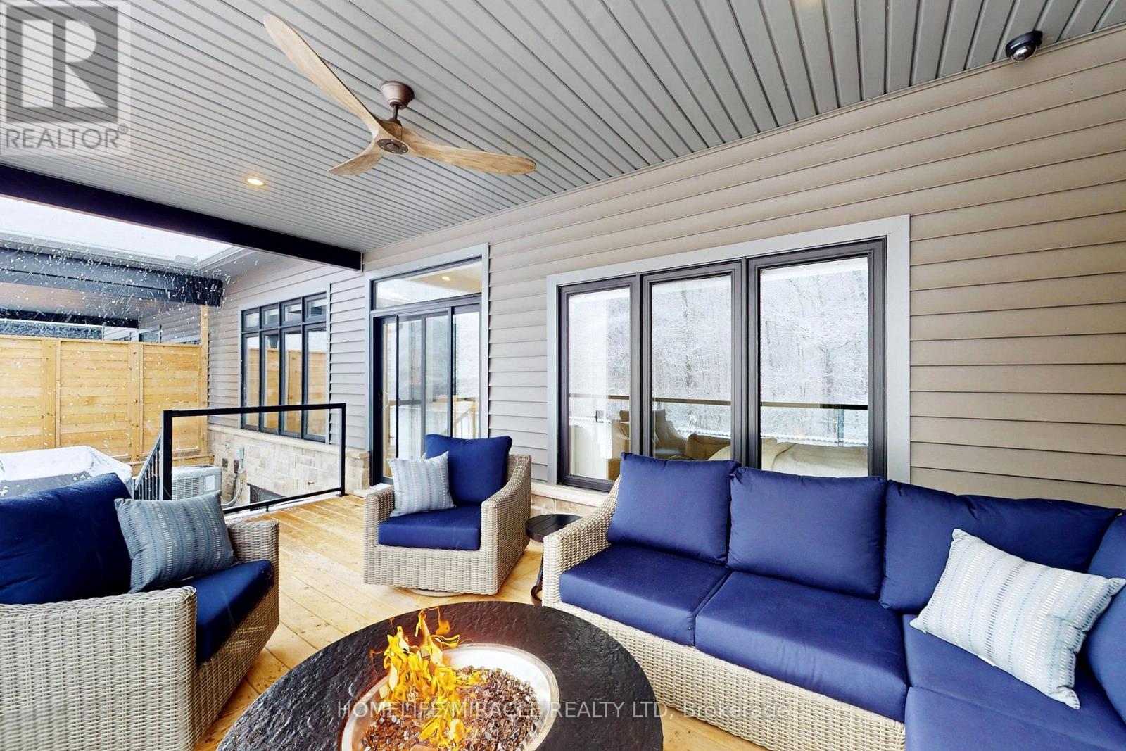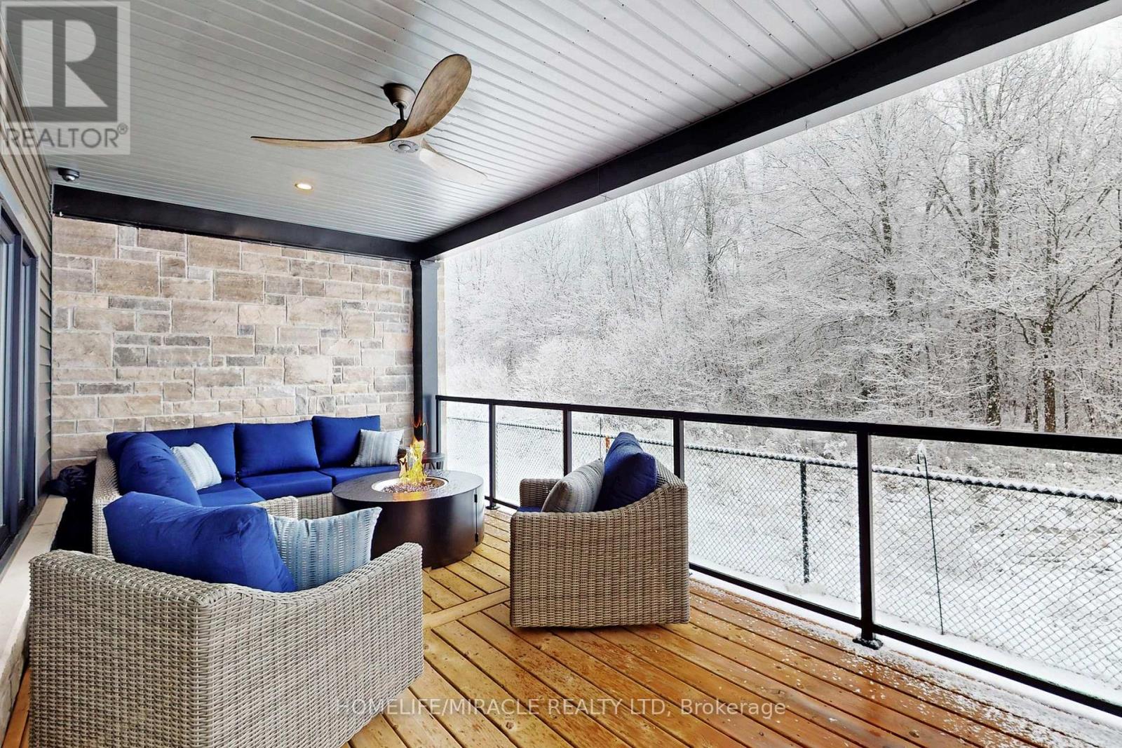 Enjoy luxury living and architectural elegance in this extensively upgraded double car garage bungalow townhome which backs on to the wooded area and located steps from world class 'Legends on the Niagara' golf course in Niagara's premier contemporary community. Luxury finishes throughout the house including $125K (as per seller) spent in quality upgrades and enjoy carefree living in this rare enclave of upscale homes. Features include 9' ceilings on main level, 8' tall interior doors, gorgeous gourmet kitchen with stainless steel appliances, extended center island with Quartz countertops and waterfall edge, laundry room with custom built-ins located conveniently off of the kitchen. Modern open concept great room with electric fireplace and floating wood mantle, large windows, sliding glass door leading to private, covered 20' x 10' deck finished with glass railing and gorgeous views of wooded area. Backyard also features a concrete patio and natural gas hookup for BBQ. Serene primary bedroom with large walk-in closet and spa-inspired 5PC ensuite, complete with glass and tile shower, soaker tub, double vanity and Quartz counters. West facing 2nd bedroom with large windows, 4PC guest bath and interior door to double car garage with rough-in for future electric vehicle completes the main level. Finished basement with upgraded carpet and under pad provides additional 660 Sq Ft of luxurious living space including a bedroom, 3PC ensuite bathroom with heated floors & custom wood shelves, a huge rec room with large window and exercise area. Unfinished mechanical room is 307 Sq Ft in size. Home is wired with audio system in all the rooms, outside video cameras installed and comes with Sony surround sound system, Sonos Amps, HIKVISION for video surveillance along with the 90" TV in the basement rec room. Hunter Douglas blinds throughout with remotes. Upgraded lighting throughout. 200 AMP Electrical Panel. Energy Star certified and located close to golf, watersports and more (id:64974)