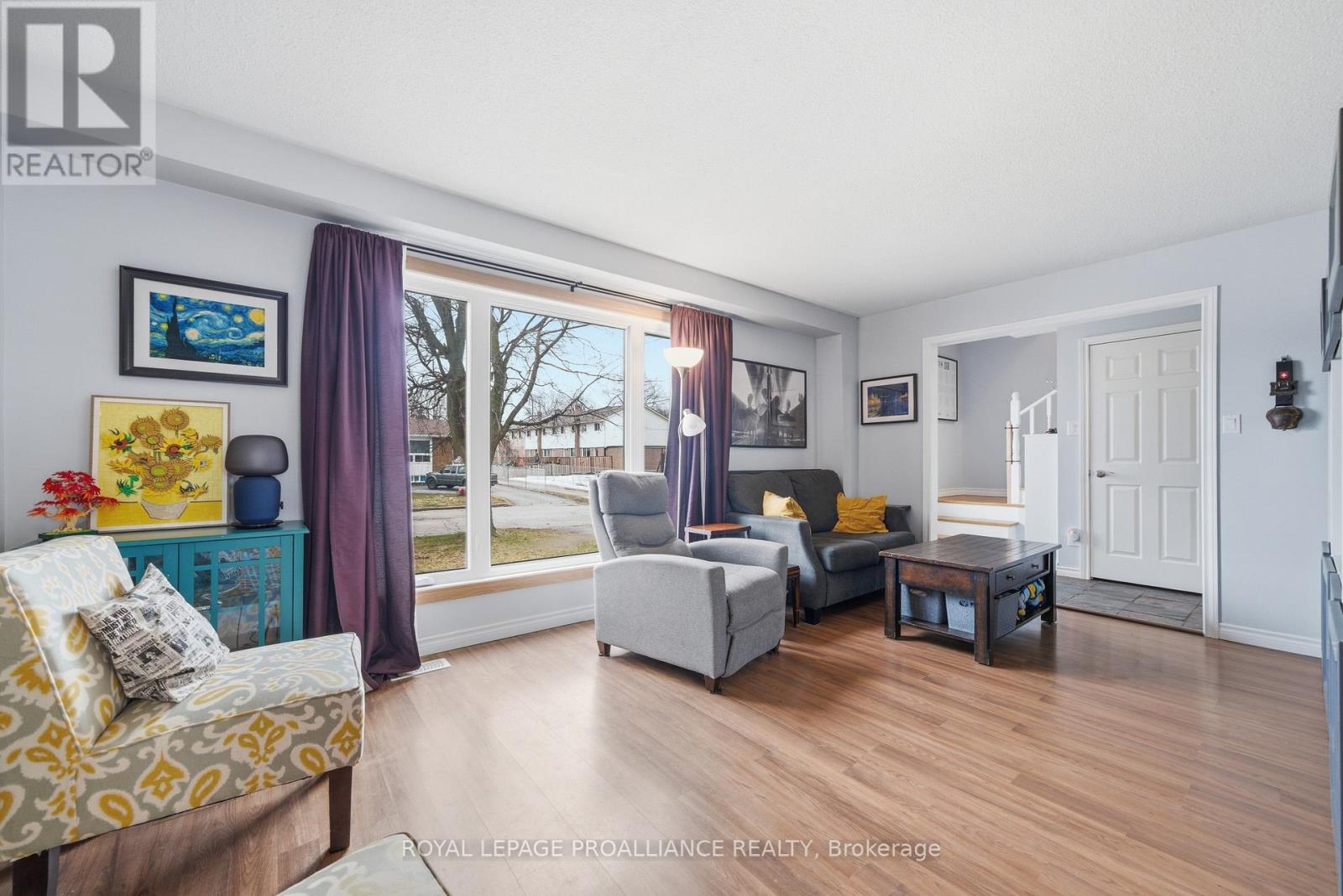Welcome to 24 Austin Street, a well maintained, move-in-ready 2-storey home designed for those who value both comfort and connection. The main floor welcomes you with a sun-drenched living room that flows effortlessly into the dining area. Whether you're hosting a dinner party or a quiet family meal, the direct access to the private deck makes indoor-outdoor entertaining a breeze. A functional kitchen and a convenient powder room round out the main floor, ensuring every inch of space is utilized. The upper floor you'll find all four bedrooms conveniently located on the second level alongside a full family bathroom. The lower level, spacious rec room is flooded with natural light, making it the perfect spot for a home gym, media room, or play area. Plus, the oversized laundry room offers enough storage to satisfy even the most dedicated organizer.Directly behind your fully fenced yard, is a park with lots of green space, and walking path that goes directly to the elementary school. Nestled in a quiet, friendly neighborhood, you're just minutes away from local amenities and enjoy lightning-fast access to the 401 for an easy commute. Updates include, roof 2022, C/Air 2021, New motor in Furnace 2021 , L/R Window 2019, Hot Water Heater 2017 (owned), Backyard fence 2017, Eavestrough 2025, new bathroom vanities, garage vinyl siding, driveway sealed, freshly painted between 2023-now (id:64974)
