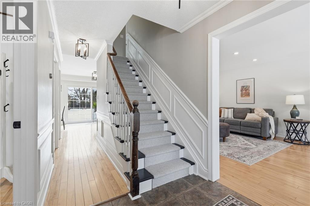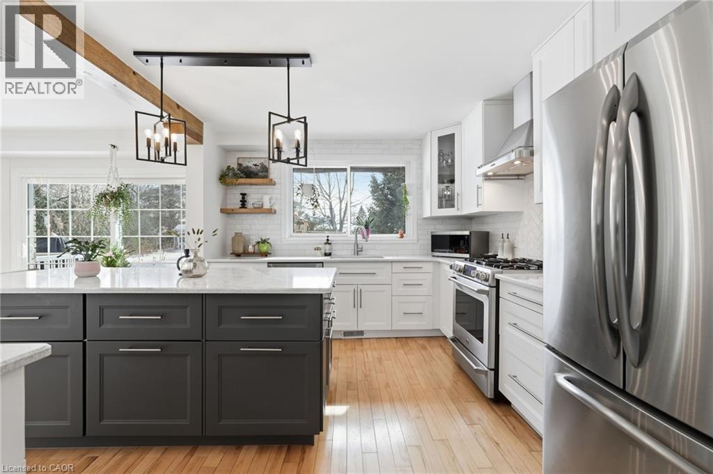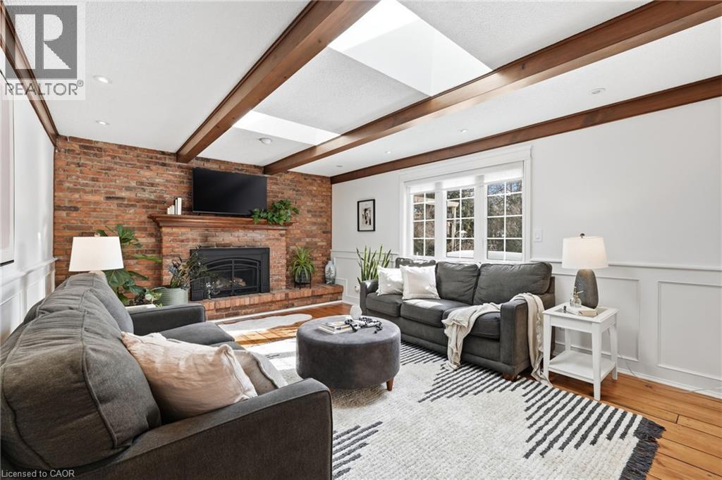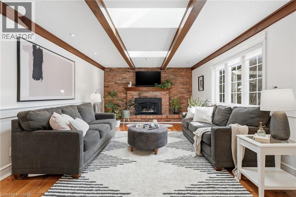 This is the one families wait for. Set on a private 1/2 acre estate lot in one of Carlisle's most established neighbourhoods, 24 Bannisdale Way offers the kind of homey warmth and substance that simply can't be replicated in newer builds.Thoughtfully renovated - yet never stripped of its soul - this two-storey home blends beautiful country charm with meaningful modern updates. Antique wide-board pine floors, exposed wood beams, and striking brickwork create character and comfort in equal measure. Every room feels intentional - spaces designed with purpose, allowing for quiet privacy when needed and natural gathering when it matters.The fully renovated 2025 kitchen is the heart of the home, finished with quartz countertops and a generous island that opens seamlessly to the dining area - inviting conversation & connection. Two separate main-floor family rooms offer flexibility for growing families, including one anchored by a full brick fireplace with brand new instert. A dedicated home office and powder room complete the main level. Upstairs, four spacious bedrooms provide room to grow, including a primary suite with a private 3-piece ensuite and a well-appointed 5-piece family bath.The finished lower level offers a large recreation room, 3-piece bathroom, and laundry - space for movie nights, hobbies, and everything in between. Big-ticket updates have already been taken care of, including all windows and doors, garage doors, furnace (approx. 4 years old), and a Generac generator. Outdoors, the backyard feels like a private retreat - mature trees towering overhead, established garden beds, and a beautiful pond creating a peaceful, storybook setting. The septic system has been ideally positioned to the side and rear of the property, leaving the centre of the yard perfectly suited for a future in-ground pool - a blank canvas for your own backyard paradise. A home with character. A home with room to grow. A home where memories are waiting to be made. (id:64974)