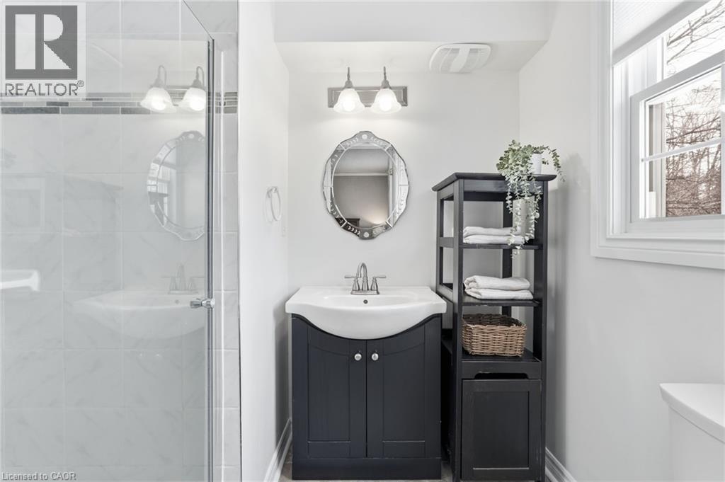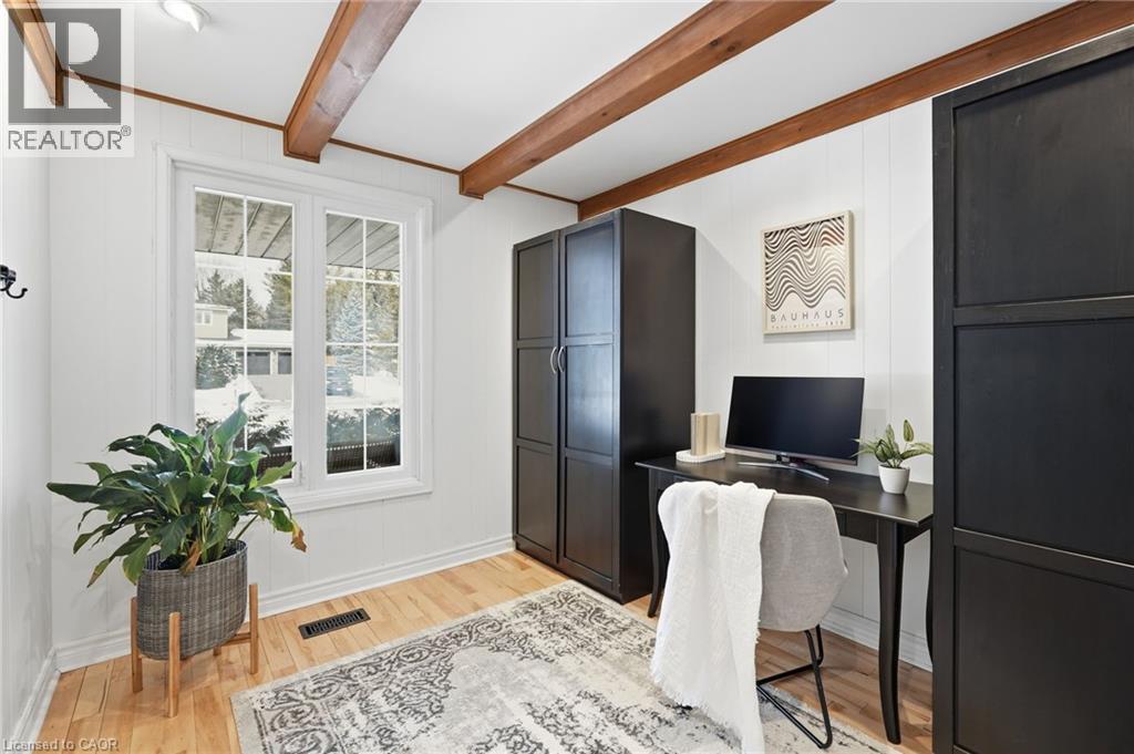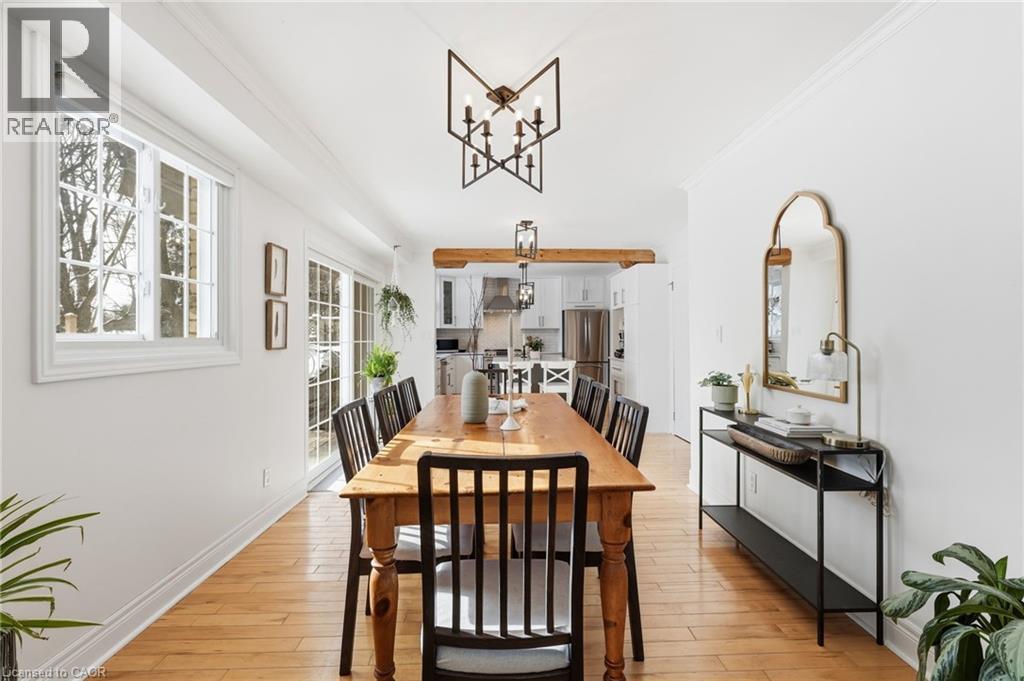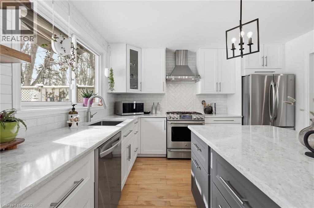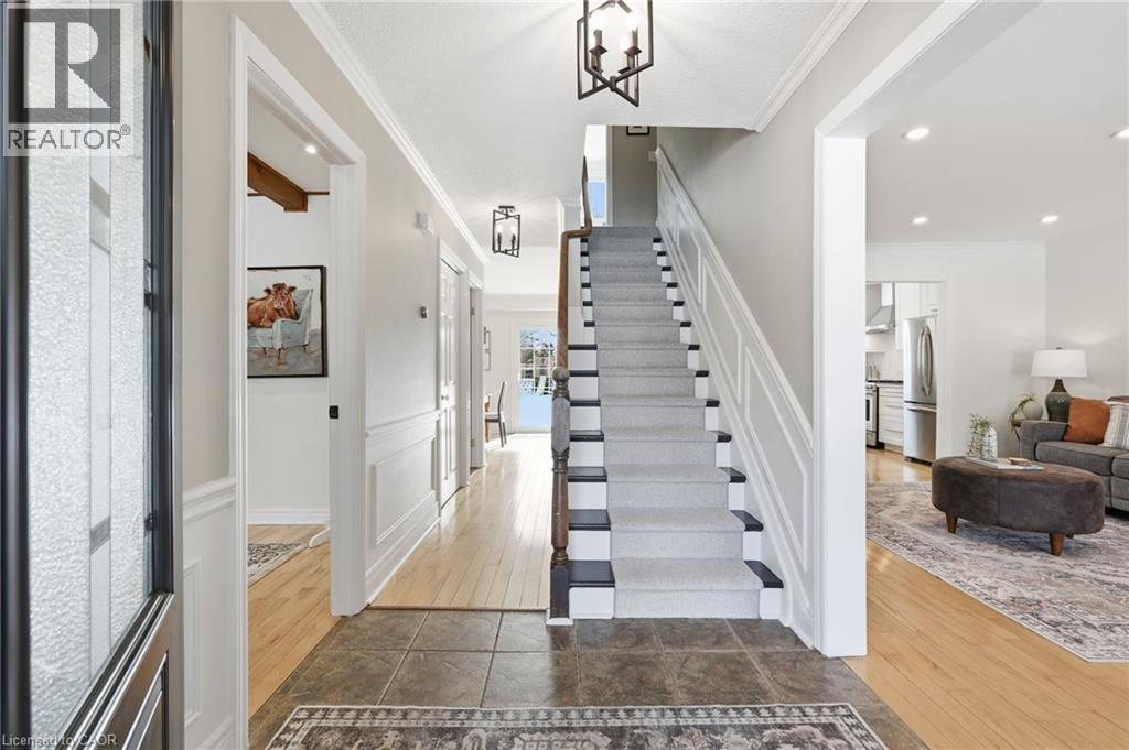 This is the one families wait for. Set on a private 1/2 acre estate lot in one of Carlisle's most established neighbourhoods, 24 Bannisdale Way offers the kind of homey warmth and substance that simply can't be replicated in newer builds.Thoughtfully renovated - yet never stripped of its soul - this two-storey home blends beautiful country charm with meaningful modern updates. Antique wide-board pine floors, exposed wood beams, and striking brickwork create character and comfort in equal measure. Every room feels intentional - spaces designed with purpose, allowing for quiet privacy when needed and natural gathering when it matters.The fully renovated 2025 kitchen is the heart of the home, finished with quartz countertops and a generous island that opens seamlessly to the dining area - inviting conversation & connection. Two separate main-floor family rooms offer flexibility for growing families, including one anchored by a full brick fireplace with brand new instert. A dedicated home office and powder room complete the main level. Upstairs, four spacious bedrooms provide room to grow, including a primary suite with a private 3-piece ensuite and a well-appointed 5-piece family bath.The finished lower level offers a large recreation room, 3-piece bathroom, and laundry - space for movie nights, hobbies, and everything in between. Big-ticket updates have already been taken care of, including all windows and doors, garage doors, furnace (approx. 4 years old), and a Generac generator. Outdoors, the backyard feels like a private retreat - mature trees towering overhead, established garden beds, and a beautiful pond creating a peaceful, storybook setting. The septic system has been ideally positioned to the side and rear of the property, leaving the centre of the yard perfectly suited for a future in-ground pool - a blank canvas for your own backyard paradise. A home with character. A home with room to grow. A home where memories are waiting to be made. (id:64974)