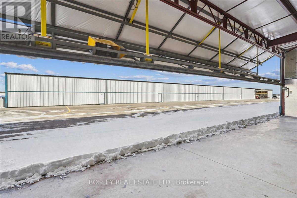 Rare Ownership Opportunity: The Premier "Hangarminium" at Oshawa Executive Airport. A truly rare offering for the discerning aviator. This is not your standard municipal land lease; this is a Hangarminium, where you own the land beneath the structure-a significant and uncommon advantage at Oshawa Executive Airport. Spanning approximately 1,200 square feet, this meticulously maintained end-unit is the largest opening T-hangar on the field. With a 48-foot-wide opening, the space is designed to comfortably accommodate larger twin-engine aircraft and turboprop aircraft. Key Features: Optimal Exposure: Ideally situated as an East-facing end unit, the hangar is naturally protected from snow drifts and icing issues that often plague other areas of the field. Turn-Key Condition: The interior is exceptionally clean, having been used exclusively for high-end storage over the last five years. It features a brand-new heating unit and upgraded, high-efficiency LED lighting. Flexible Financing: To facilitate a seamless transition, the seller is offering a unique private financing option: 20% down with a one-year first mortgage at 0% interest, allowing you to bypass traditional bank delays. This is a quiet, professional space for an owner who values permanence and ease of access. A unique asset for your aviation portfolio. (id:64974)