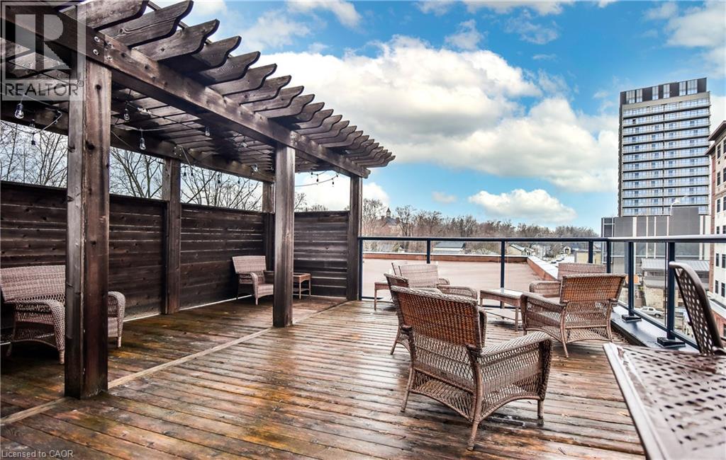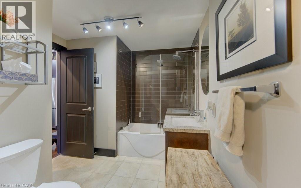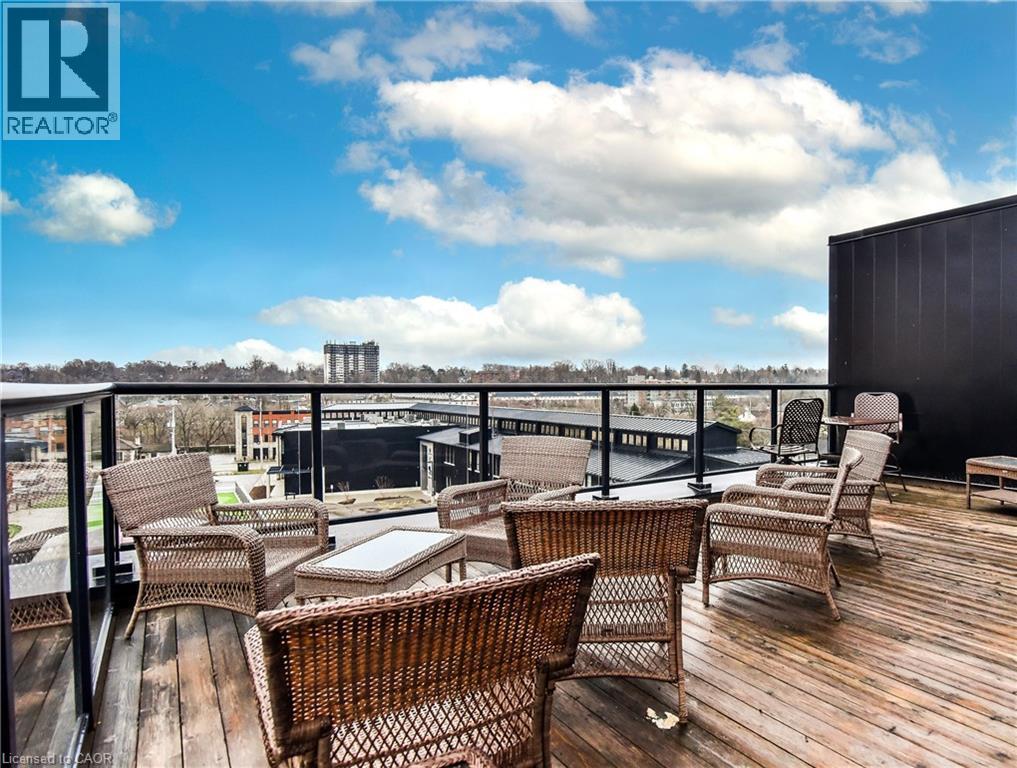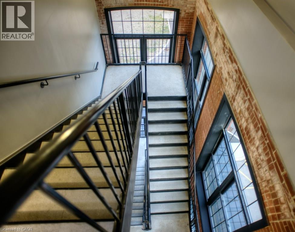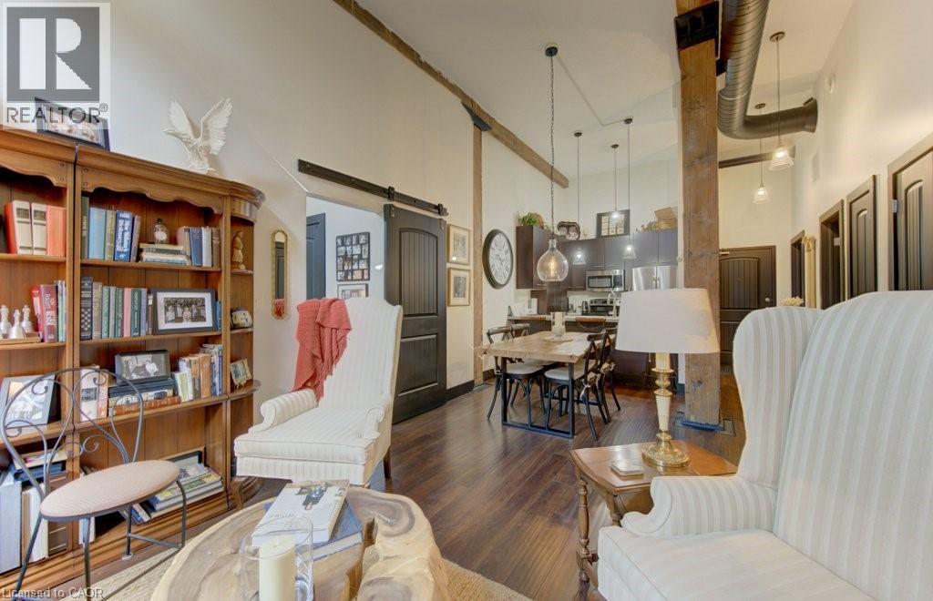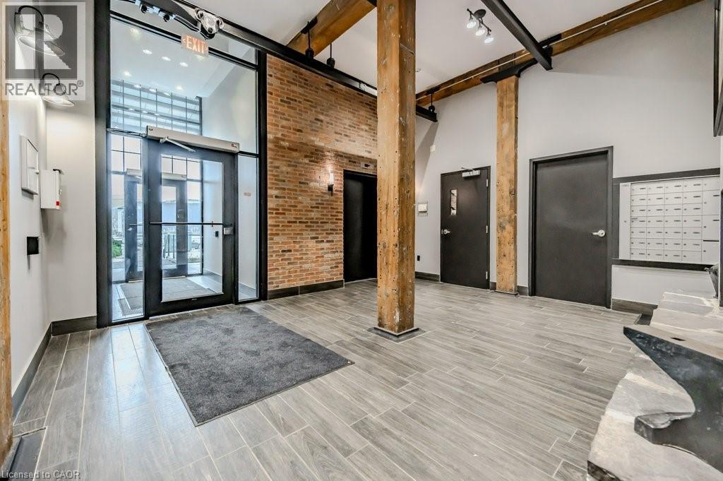 The historic Blacksmith Lofts welcome you to explore urban style with everyday functionality in this rare 2-bedroom loft. Offering a highly sought-after split-bedroom layout, this unit is ideal for professionals, downsizers or anyone looking for flexible living space with added privacy. Step inside to soaring ceilings and an open-concept design that creates an airy, elegant feel throughout. The spacious living and dining area sits between the two bedrooms, making it perfect for entertaining or quiet evenings at home. Large windows invite natural light to pour in, enhancing the loft’s warm, refined character. Both bedrooms are generously sized and feature walk-in closets—an uncommon find in condo living. One bedroom offers semi-ensuite access to the 4-piece bathroom, adding convenience and a touch of separation for guests or shared living arrangements. The kitchen is designed for both style and practicality, with modern finishes and ample workspace to make daily living easy. Carpet-free flooring runs throughout, and in-suite laundry adds to the overall convenience. Located in the heart of downtown Galt, you’re just steps from the Gaslight District, Grand River trails, cafés, restaurants, boutique shops and the University of Waterloo School of Architecture. Residents also enjoy access to a shared rooftop terrace with sweeping city views. If you’ve been waiting for a unique loft with character, space, and a truly functional layout, this one is not to be missed. Book your showing today! (id:64974)