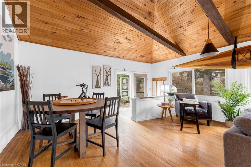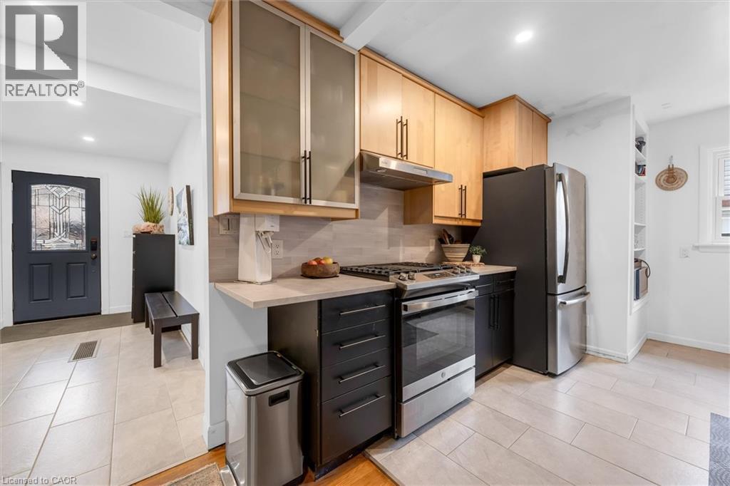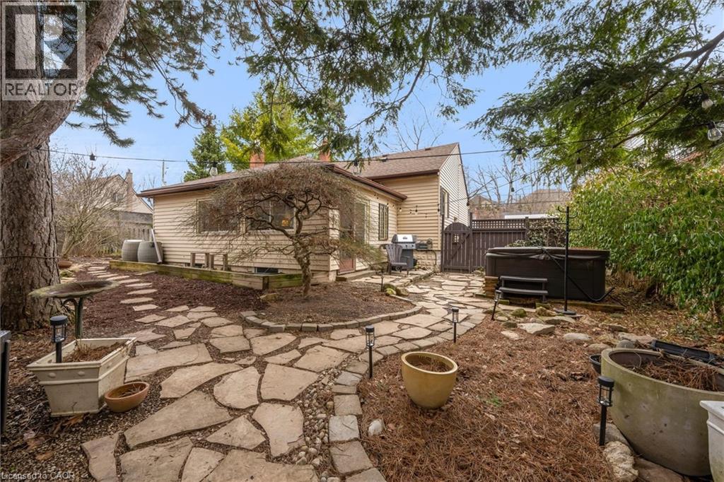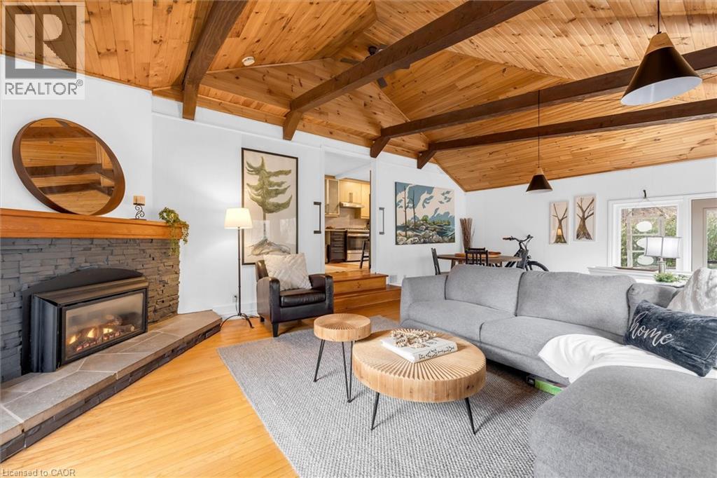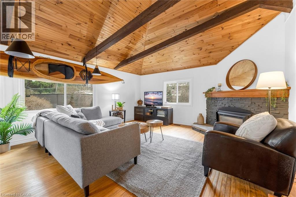 UNIQUE ONE-OF-A-KIND HOME! Prime Central Park location within easy walking distance to downtown Dundas, local schools, and a nearby Montessori school, and backing onto a tributary of Spencer Creek, for added privacy and natural views. This beautifully maintained home offers excellent curb appeal with perennial gardens and sits on a mature 75' x 98' lot surrounded by specimen trees, creating a peaceful, Muskoka-like setting. With approximately 1,376 sqft above-grade, pride of ownership is evident throughout. The home features a bright Great Room with a soaring beamed wood ceiling, large windows overlooking the backyard, garden access, and a cozy gas fireplace—making it the perfect gathering space. The updated kitchen offers ample cabinetry and overlooks the Great Room, ideal for entertaining. On the main floor, there are 3 carpet-free bedrooms (hardwood and laminate flooring), including a spacious primary bedroom with a wall of closets (currently used as an art studio/office), large window, and cove ceiling, along with an updated 4-piece bath. The lower level includes an in-law suite with kitchenette, 3-piece bath, cold room, utility/workshop space, and extra large storage area. The fully fenced U-shaped backyard and side yard feature a flagstone patio, raised deck platform, and mature landscaping—your own private retreat. Updates include kitchen, windows and front door, roof (2015), A/C (2018), and crawl space waterproofing (2019). Note: Any updates prior to 2019 were completed by the previous owner. Don't miss the opportunity to own this special character home in an ideal location! Note: This property is in an area regulated by the Hamilton Conservation Authority. (id:64974)