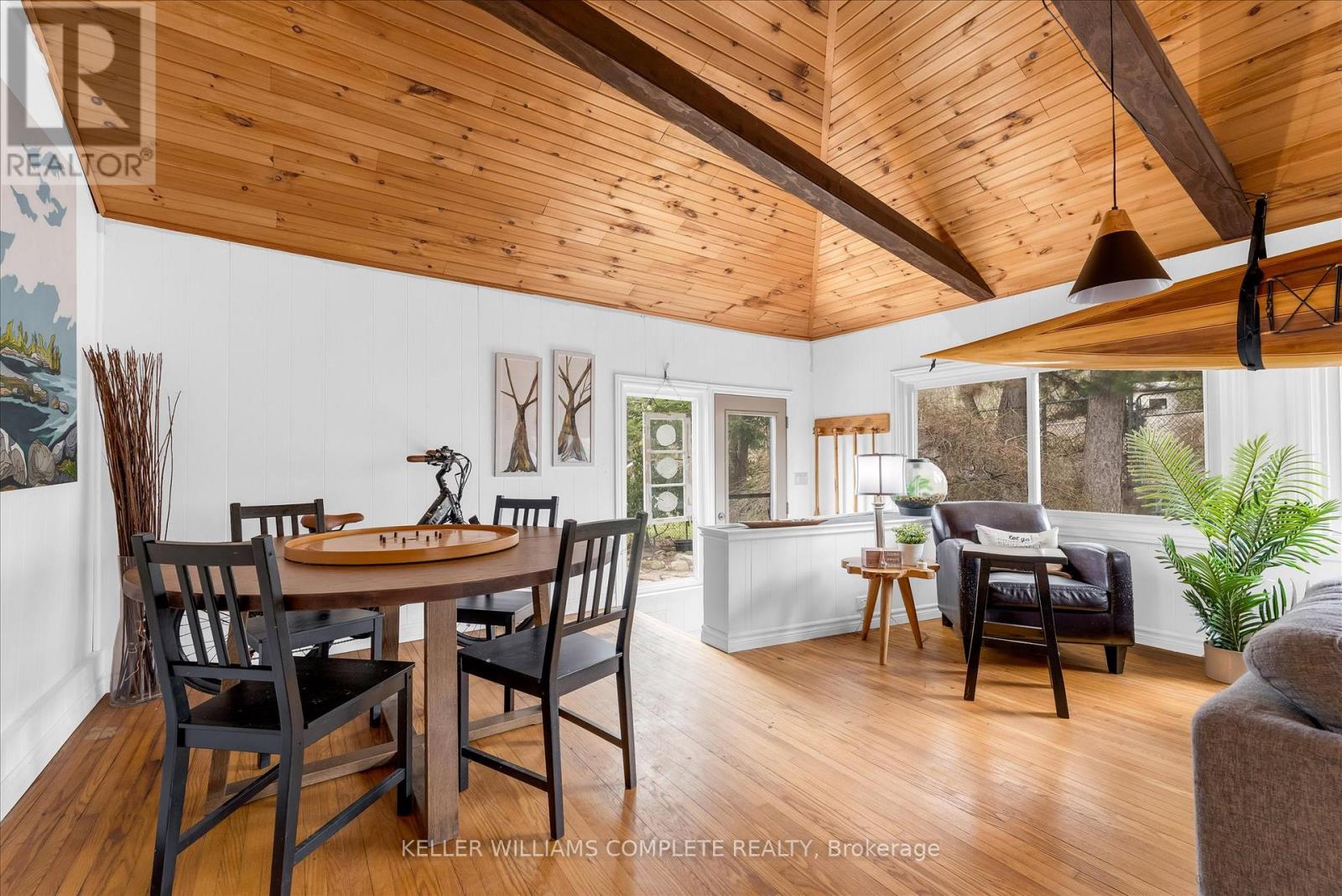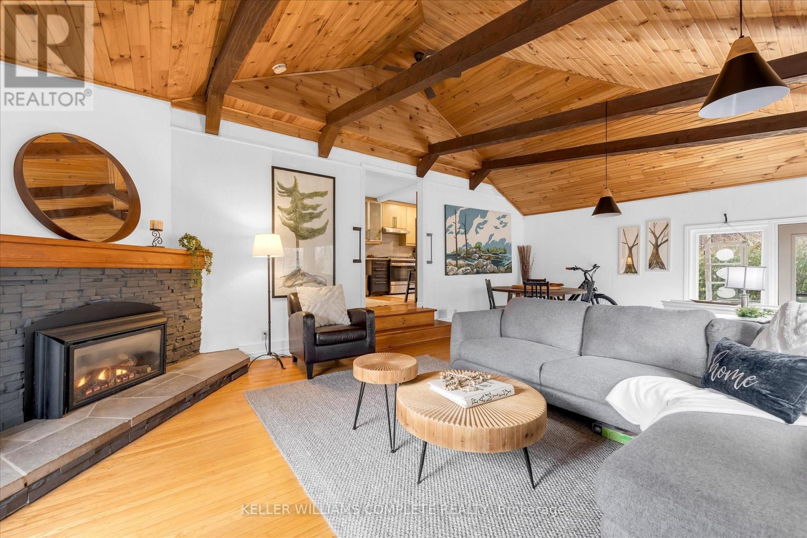 UNIQUE ONE-OF-A-KIND HOME! Prime Central Park location within easy walking distance to downtown Dundas, local schools, and a nearby Montessori school, and backing onto a tributary of Spencer Creek, for added privacy and natural views. This beautifully maintained home offers excellent curb appeal with perennial gardens and sits on a mature 75' x 98' lot surrounded by specimen trees, creating a peaceful, Muskoka-like setting. With approximately 1,376 sqft above-grade, pride of ownership is evident throughout. The home features a bright Great Room with a soaring beamed wood ceiling, large windows overlooking the backyard, garden access, and a cozy gas fireplace-making it the perfect gathering space. The updated kitchen offers ample cabinetry and overlooks the Great Room, ideal for entertaining. On the main floor, there are 3 carpet-free bedrooms (hardwood and laminate flooring), including a spacious primary bedroom with a wall of closets (currently used as an art studio/office), large window, and cove ceiling, along with an updated 4-piece bath. The lower level includes an in-law suite with kitchenette, 3-piece bath, cold room, utility/workshop space, and extra large storage area. The fully fenced U-shaped backyard and side yard feature a flagstone patio, raised deck platform, and mature landscaping-your own private retreat. Updates include kitchen, windows and front door, roof (2015), A/C (2018), and crawl space waterproofing (2019). Note: Any updates prior to 2019 were completed by the previous owner. Don't miss the opportunity to own this special character home in an ideal location! Note: This property is in an area regulated by the Hamilton Conservation Authority. (id:64974)