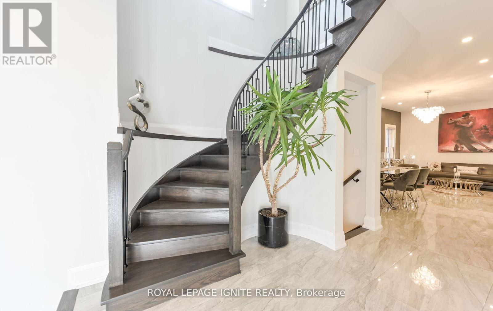 Welcome to 24 Christensen Ave, a beautifully upgraded and exceptionally spacious 4+1 bedroom detached home in highly sought-after Bolton North! With approximately $240,000 in recent upgrades, this property offers modern comfort, incredible natural light, and a layout perfect for growing families. Step through the elegant double-door entry into a large foyer featuring a striking circular staircase and an inviting, bright atmosphere that continues throughout the home. There's tons of potlights throughout the house with designer light fixtures! The main level offers 9 ft ceilings, porcelain floors, 8 ft frosted glass doors and a warm, functional layout designed for today's lifestyle. The gourmet kitchen features built-in stainless steel appliances, quartz flooring, a stylish quartz backsplash, and a beautiful skylight that fills the space with natural light. Enjoy meals in the spacious breakfast area with a walk-out to the backyard patio. The oversized dining room and cozy family room with an electric fireplace make entertaining effortless. Upstairs, you'll find two additional skylights on the second floor, bringing even more natural light into the hallway and upper level enhancing the bright, open feel of the home. The level includes four generously sized bedrooms, highlighted by a large primary suite with custom cabinetry, a 4-piece ensuite, separate shower, and walk-in closet. The separate entrance leads to a beautiful finished basement offering one extra bedroom, with potential to create a second bedroom. A massive theatre room, large windows, modern 3-piece bathroom excellent potential for in-law suites, extended family living, or future rental incomes. Outside, enjoy a deep, private backyard perfect for entertaining, gardening, and outdoor fun. The long double driveway with no sidewalk, paired with a built-in 2-car garage, allows parking for up to 6 vehicles a rare convenience. (id:64974)