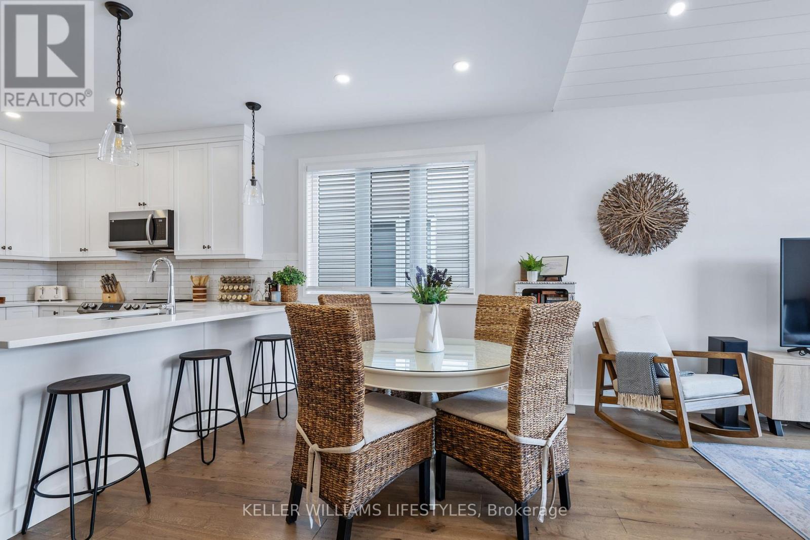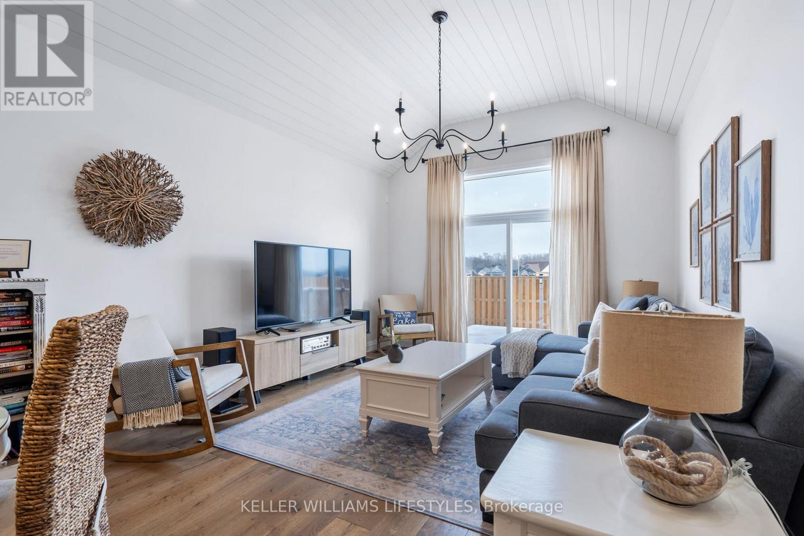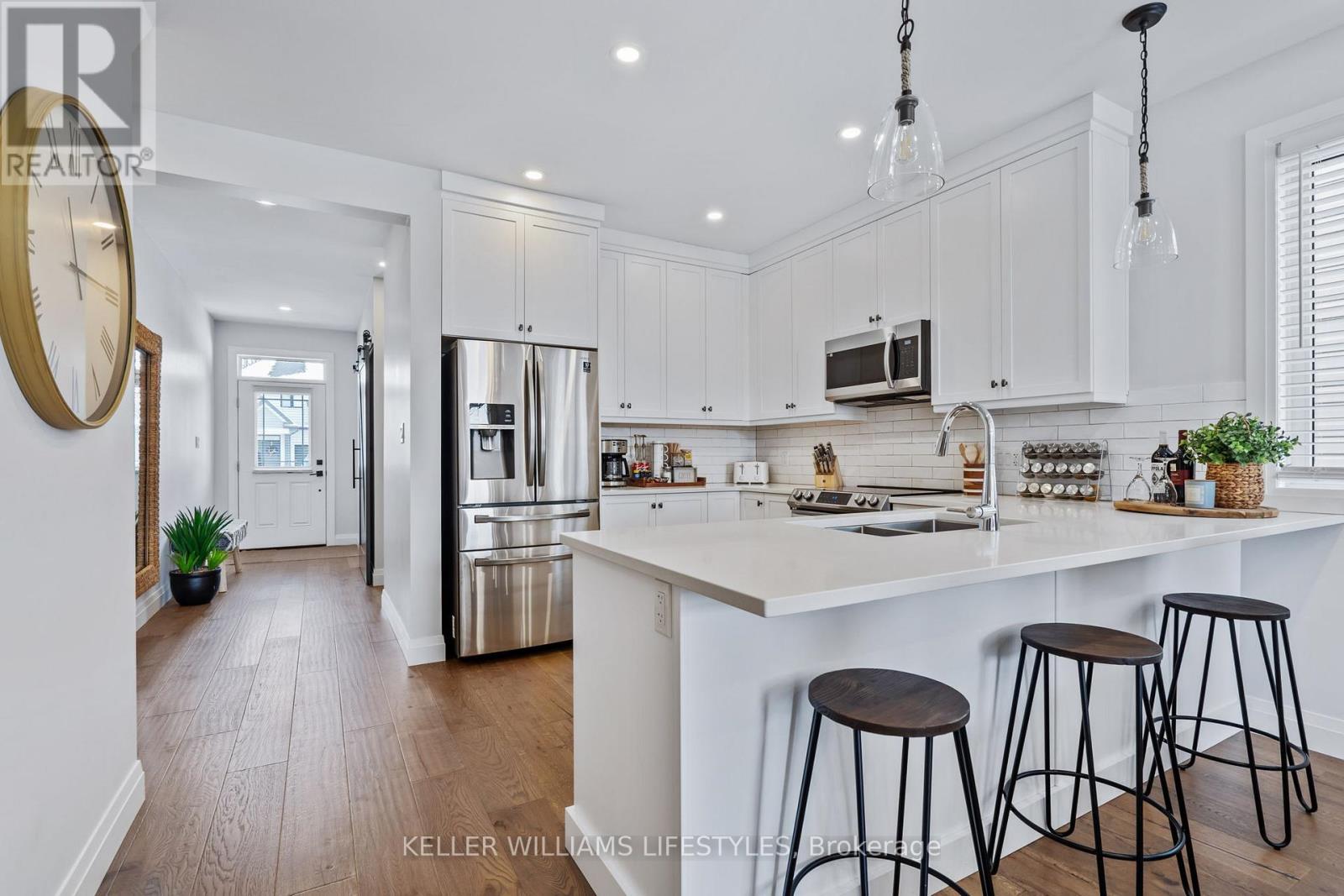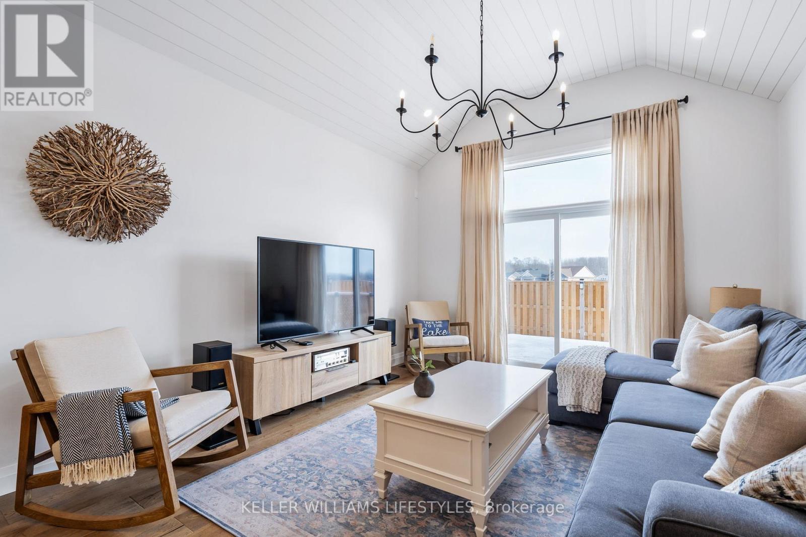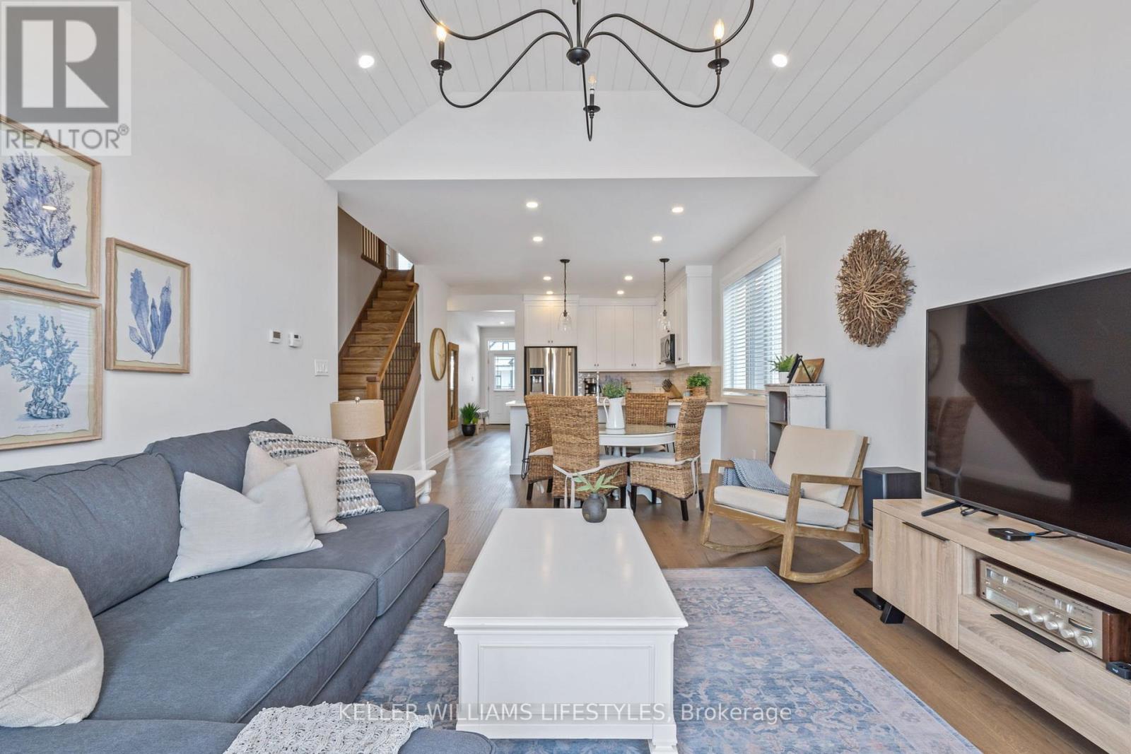 This move-in ready 2-storey semi-detached home offers an exceptional blend of modern elegance and practicality, perfect for those seeking both style and function. Located in the desirable beach town of Port Stanley, this home features stunning upgrades throughout. Upon entering, you'll be greeted by a spacious and bright open-concept layout. The heart of the home is the beautifully designed kitchen, complete with upgraded cabinetry extending to the ceiling, offering ample storage and a sleek, contemporary feel. The kitchen seamlessly flows into the dining and living areas, which showcase a striking vaulted ceiling with shiplap detailing, creating a welcoming atmosphere for family gatherings and entertaining. The main floor also features a versatile den, highlighted by a trendy feature wall and a barn door, ideal for an office, reading nook, or additional living space. The main floor primary bedroom is a true retreat, offering a peaceful sanctuary with a luxurious 4-piece ensuite. The home is carpet-free, boasting durable, easy-to-maintain flooring throughout including engineered hardwood on the main floor, ceramic tiles in most wet areas and LVP on the second level. As you head upstairs, note the poplar stairs, the bonus family room, 2 additional bedrooms and a 4 piece bath. Outside, the fully fenced yard is the perfect place to unwind or entertain, with a 12 x 12 pressure-treated deck ready for summer star gazing. With an attached single garage, this home offers additional storage space and convenient parking including a double, private drive. Honourable mentions: main floor laundry, landscaped front yard, inground sprinklers, outdoor gas BBQ hook-up, appliances included and magazine quality decor. Truly a must see! (id:64974)
