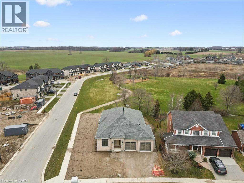 Welcome to this brand new beautifully appointed bungalow, where refined design meets effortless living. This exceptional home blends sophistication, comfort, and privacy in a truly desirable setting. Showcasing impressive 10-foot ceilings on the main floor, this home offers an airy, light-filled atmosphere complemented by premium finishes throughout. At the heart of the home is a custom-crafted kitchen featuring Chervin cabinetry, stainless steel appliances, and a thoughtfully designed coffee station—perfect for both everyday living and entertaining. The adjoining dinette, complete with a sliding door, provides seamless access to the backyard, creating an ideal indoor-outdoor flow. The main floor primary suite is a private retreat, highlighted by its own sliding door to the rear deck to enjoy a coffee and that morning sun and a luxurious 5-piece ensuite with a soaker tub and spacious walk-in closet. The mudroom and laundry area, as well as, the dedicated pantry off the kitchen add both function and convenience to the main level. The fully finished basement extends the living space with a generous recreation room with large windows, an additional bedroom ideal for guests or a home office, a 3-piece bathroom, and ample storage space. Outdoors, enjoy a rear vinyl deck overlooking the backyard and backing onto a park—providing serene views and the rare benefit of no rear neighbours. This home offers a great balance of comfort and community, and embodies the perfect blend of function and classic design. Enjoy Ingersoll’s local shops, dining, and small-town charm, with easy access to Highway 401 for quick commutes to Woodstock and London. This is a wonderful opportunity to own a brand new home in a family-friendly neighbourhood. (id:64974)