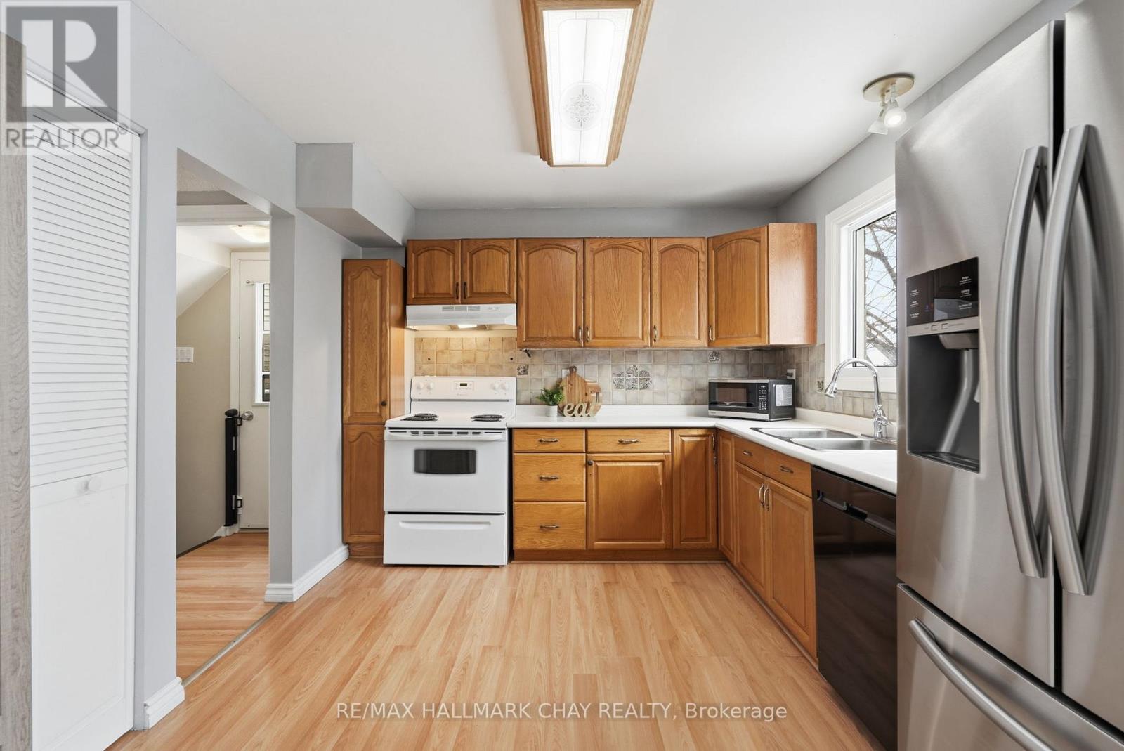 Welcome to 24 Fox Run - a well-loved family home offering space to grow, inside and out.Set on an almost 200-ft deep, fully fenced lot backing onto green space, this detached 2-storey home provides the kind of yard families truly appreciate. There's plenty of room for kids to play, space for gatherings, and even a nearby tobogganing hill to enjoy in the winter months.Step through the double-door entry into a bright foyer that flows into comfortable family and dining areas designed for everyday living. The eat-in kitchen features a pantry and walk-out to a deck with treed views and city sightlines - a great spot for morning coffee or summer BBQs.Upstairs, you'll find three generously sized bedrooms with laminate and hardwood flooring. The primary bedroom includes a walk-in closet. Bathroom flooring was updated this year, and low water-usage toilets add efficiency. A convenient 2-piece bathroom on the main floor keeps things practical for busy households.The separate side entrance offers flexibility for multi-generational living or future in-law potential. The fully finished walk-out basement includes a large rec room, 3-piece bathroom, laundry area, storage, and wet bar - ideal for movie nights, play space, or entertaining.Major updates include main floor and upper windows replaced in 2020, basement window and patio door replaced in 2019, roof replaced in 2020, and furnace and A/C updated in 2016.Located close to Highway 400, transit on the street, schools, parks, grocery stores, pharmacy, RVH, and just minutes from Kempenfelt Bay with waterfront trails and beaches.A comfortable, cared-for home ready for its next chapter. (id:64974)