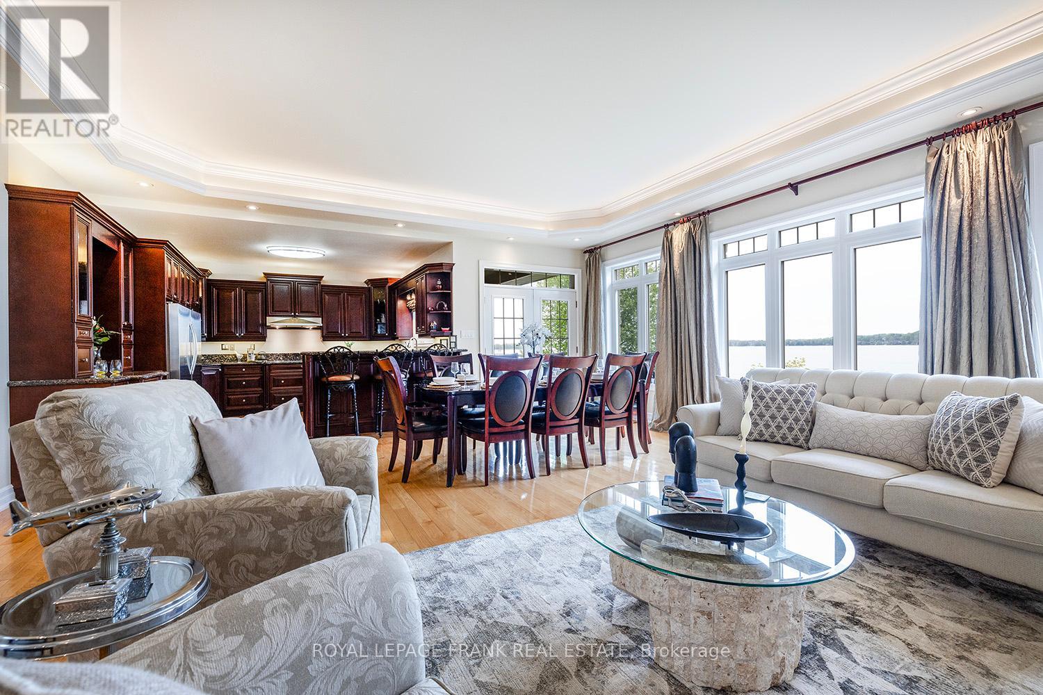 You CAN Have It All - Luxury Waterfront Living with Easy GTA Access! Opportunities like this on Lake Scugog are rare. This stunning custom-built waterfront home is ideally located just 15 minutes north of Port Perry & approx 50 minutes to the GTA, offering the perfect balance of luxury, privacy & convenience. From the moment you arrive, the impressive interlock driveway, wrought iron fencing, & armourstone landscaping create a striking first impression while drawing your eye to the spectacular panoramic lake views. Inside, sophisticated architectural details elevate the home, including coffered ceilings, hardwood floors, travertine stone fireplace & beautifully designed principal rooms that capture breathtaking water views. The chef-inspired kitchen is the heart of the home with custom wood cabinetry, granite countertops, stainless steel appliances & a breakfast bar ideal for everyday living & effortless entertaining. Bright open-concept living & dining areas are filled with natural light through expansive windows & enhanced by extensive pot lighting. Step through the garden doors to a lakeside deck-perfect for entertaining or enjoying peaceful mornings overlooking the water. This is the lifestyle buyers wait for. The primary suite offers a private retreat with his-and-her walk-in closets & a spa-inspired ensuite featuring a Jacuzzi tub & custom roll-in stone shower. The fully finished lower level adds exceptional versatility with a walkout to the lake, separate entrances, recreation room, second kitchen, two additional bedrooms & flexible space ideal for guests or multi-generational living. Car enthusiasts & hobbyists will appreciate the oversized upper & lower double garages with interior accesses & a large loft for additional storage. Rarely does a property offering this level of luxury, space & waterfront lifestyle become available so close to the GTA. Move quickly to secure your private lakefront retreat & be ready to enjoy the upcoming waterfront season! (id:64974)