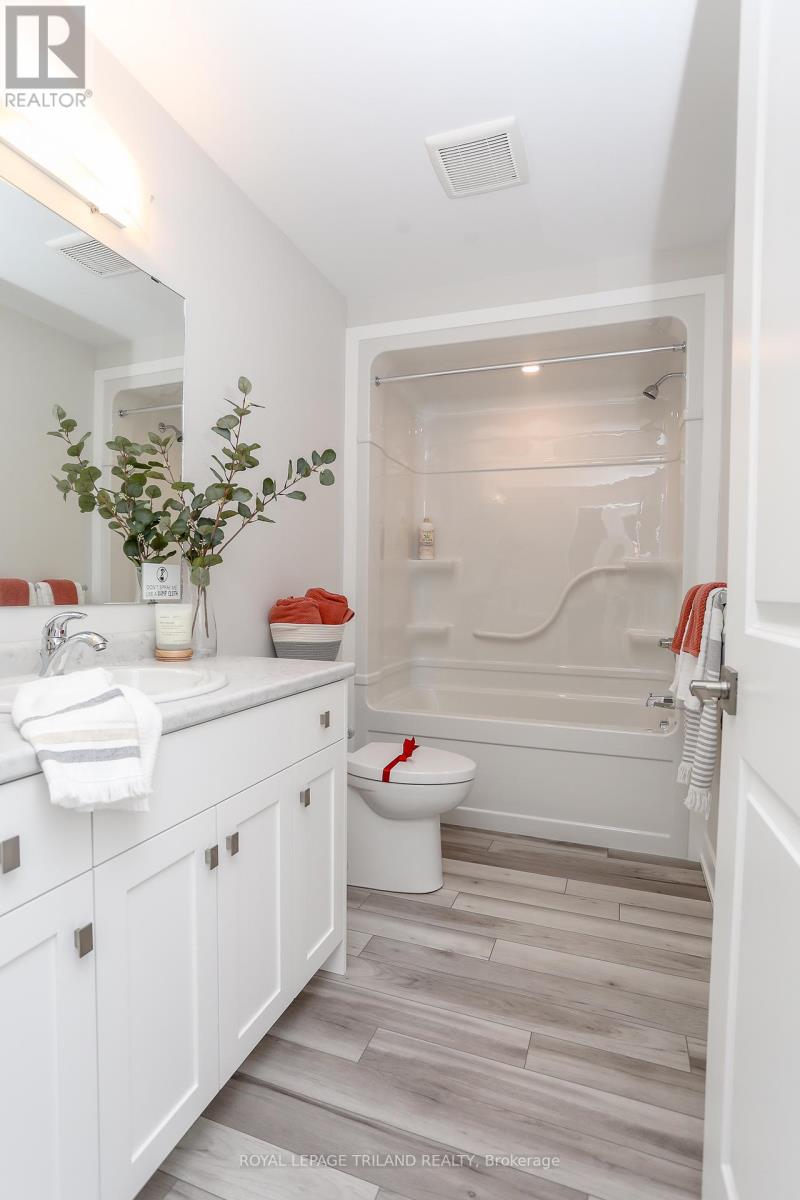 Welcome to 24 Harrow Lane! The Elmwood model is a 1,520 sq. ft. semi-detached two-storey with a 1.5-car garage, designed for comfortable family living. A spacious foyer, main-floor powder room, and open-concept kitchen, dining, and great room create an inviting, functional layout, finished with luxury vinyl plank flooring, granite countertops, and a tiled backsplash. Upstairs offers three generous bedrooms, a 4-piece bath, and a primary suite with a walk-in closet and private 3-piece ensuite. The unfinished basement includes a laundry area, rough-in for a 4-piece bath, and space for a rec room or fourth bedroom. Located in southeast St. Thomas near parks, trails, schools, and within the Mitchell Hepburn School District, this Energy Star Certified, Net Zero Ready home is move-in ready. Don't hesitate - Make 24 Harrow Lane your new home today! (id:64974)