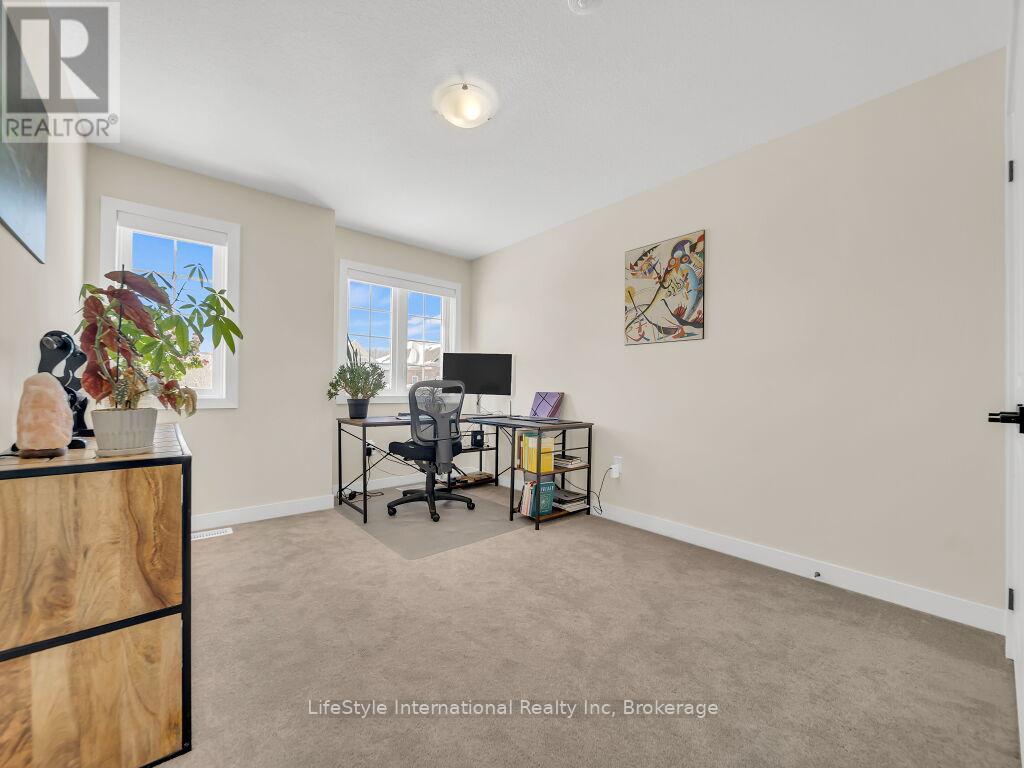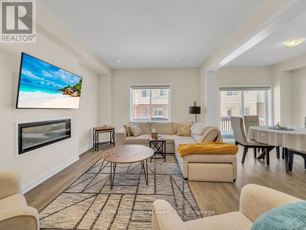 Welcome to this exceptional one-year-old luxury residence offering 4 bedrooms, 4 bathrooms, and a double car garage, perfectly situated in Guelph's prestigious south end. Thoughtfully designed with premium upgrades throughout, the main level showcases elegant hardwood flooring, soaring 9-foot ceilings, and expansive windows that flood the space with natural light.The chef-inspired kitchen is a true centrepiece, featuring a striking waterfall quartz island, upgraded cabinetry, and stainless steel appliances-ideal for both everyday living and entertaining.The upper level is highlighted by a grand primary retreat with a spa-like 5-piece ensuite, complete with a soaker tub, double vanity, and a separate glass-enclosed shower. Three additional generously sized bedrooms, an upgraded 4-piece bathroom, and convenient second-floor laundry complete this level.The fully finished basement with a separate entrance adds exceptional versatility and future potential. This impeccably maintained, move-in-ready home offers refined finishes, modern comfort, and outstanding value in a highly sought-after location. (id:64974)