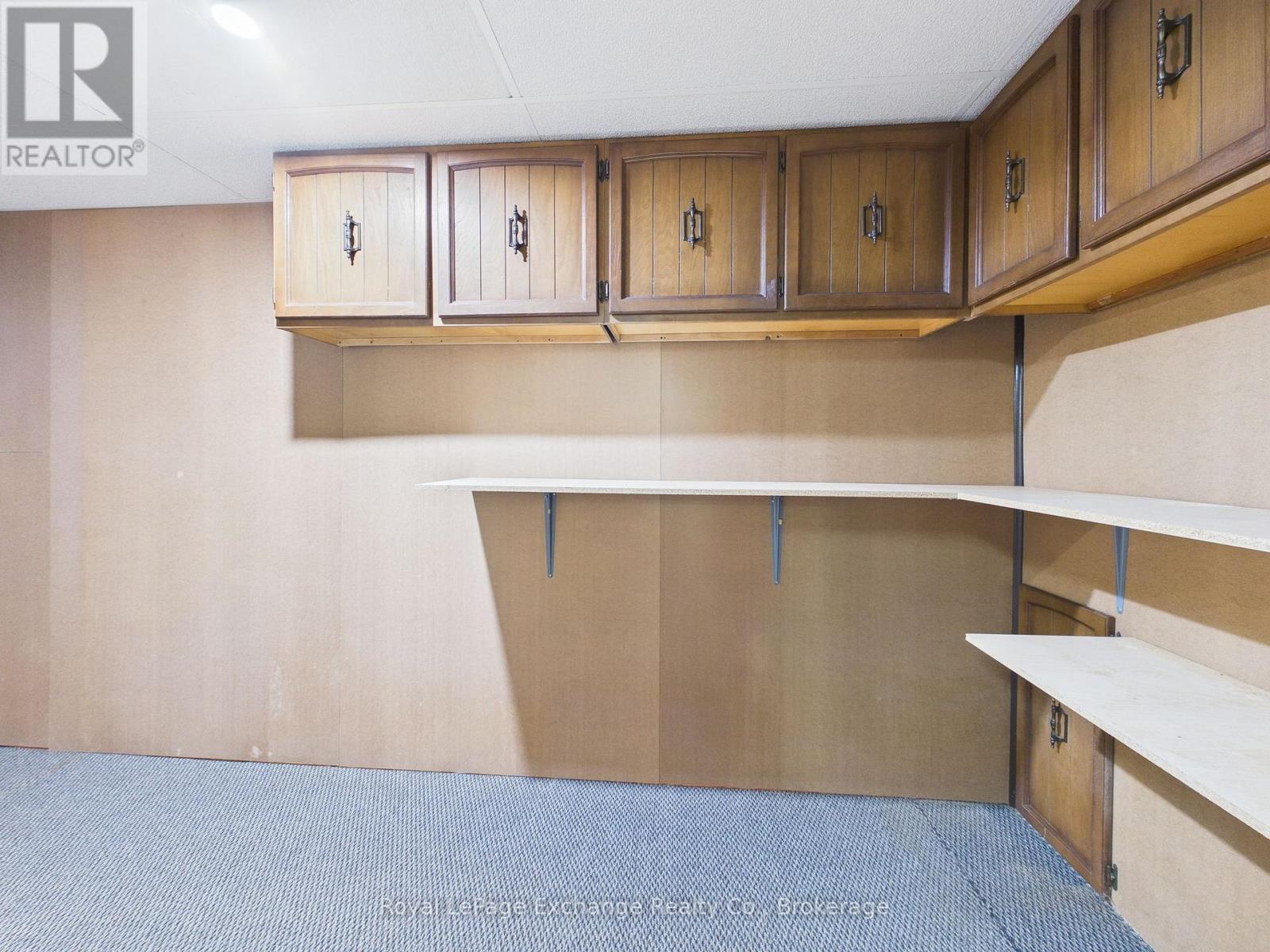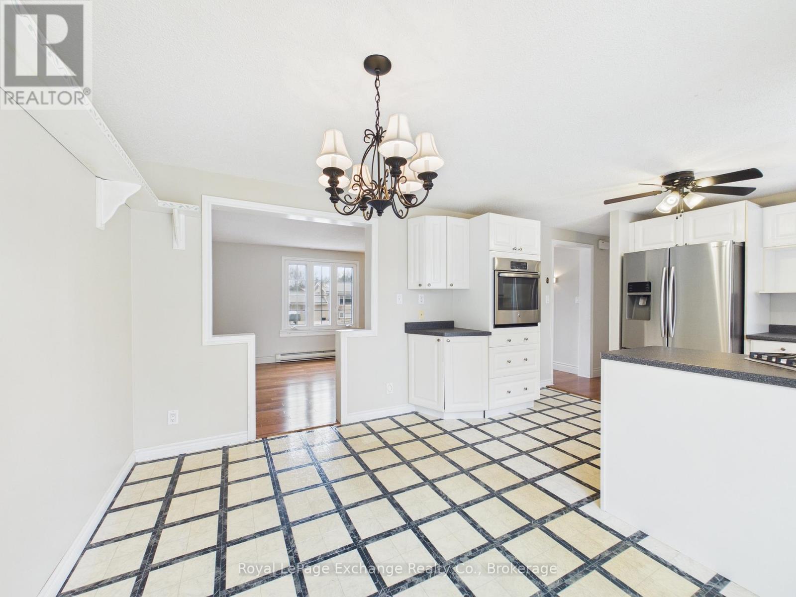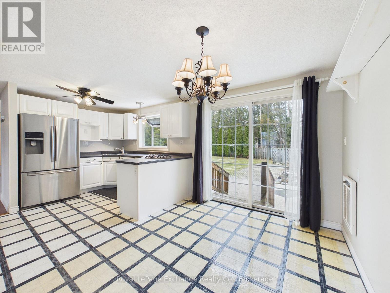 Welcome to 24 Inverness St N, perfectly situated in the highly sought-after Huron Ridge neighbourhood - just steps from the sandy beaches of Lake Huron and its breathtaking sunsets. This well-maintained home offers approximately 1,100 sq ft of comfortable main floor living. The functional layout features a spacious kitchen equipped with a built-in propane range and built-in oven, seamlessly flowing into the dining and living areas-ideal for everyday living. The main level also includes a generous primary bedroom, a second bedroom, and a 4-piece bathroom. The lower level adds excellent versatility with a cozy family room complete with a propane fireplace and wet bar, creating the perfect space to relax or entertain. You'll also find a 3-piece bathroom, along with additional space ideal for a home office, gym, or hobby area, plus a dedicated storage room. Step outside to enjoy the beautifully landscaped backyard, featuring a large patio area, tranquil pond, and two storage sheds-offering both charm and functionality. The extra-deep attached garage provides ample space for parking, storage, or a workshop setup. Located in a family-friendly neighbourhood close to trails, parks, and the shoreline, this property is a fantastic opportunity to enjoy the best of Kincardine living. (id:64974)