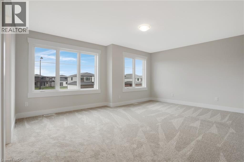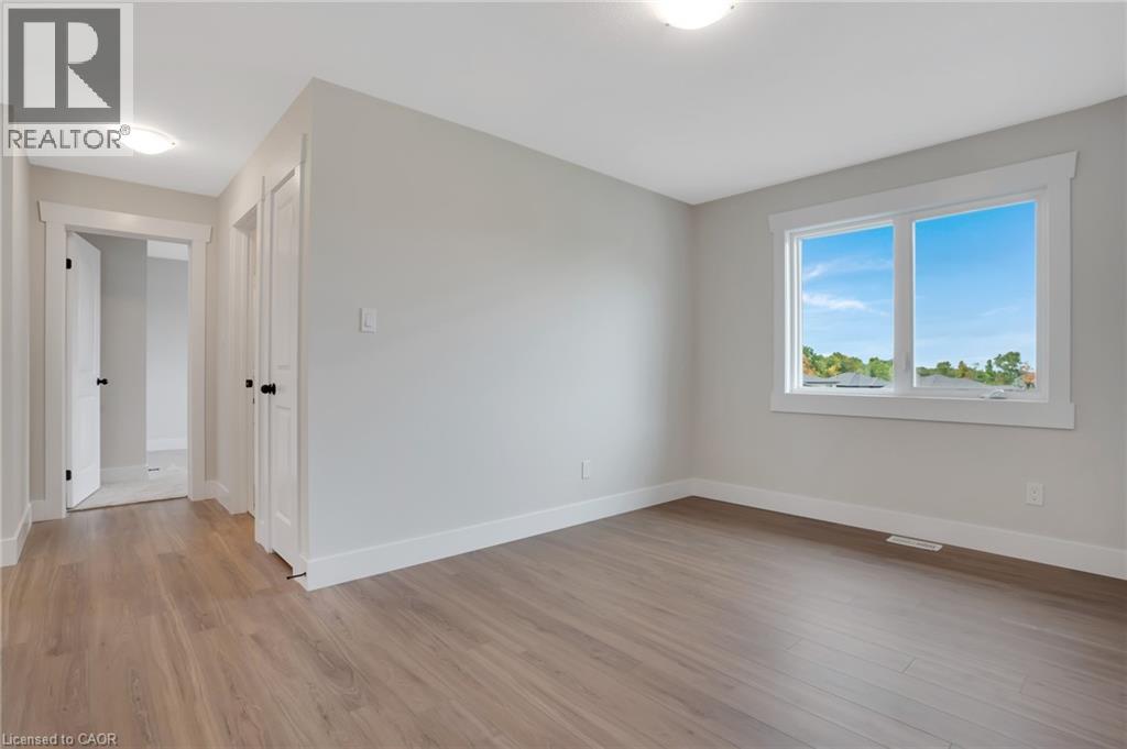 Welcome to 24 Moon Crescent, Cambridge – a beautifully designed home located in the desirable Westwood Village Preserve community. Set on a unique pie-shaped lot, this newly built property is move-in ready! Featuring 4 bedrooms, 3.5 bathrooms, and multiple upgrades throughout, this home blends modern comfort with thoughtful design. The bright and airy open-concept layout seamlessly connects the kitchen, living, and dining areas – perfect for both everyday living and entertaining. The upgraded contemporary kitchen will feature sleek finishes and generous counter space, truly becoming the heart of the home. A versatile main floor bedroom offers flexibility for guests, a home office, or multigenerational living. Upstairs, you’ll find three spacious bedrooms and a cozy family room. The primary suite includes a private ensuite and a walk-in closet, while each additional bedroom offers ample closet space. The unfinished basement provides a blank canvas for your future plans – whether you envision a home gym, media room, or extra living space, the possibilities are endless. Located in a vibrant and family-friendly neighbourhood close to schools, parks, and shopping, 24 Moon Crescent is ready to welcome you home. (id:64974)
