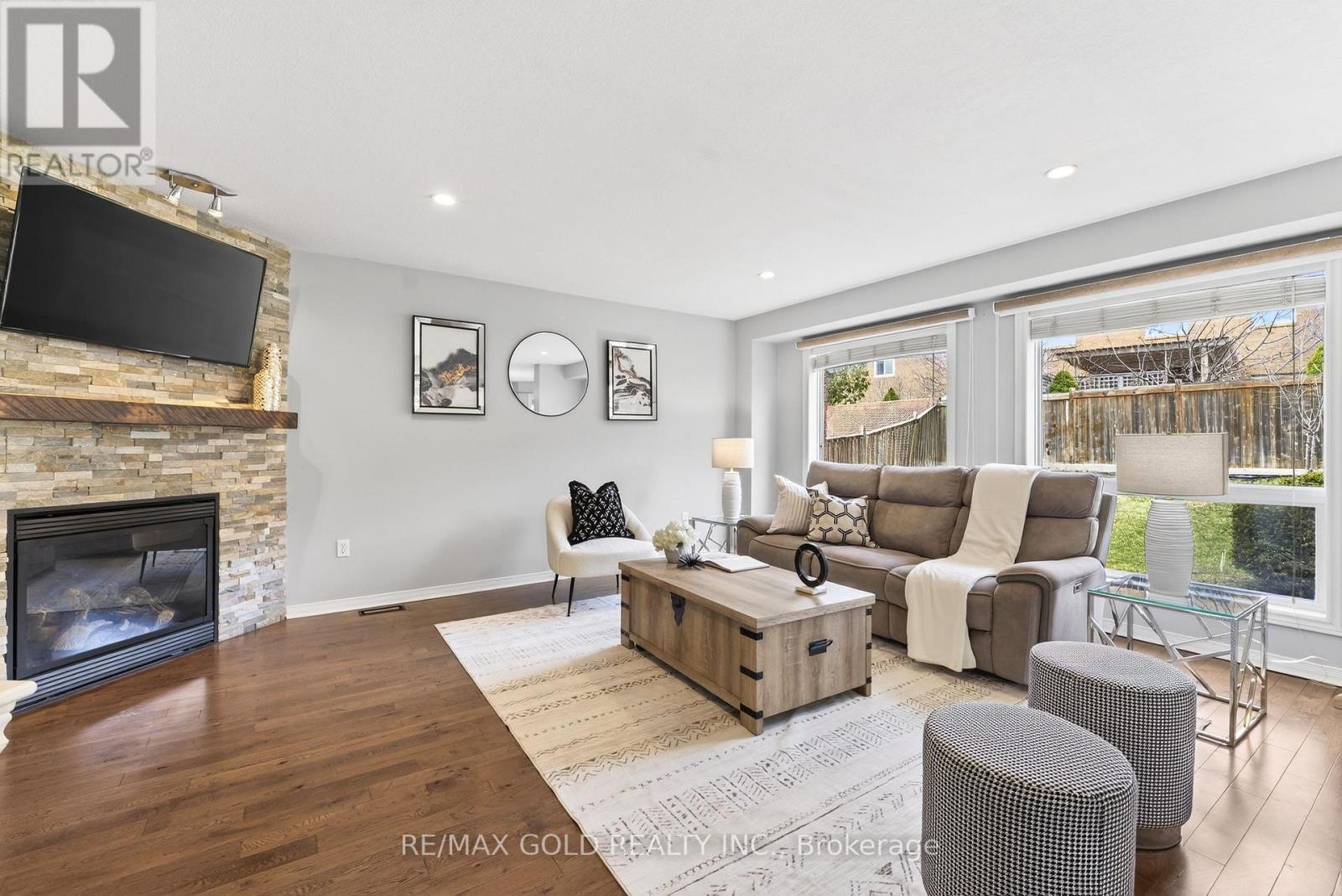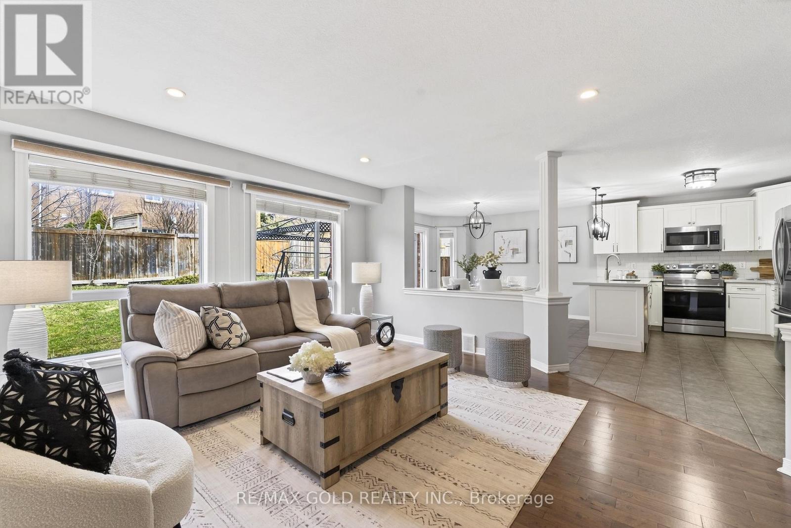 Welcome to this stunning Sunvale-built detached home offering approx. 3,191 sq. ft. of total living space on a rare pie-shaped lot, nestled in a quiet, family-friendly cul-de-sac in Orangeville. Just a short walk to Headwaters Hospital and minutes from Island Lake Conservation Area, this beautifully upgraded, carpet-free home offers modern comfort with excellent income potential. Step inside to a grand 17-ft foyer that opens into a bright, open-concept layout. The main floor features a versatile formal living room-ideal as a home office-along with a fully updated kitchen boasting stainless steel appliances and quartz countertops. The kitchen flows seamlessly into a spacious family room with a gas fireplace, perfect for everyday living and entertaining. Walk out from the dining area to a large deck with gazebo and a fully fenced, expansive backyard-ideal for hosting or relaxing in privacy. Upstairs, the primary suite offers vaulted ceilings, a Palladian window, walk-in closet, and spa-like ensuite. The second bedroom features a walk-in closet, while the third includes double closets. Convenient second-floor laundry adds practicality. The finished basement includes a large rec room, full bathroom, and two bedrooms. Permits are already secured to convert it into a legal 2-bedroom rental unit-ideal for added income. Recent upgrades: Stove (2025), stairs (2023), second-floor & basement flooring (2023), roof, furnace & A/C (2022).Includes 2-car garage and parking for up to 6 vehicles. Close to transit, shopping, Hwy 10, and under 25 minutes to Brampton. A rare turnkey opportunity-don't miss it! (id:64974)