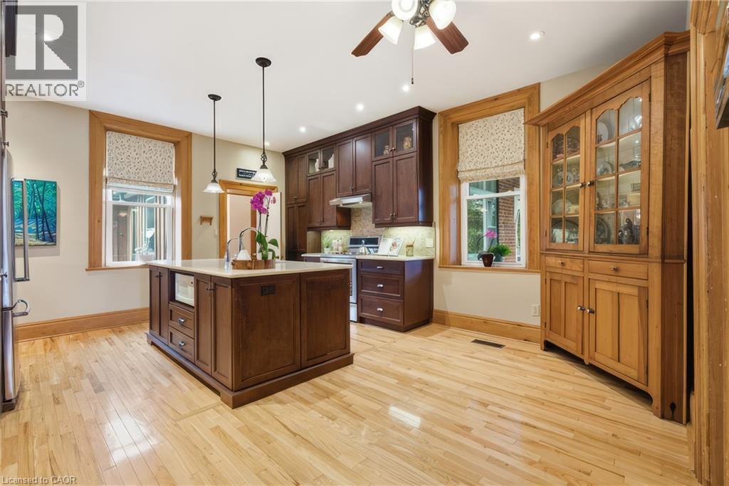Steeped in local history, this remarkable century home was built for one of the original Snider brothers, the first settlers of St. Jacobs. Set on an almost half-acre lot just one block from downtown, this rare offering blends heritage character with modern updates in one of the village’s most coveted locations steps to shops, cafés, and everyday amenities. Surrounded by towering mature trees, a beautiful vegetable garden, and a stunning wrap around porch overlooking the yard, this meticulously maintained home offers a serene, park-like setting seldom found so close to the village core. Designed as a side-by-side duplex, the homes provides the feeling of two distinct residences, with minimal adjoining walls and excellent privacy. Ideal for multigenerational living, investment, or owner-occupied flexibility. Built with double and triple brick construction, both homes have been fully renovated to the studs and thoughtfully upgraded with wiring, windows and added insulation in the walls and attic. Each home features three bedrooms and their own 4-piece bathroom, with updates over time that carefully preserve the warmth, charm, and character expected of a true century home. Shared amenities include a welcoming common entry with main-floor laundry and a 3-piece bath, a shared two-car garage with an impressive attached two-storey extension offering abundant storage or workshop potential. With parking for 10+ vehicles, the property easily accommodates large gatherings of friends and family. A truly special opportunity to own a piece of St. Jacobs history where timeless architecture, thoughtful updates, and an unbeatable location come together. (id:64974)