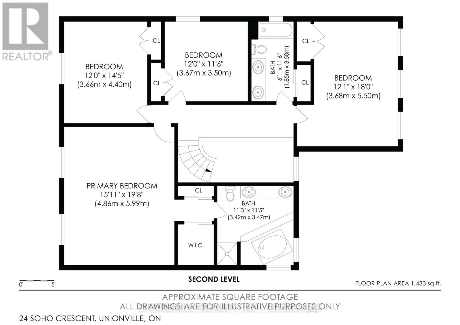 Welcome to 24 Soho Crescent - A rare opportunity to own in this neighbourhood at this price point. This spacious and well-maintained family home sits on a rare pie-shaped lot in a quiet, family-friendly crescent, offering the perfect blend of space, comfort, and location. With 4 bedrooms and 3 bathrooms, this is the one you've been waiting for. The expansive backyard provides endless possibilities - ideal for outdoor entertaining, a future pool, or creating your own private garden oasis. The main floor features bright and generous principal rooms, including a formal living and dining area, a sun-filled eat-in kitchen with walkout to the backyard, and a cozy family room with fireplace. Upstairs, the large primary suite offers a walk-in closet and private ensuite, while three additional bedrooms provide plenty of space for family, guests, or a home office. The unfinished basement with above-grade windows presents outstanding potential, including the opportunity for a future walkout or in-law suite. Recent upgrades include a new tankless water heater and updated bathrooms for added comfort and peace of mind. Located in one of Markham's most desirable neighbourhoods, this home is steps to Central Park Public School and within the coveted Markville Secondary School district, and close to parks, transit, shopping, and Markham Stouffville Hospital. Don't miss your chance to make this exceptional home yours. (id:64974)