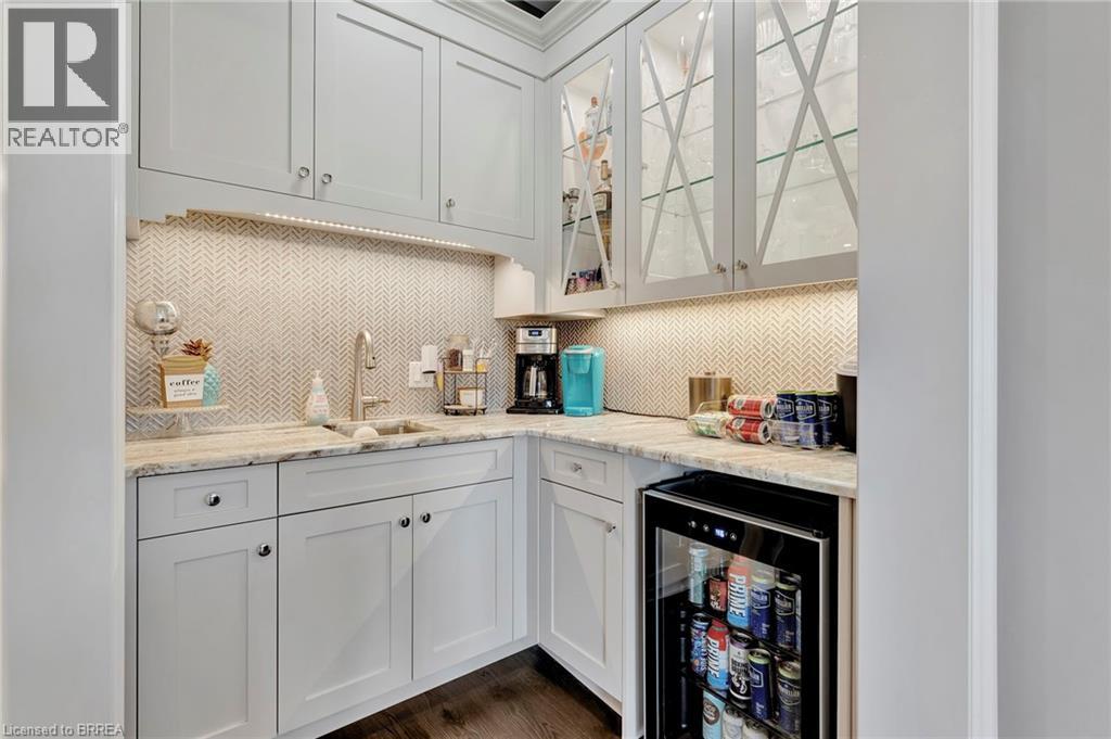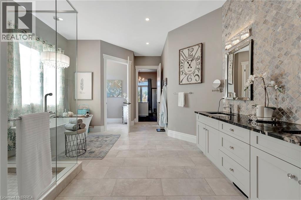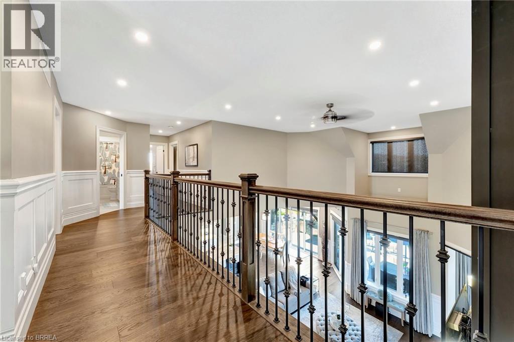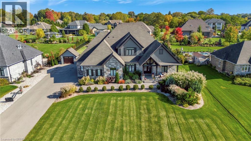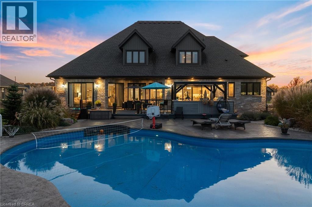 Welcome home to 24 Tedley Blvd., Brantford. First time being offered! A sprawling bungaloft on 0.80 acres with oversized 3 car garage (room for a hoist) + shed with garage door and power, high roof pitch, professionally landscaped grounds and a backyard meant for entertaining with covered outdoor kitchen, heated salt water pool and hot tub steps from the primary bedroom. Enter through your beautiful stamped concrete walkway (2020) to a main level overlooked by a balcony on the 2nd storey. Winding staircase, cathedral 18ft ceilings (10ft on main level with 8ft doors), upgraded trim package with wainscoting and accent walls, and a dry stack fireplace with Douglas fir mantel. Open concept to your chefs kitchen with walk in pantry, high end appliances and built ins. Entertain in your separate dining room with coffered ceilings. Find privacy with your remote blinds. 4 different access points to the backyard with outdoor kitchen and Coyote built in BBQ, electric griddle, outdoor fridge covered with a louvered pergola. Or walk out of your main level primary bedroom just steps to sunken hot tub (2019) and stay warm this winter! Primary bedroom also has large ensuite with heated floors and walk-in closet with island (2024). Or take a step back from the pool and get out of the sun at your concrete pad 12x 20ft cabana (has hydro). A backyard ready for your furry friends fully fenced with rod iron fencing. Upstairs find 3 more sizeable bedrooms, one with walk in closet and ensuite and another full bath as well. In the basement continue entertaining your friends and family with your wet bar overlooking pool table, and steps from a theatre room space with gas fireplace. Also a sizeable bedroom with ensuite privilege here. An additional crafts room and gym in the basement as well. Approx 6000sq ft of finished living space for you to enjoy and a total of 4+1 beds and 4.5 baths. Book today! (id:64974)