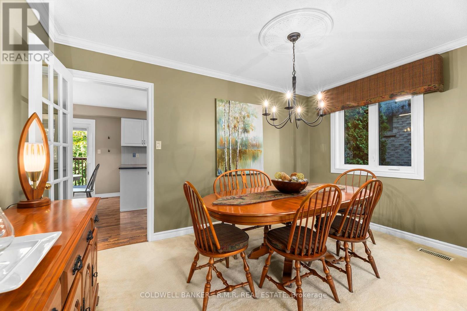 Welcome to this spacious and beautifully maintained family home, perfectly situated in one of Uxbridges most desirable neighbourhoods. Conveniently located close to top-rated schools, Uxpool, parks, and shopping, this property offers the ideal combination of comfort, space, and convenience. The main level features a layout designed for family living and entertaining. A large eat-in kitchen offers plenty of cabinetry, counter space, and natural light, seamlessly opening to the inviting family room complete with a cozy fireplace perfect for relaxing evenings. Walk out to a large deck overlooking a very private, tree-lined backyard, offering a peaceful outdoor retreat surrounded by beautiful landscaping. Upstairs, the spacious primary bedroom features a 4-piece ensuite and a generous walk-in closet, providing a quiet sanctuary at the end of the day. Additional bedrooms are well-sized and ideal for family members, guests, or a home office. The finished walkout basement adds incredible versatility, featuring a fully equipped in-law suite with its own separate entrance. This bright lower-level space includes a bedroom, 3-piece bathroom, separate laundry, kitchen, and comfortable living room with a fireplace perfect for extended family, guests, or potential rental income. Additional highlights include central air conditioning, all-brick construction, and pride of ownership throughout. With its functional layout, private setting, and prime location close to everything Uxbridge has to offer, this home truly has it all a rare find that blends suburban comfort with small-town charm. (id:64974)