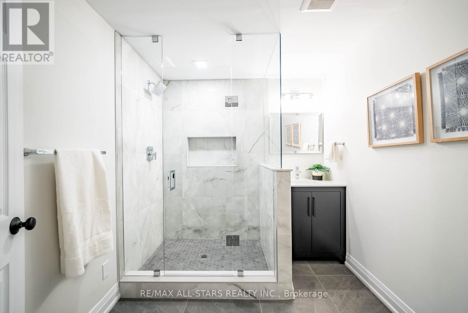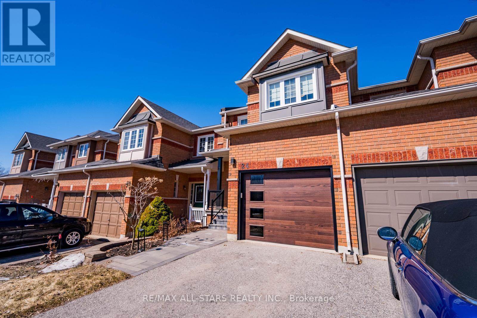 24 Willoway is a beautifully renovated freehold townhome in a highly sought-after, family-friendly neighbourhood.The main level has solid birch hardwood flooring, smooth ceilings, modern lighting, and pot lights throughout. A formal dining area flows into the inviting family room, anchored by a gas fireplace with a stone surround and flanked by large windows that fill the space with natural light. The kitchen has bright cabinetry with custom hardware, stainless steel appliances, quartz countertops, and a tiled backsplash. An eat-in area offers seamless access to the backyard through sliding doors, ideal for both everyday living and entertaining. Upstairs, three generously sizebedrooms, all finished with the same birch hardwood flooring, smooth ceilings, and pot lighting throughout. The primary suite offers a comfortable retreat, complete with a spacious walk-in closet featuring custom organizers and a beautifully renovated 4-piece ensuite with a glass shower, custom vanity, and modern finishes. All bathrooms have been tastefully updated, and new interior doors and hardware. The finished basement provides exceptional additional living space, perfect for a recreation room, home office, gym, or play area. A newly updated 3-piece bathroom with a seamless glass shower enhances the functionality of this level. Ample storage options further add to the home's practicality. A rare 133-foot deep backyard - is an outstanding feature that sets this property apart. With a lower deck for entertaining, expansive green space for children and pets, and professionally completed grading and retaining wall. Located close to parks, trails, and within walking distance to top-rated schools including St. Brigid Catholic School and Harry Bowes Public School. Enjoy easy access to Main Street's shops, restaurants, and everyday amenities, as well as the nearby Stouffville GO Station for convenient commuting. (id:64974)