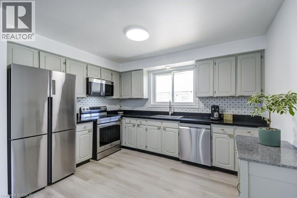 Gorgeous renovated backsplit backing onto a ravine! The bright open-concept layout features an upgraded kitchen with new appliances and stone countertops, complemented by renovated bathrooms, new hardwood stairs, new flooring, lots of pot lights, and is also carpet-free across all levels. The lower-level family room with gas fireplace walks out to a large backyard with no rear neighbours, perfect for morning coffee, evening unwinding, and everything in between. The finished basement with kitchenette and rec room adds flexible space for guests, hobbies or extended family living. Enjoy a walkable lifestyle with parks, schools, everyday amenities and Brant Hills Community Centre just minutes away. Nature lovers will appreciate nearby conservation areas and golf courses, while commuters benefit from quick access to Highway 407, 403 & QEW and a short drive to the Burlington GO Station. Ravine views, stylish updates, and a location that keeps everything within reach; this home truly has it all! (id:64974)