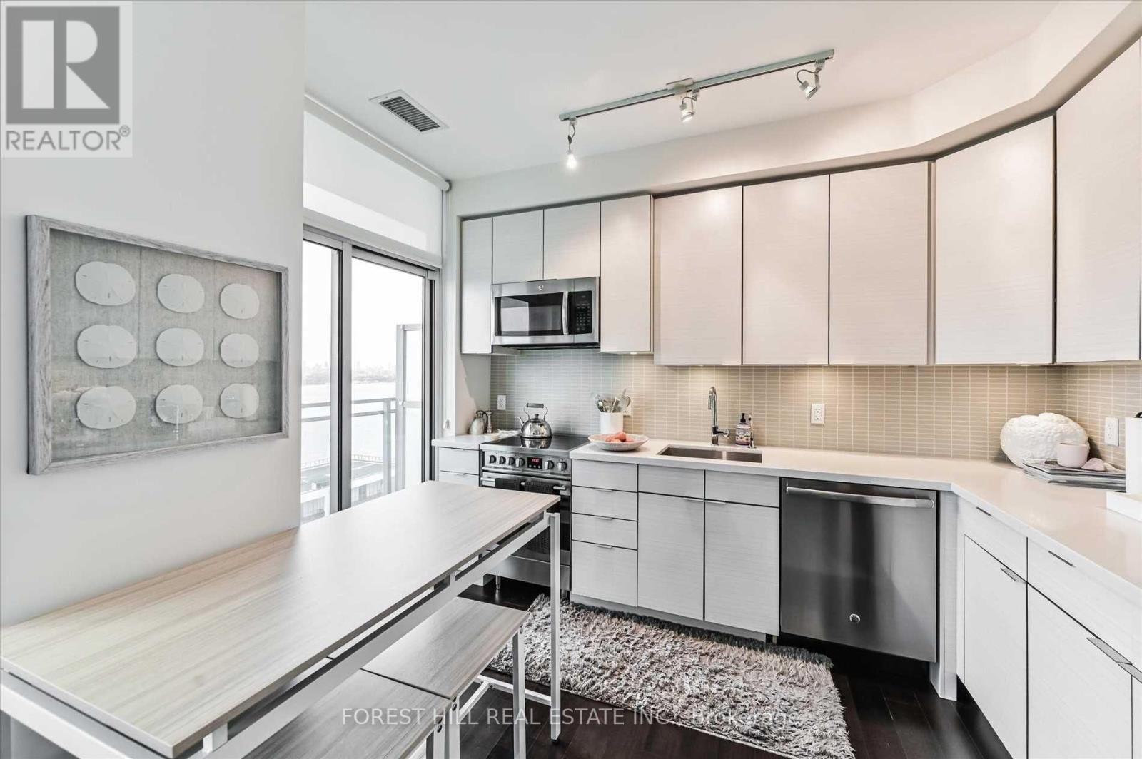 Beautiful 1+Den condo in the heart of Humber Bay Shores with stunning southeast views of LakeOntario, the CN Tower, and the city skyline. This bright and functional layout offers 584 sq.ft. of living space plus a spacious 157 sq. ft. balcony, perfect for relaxing or entertaining.Features include floor-to-ceiling windows, smooth ceilings, and an open-concept living area filled with natural light. The modern kitchen is equipped with stainless steel appliances, quartz countertops, and pot lights. Separate den ideal for a home office or study.Includes parking and locker. Unbeatable location just steps to the waterfront, parks, trails, shops, restaurants, TTC/GO transit, and quick access to the Gardiner Expressway.Experience lakeside living in one of Toronto's most vibrant communities. (id:64974)