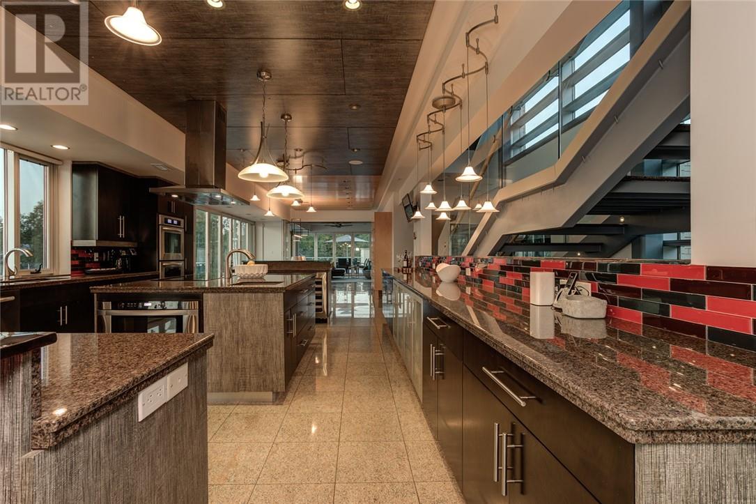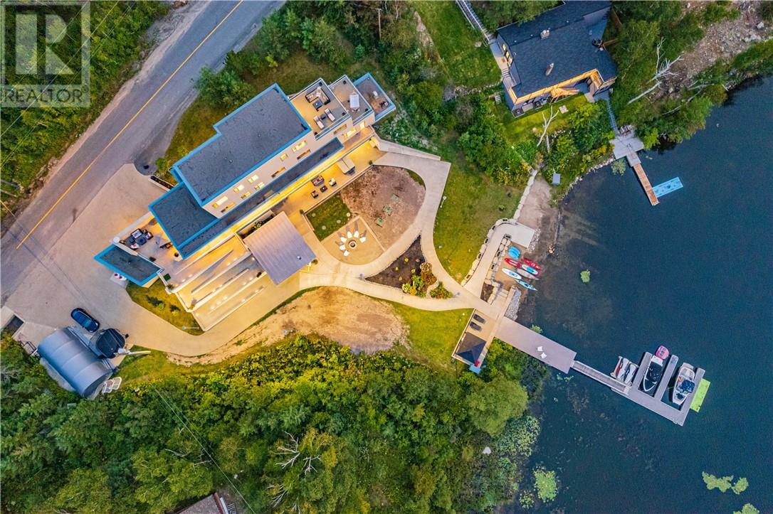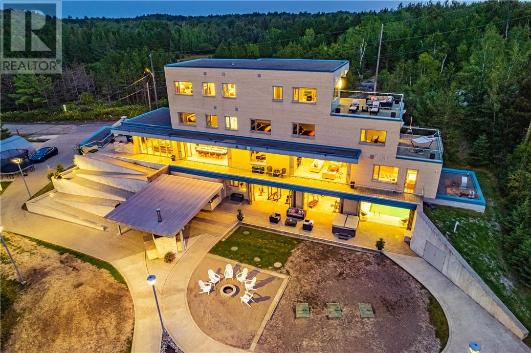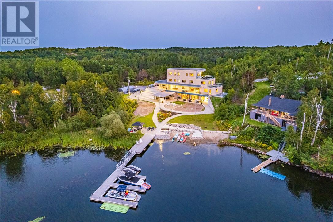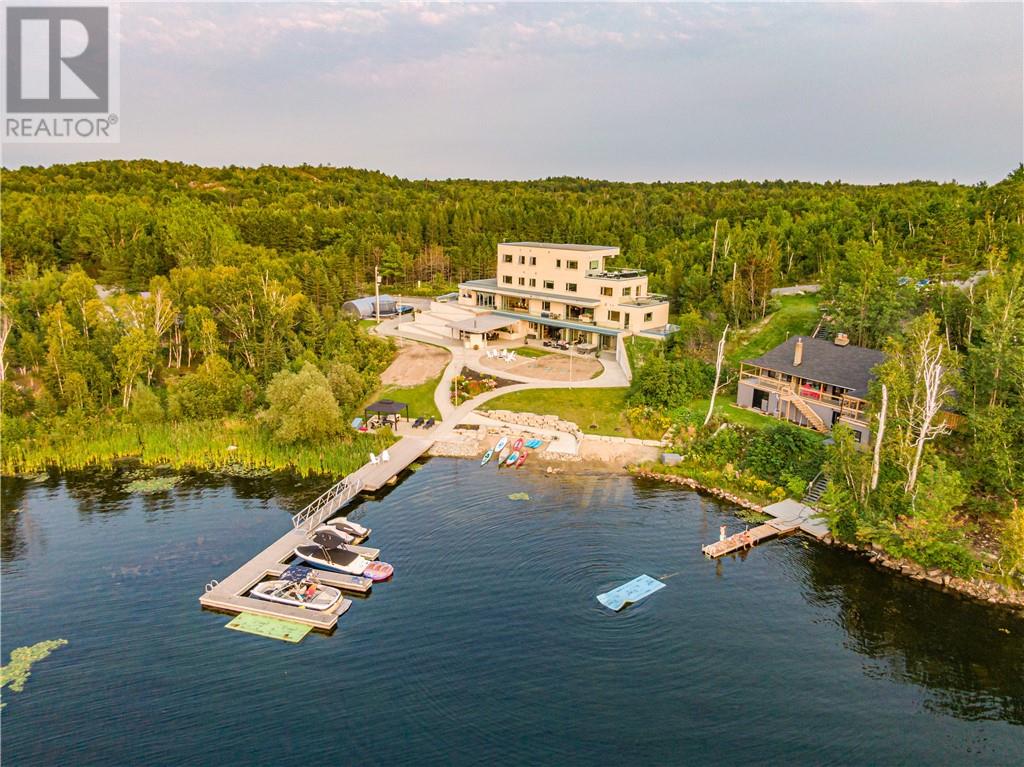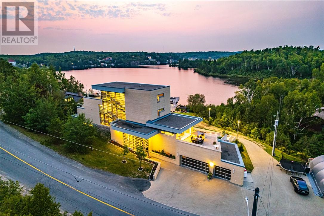 In a league of its own & located on the sought-after Ramsey Lake. In the heart of Sudbury next to HSN, biking/hiking & ski trails, Sudbury's Northern Watersports Centre and so much more. This 6,000 sq.ft.+ waterfront home incl's a beautiful mix of granite & maple hardwood floors without w stunning detail. 18' waterfall feature as you enter the home. Four levels (wheelchair accessible complete with an elevator & outdoor ramps). Glass curtain walls that let in all the gorgeous sunlight and California sliding doors that open all the way up lakeside bringing the outdoors in. Two temperature-controlled wine cellars (500 & 1500 bottle), family theatre room, vitality bar for smoothies and drinks, gym with changeroom and indoor heated pool all of which opens lakeside and leads to the outdoor shower, hot tub, relaxing sitting area, and stone fire pit which is next to a mind blowing out-door kitchen. Details to mention here are wood-burning pizza oven, grill, beverage fridge, full sink, icebox, prepping station and so so much more, plus enclosure for cool or winter months. Take the elevator or the outside ramps up to the 2nd level where you will find the heart of the home. This kitchen is incredible, with multiple islands & gorgeous granite countertops, chef-inspired built-in appliances etc. It is an open concept design on this flr. Details include a gas fireplace, custom built-in cabinets, shelves, walk-in pantry & captains dining table where you will catch the most incredible sunsets. Just off the dining area is the sunroom that opens up to the waterfront and to the 2nd outdoor kitchen. The primary suite is located on its own floor offering a private interlock terrace (sunsets), Office (incredible lake views), walk-in closet and ensuite. The home offers 6 bedrooms 6 baths. Sandy beaches, docking systems for multiple water toys & boats, a triple car garage, and a secret passageway. This is a must-see as there is so much more to experience. (id:64974)