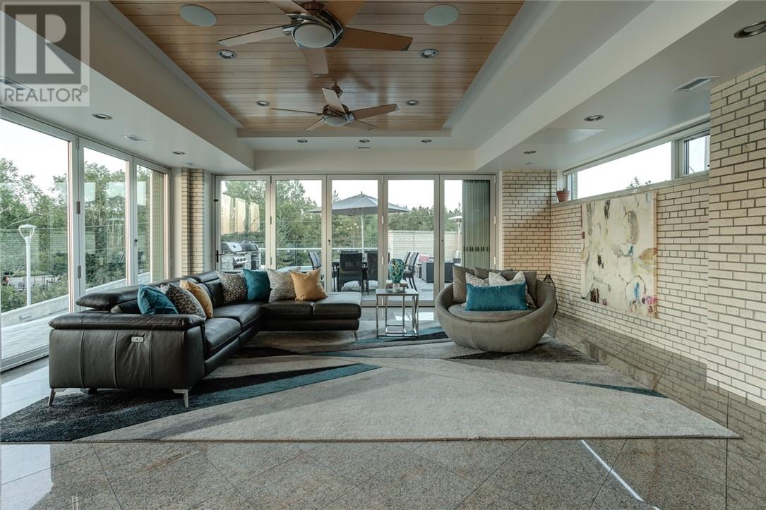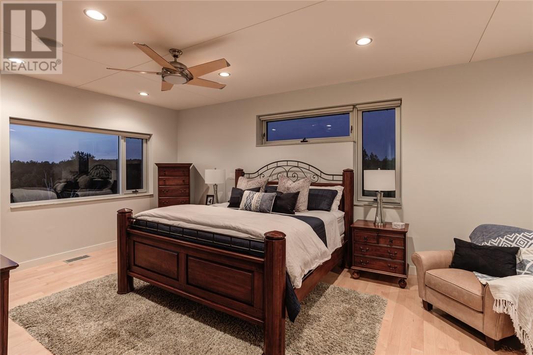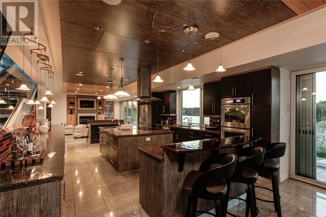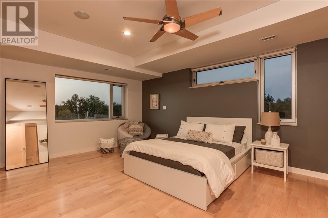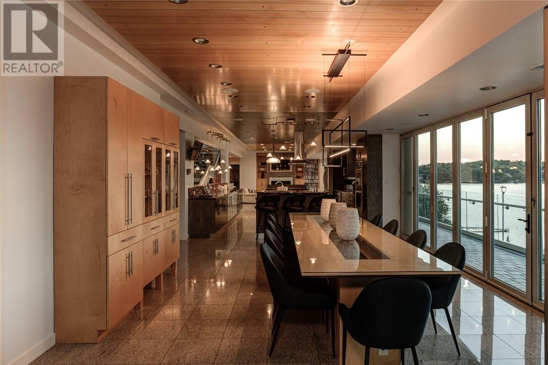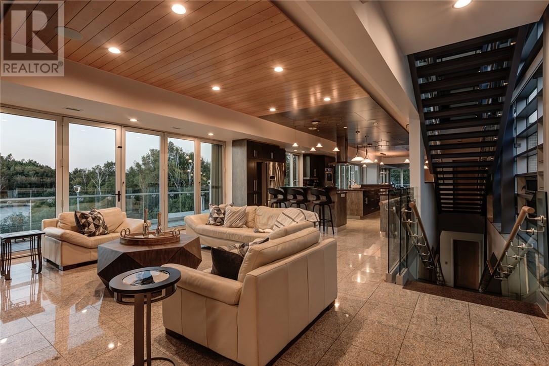 In a league of its own & located on the sought-after Ramsey Lake. In the heart of Sudbury next to HSN, biking/hiking & ski trails, Sudbury's Northern Watersports Centre and so much more. This 6,000 sq.ft.+ waterfront home incl's a beautiful mix of granite & maple hardwood floors without w stunning detail. 18' waterfall feature as you enter the home. Four levels (wheelchair accessible complete with an elevator & outdoor ramps). Glass curtain walls that let in all the gorgeous sunlight and California sliding doors that open all the way up lakeside bringing the outdoors in. Two temperature-controlled wine cellars (500 & 1500 bottle), family theatre room, vitality bar for smoothies and drinks, gym with changeroom and indoor heated pool all of which opens lakeside and leads to the outdoor shower, hot tub, relaxing sitting area, and stone fire pit which is next to a mind blowing out-door kitchen. Details to mention here are wood-burning pizza oven, grill, beverage fridge, full sink, icebox, prepping station and so so much more, plus enclosure for cool or winter months. Take the elevator or the outside ramps up to the 2nd level where you will find the heart of the home. This kitchen is incredible, with multiple islands & gorgeous granite countertops, chef-inspired built-in appliances etc. It is an open concept design on this flr. Details include a gas fireplace, custom built-in cabinets, shelves, walk-in pantry & captains dining table where you will catch the most incredible sunsets. Just off the dining area is the sunroom that opens up to the waterfront and to the 2nd outdoor kitchen. The primary suite is located on its own floor offering a private interlock terrace (sunsets), Office (incredible lake views), walk-in closet and ensuite. The home offers 6 bedrooms 6 baths. Sandy beaches, docking systems for multiple water toys & boats, a triple car garage, and a secret passageway. This is a must-see as there is so much more to experience. (id:64974)