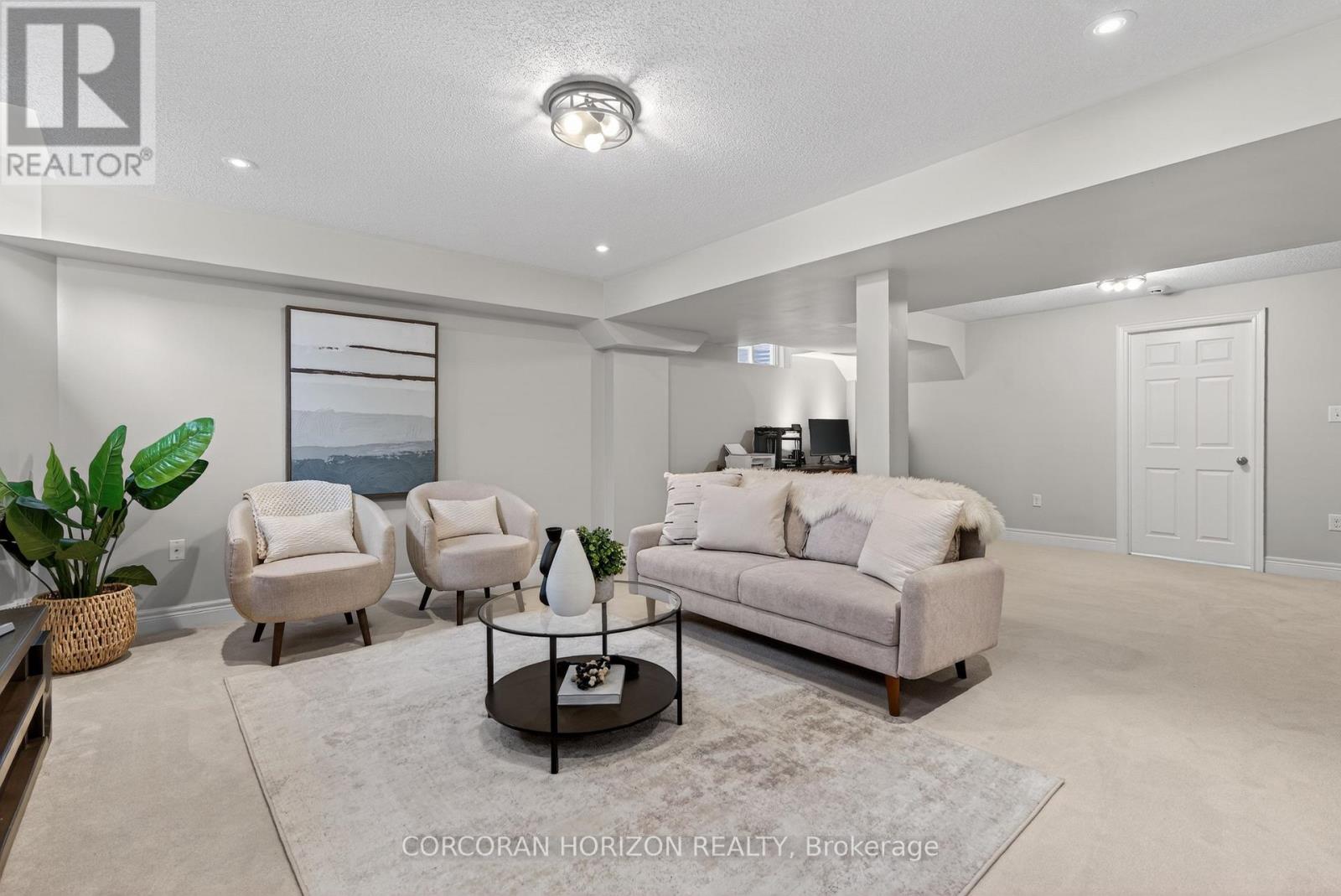 Welcome to this Upgraded, executive and premium End-unit townhome nestled in a Cul-de-sac prestigious Bronte Creek community of beautiful Oakville. Featuring a rare double car garage and concrete driveway, this home offers 4 Bedrooms, 4.5 Bathrooms with Finished Basement boasting 3279 sqft living space showcases exceptional curb appeal. Almost $100K spent on premium interior and exterior enhancements.Main floor offering 9' ceilings, rich plank hardwood flooring, elegant oak stairs with iron pickets, and California shutters throughout. The open-concept layout features a combined living/family room with cozy fireplace, dining and breakfast area.The chef-inspired kitchen is beautifully upgraded with extended white cabinetry, quartz countertops, a stylish backsplash, and brand new Fisher & Paykel premium appliances complimented by pot lights on entire floor. A sliding glass door leads to the fully fenced backyard, complete with a concrete patio, Beautiful Landscaping for privacy and calmness.Upstairs offers four spacious bedrooms, the expansive Master bedroom retreat offers a walk-in closet, and a spa-inspired ensuite with double sinks, quartz counters, a separate glass shower, a soaker tub, with a premium mirror. Second bedroom offers lots of space and private 3 pc bathroom adding privacy. Remaining 2 spacious bedrooms and additional 3 pc bathroom offers more cozy space. A second-floor laundry room, eliminating the need to carry loads between floors.The professionally finished Basement includes quality carpet, pot lights, big spacious windows and a spacious recreation area which can be used in many versatile ways and a full bathroom.Additional highlights includes Smart & Secure Front door, Garage Epoxy, Exterior Smart pot-lights, railing at front and patio doors, freshly painted, and recently deep-cleaned. Located within walking distance to top-rated schools, parks, scenic trails and just minutes to 403/407,Bronte GO, Hospital makes this home a Must see! (id:64974)