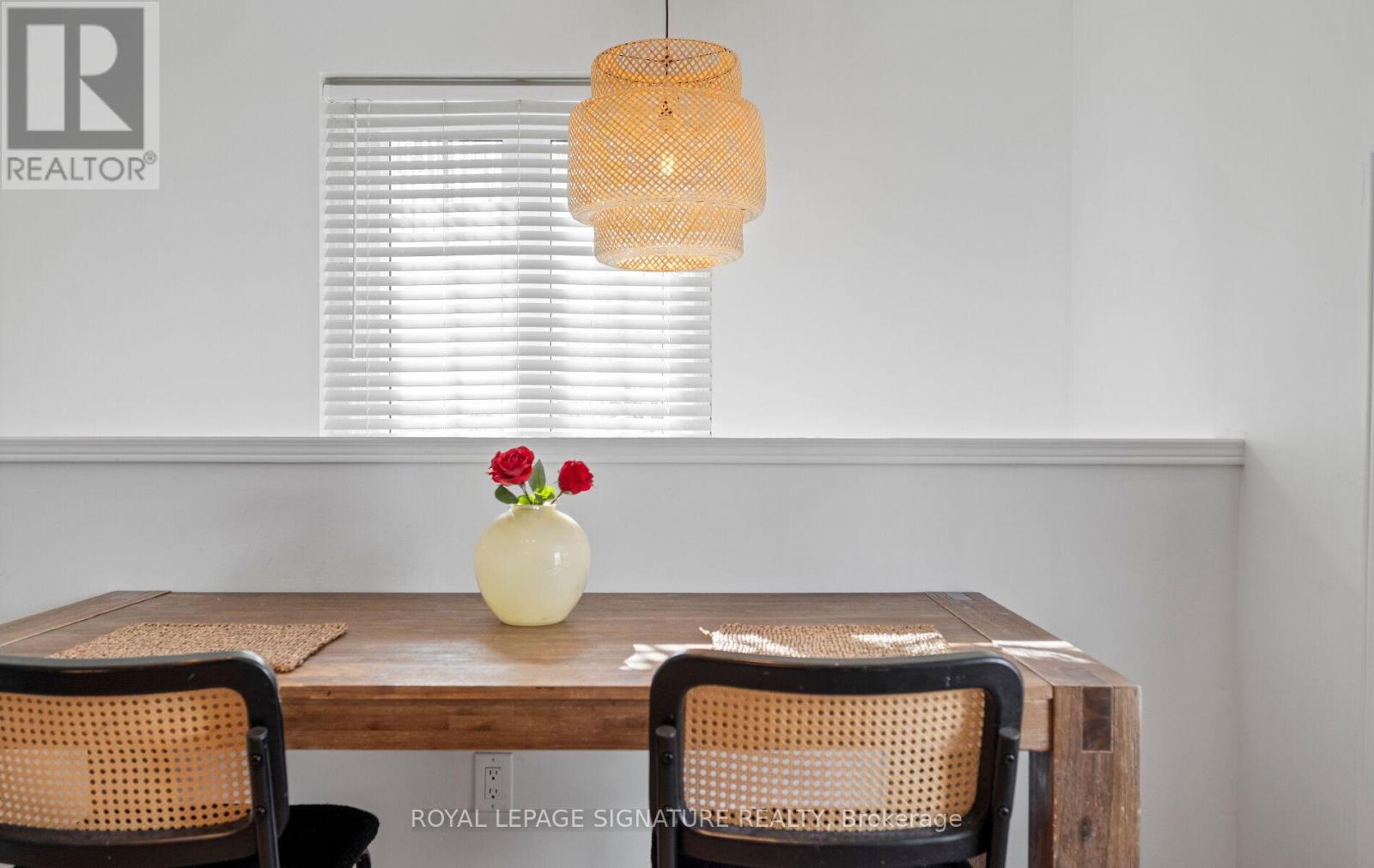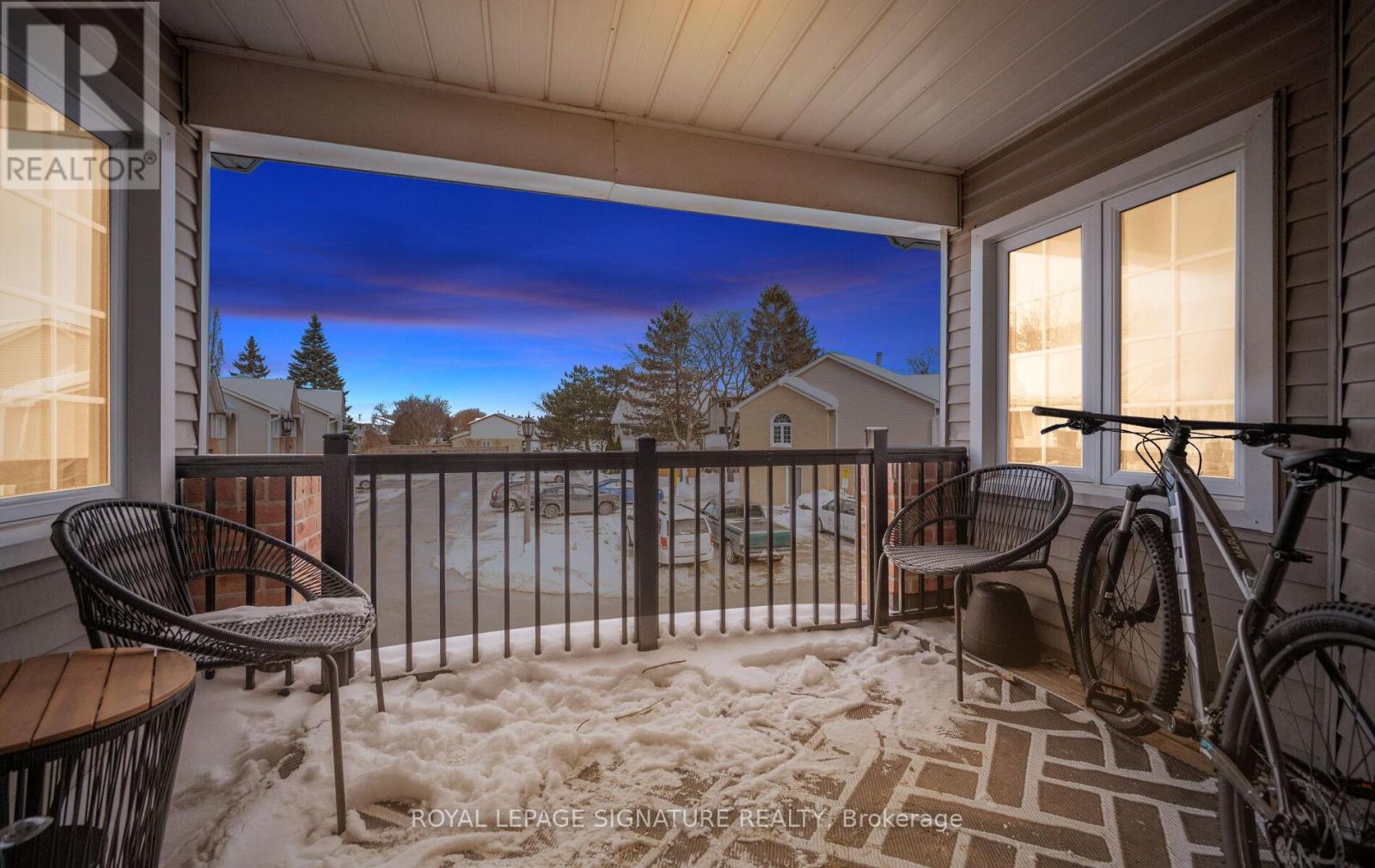 Updated and spacious end-unit townhome in the highly sought-after Headon Forest community offering approx. 1,130 sq. ft. of well-designed living space. Open-concept main floor features an eat-in kitchen with large picture window, flowing into a sun-filled living room with cozy fireplace and patio doors leading to a covered terrace with BBQ space. Ideal for everyday living and entertaining. Generous primary bedroom with ensuite privileges, updated bathroom, hardwood flooring, crown mouldings, and new washer & dryer. Freshly painted with new 3rd bedroom new electrical and light fixtures throughout. Third bedroom newly reframed and sound-proofed. Recent mechanical updates include Central A/C (2023), furnace (2014) with new blower (2023), humidifier (2013), fridge (2023) and shingles (2019). One surface driveway parking spot included. Initial Quiet, family-friendly complex steps to top-rated schools including French Immersion, parks, shopping, transit, and all daily amenities. Excellent value in a mature Burlington neighbourhood. Ideal for first-time buyers, downsizers, or investors. (id:64974)