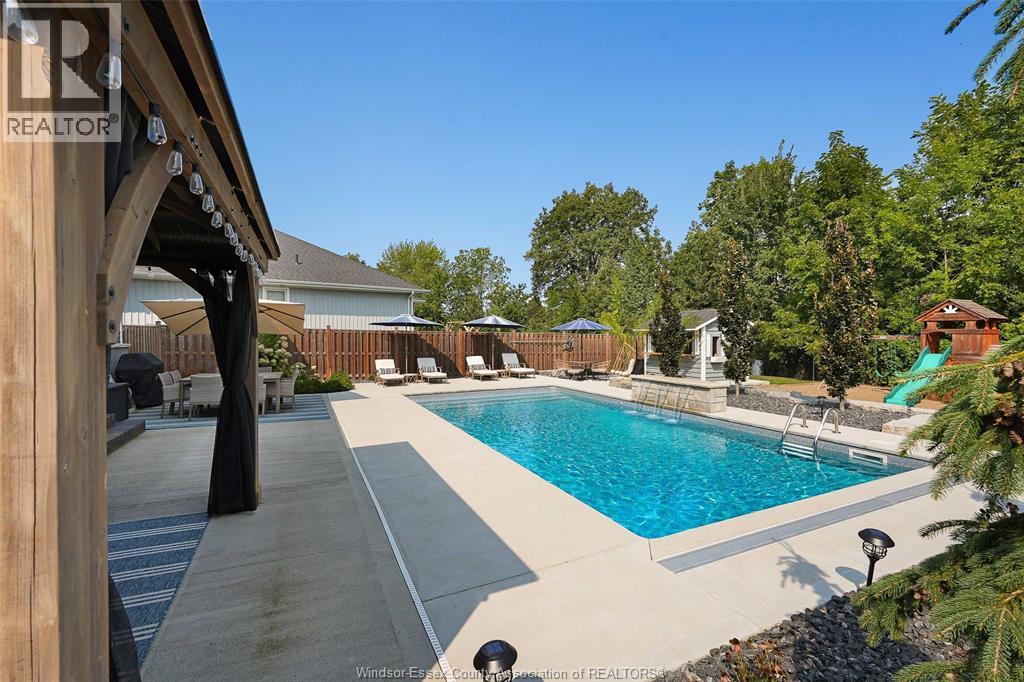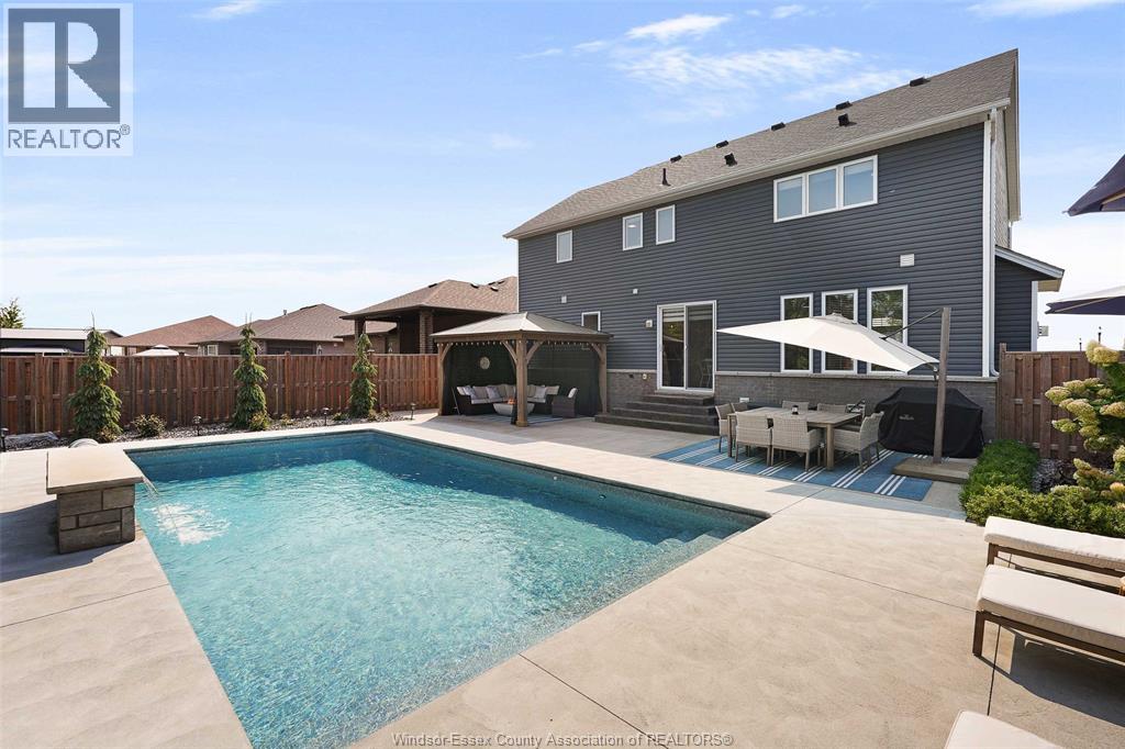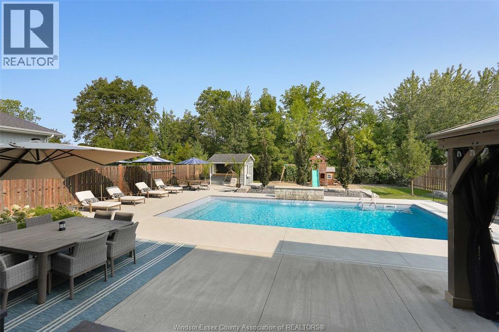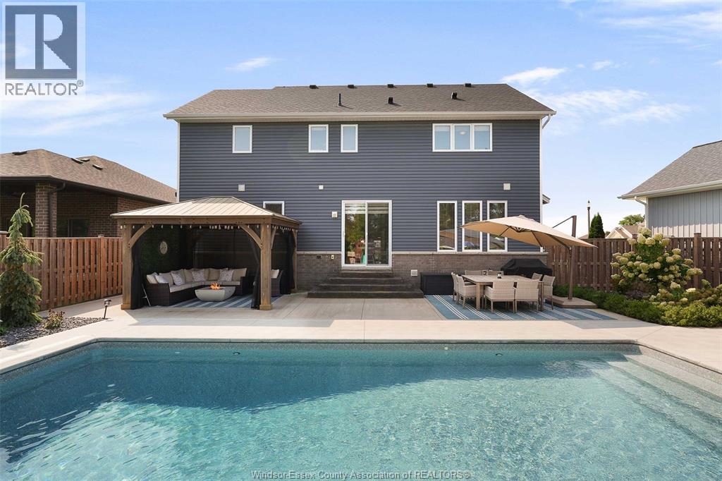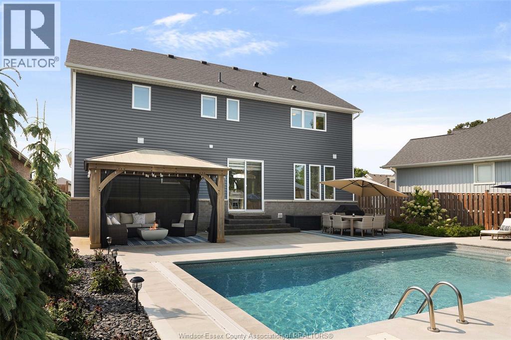 Welcome to this exceptional two-storey home in sought after area of Meadowview Estates. Built by BK Cornerstone, this home is thoughtfully designed for both elegance and everyday living. Main floor features a living room with gas fireplace, mudroom, 2 piece bath and a stunning custom kitchen with quartz countertops, ample cabinetry and a walk-in pantry. The primary suite offers a spa-like ensuite with soaker tub and tiled shower. With 5 spacious bedrooms (3 with walk-in closets), 3.5 bathrooms and a fully finished basement, there's room for the whole family. Step outside to your private backyard oasis with an inground heated saltwater pool with LED lighting, waterfall feature, Euroshed bar and playground - perfect for entertaining. Professionally landscaped with no rear neighbours for added privacy. A true must-see! (id:64974)