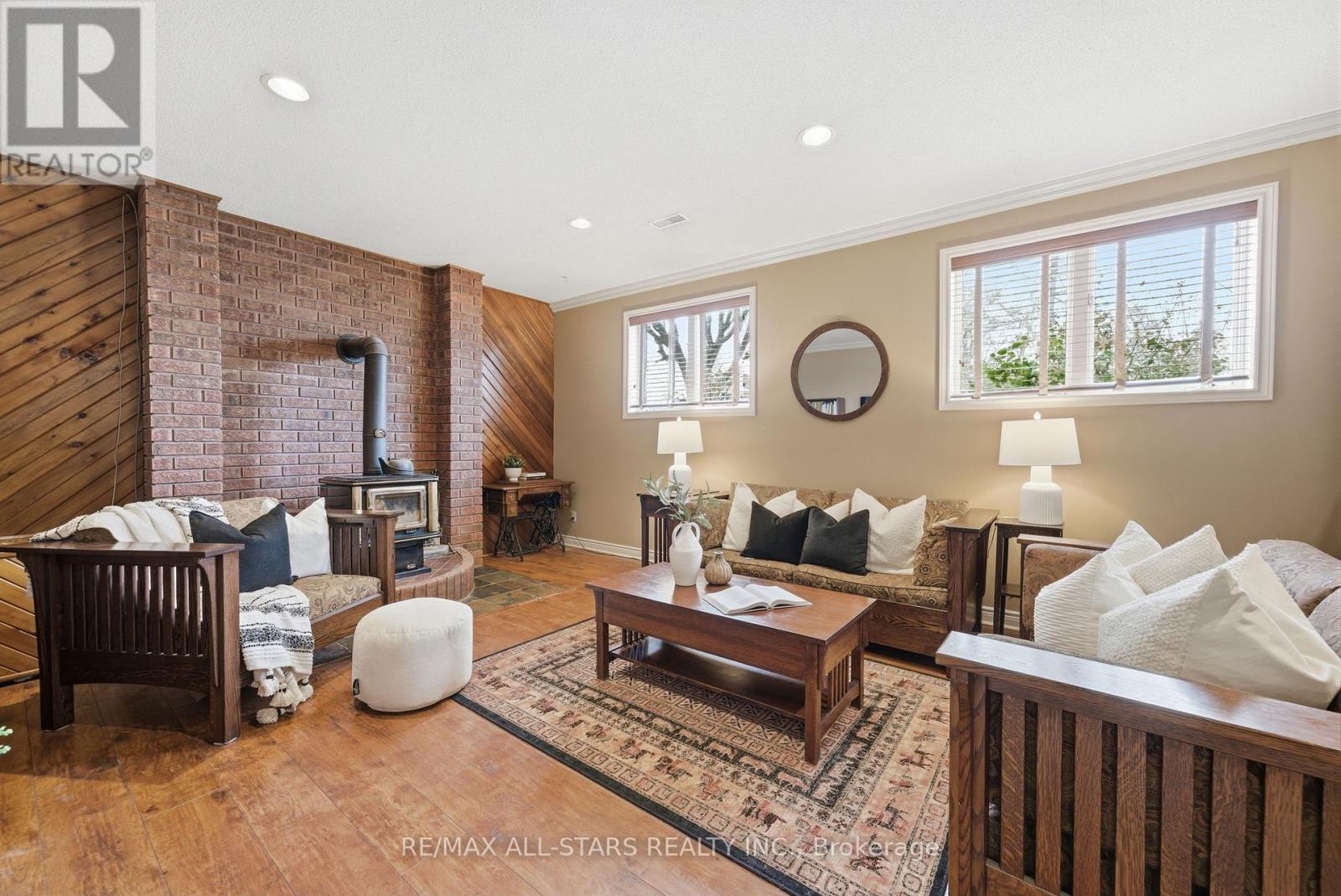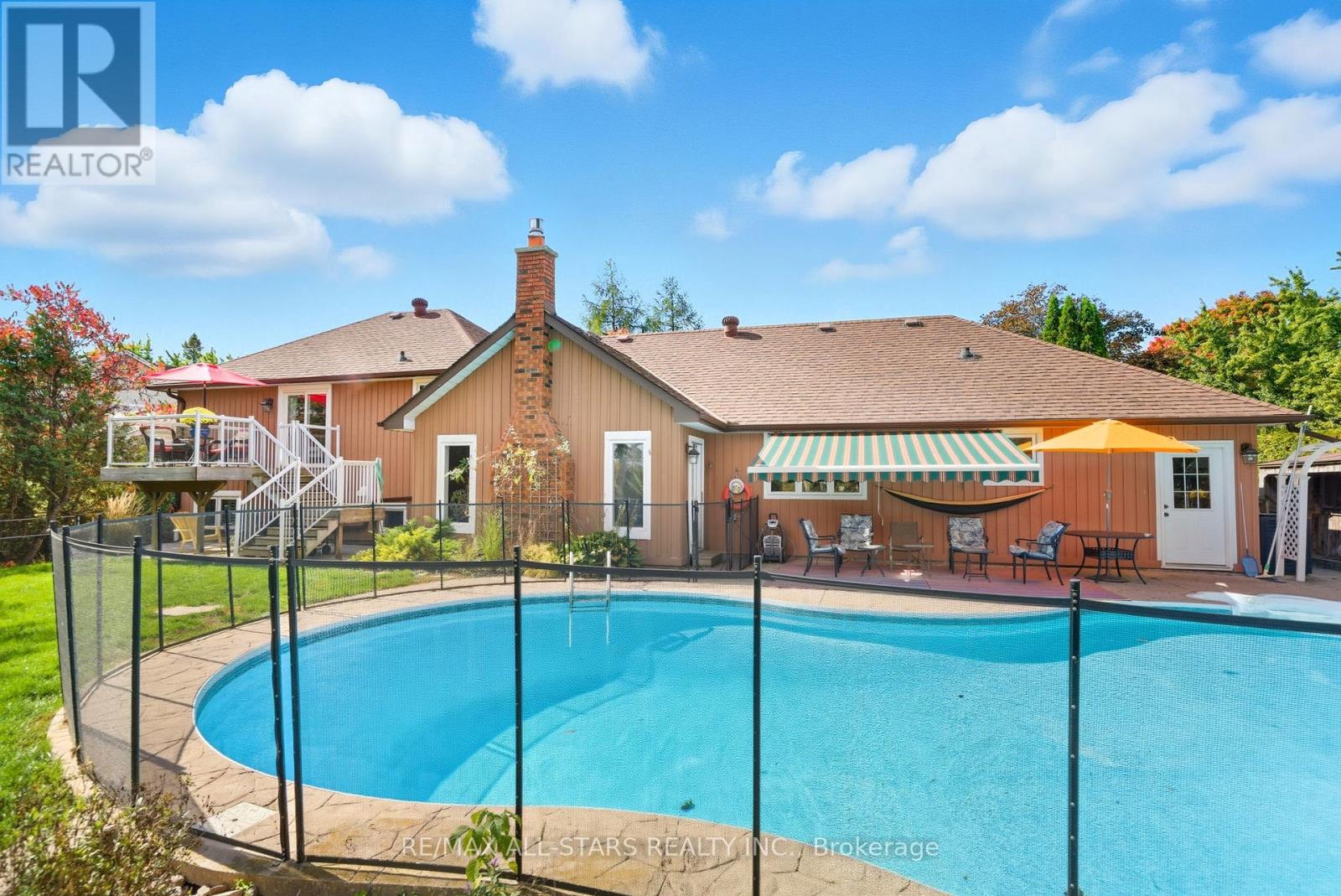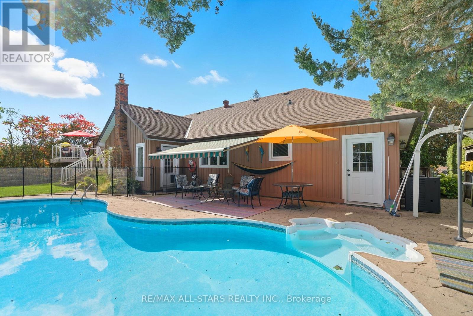 Lovely updated split level all brick home situated on an idyllic park-like lot & views across from Lake Scugog; updated custom kitchen with Wolf, Miele & LG appliances, granite counters- custom electrical built in under cabinets; living room with vaulted tongue & groove wood ceiling and gas fireplace; Franklin wood stove, above grade windows & engineered hardwood in family room; beautiful yard/pool vistas from Primary bedroom with updated 4pc ensuite including heated slate floor & towel rack & walk in shower and bidet; 3 additional bedrooms-one with semi-ensuite, another with Murphy bed. Basement level currently finished with a workshop with storage; storage hall with shelving; hobby room and cantina area with rangehood, industrial size stainless sink, portable dishwasher with butcher block (not connected). Excellent outdoor entertaining and family space complete with remote control awning over patio with auto retract for wind, additional patio off kitchen, fenced-in 18'x42' inground pool; Grill Zebo with gas line connection for BBQ; oversized double car garage with updated/insulated doors, two level attic space and access to the home. Rear property is fenced and backs to fields for tranquility and privacy. Updates include: kitchen +/- 2015; sump pump with battery backup/alarms for sewage ejector; gas furnace & central air +/- 2012; pool liner +/- 2019; pool pump & filter +/- 2020; gas pool heater +/- 2022; winter pool cover 2025; roof shingles +/-2012; Family bath +/-2008; ensuite baths +/- 2017&2018; some updated windows and exterior doors; Telus security system; high speed fibre optic internet (id:64974)