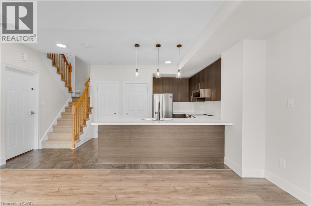 Welcome to elevated, turnkey living in Oakville’s highly sought-after West Oak Trails. This beautifully renovated 2-bedroom + den townhome offers over 1,200 sq. ft. of bright, thoughtfully designed space in a quiet, family-friendly enclave—ideal for professionals, couples, or small families who value both comfort and convenience. From the moment you step inside, the tone is set with fresh flooring, updated lighting, and clean, modern finishes that feel both current and inviting. The main level is anchored by a spacious open-concept layout, where the kitchen seamlessly connects to the living and dining areas—designed for real life and easy entertaining. Featuring quartz countertops, sleek cabinetry, stainless steel appliances, and a functional peninsula with seating, it’s a space that works as well on a busy weekday as it does when hosting friends. Large windows flood the home with natural light, adding to the airy, welcoming feel throughout. Upstairs, the versatile den offers flexibility for today’s lifestyle—perfect as a work-from-home office, reading nook, or bonus living space. One of the standout features is the private rooftop terrace, offering a rare outdoor escape to unwind, entertain, or simply enjoy a quiet moment at the end of the day. Practicality meets convenience with two underground parking spaces, dedicated storage, and ample visitor parking for guests. All of this, set in a prime location just minutes to top-rated schools, parks and trails, shopping, Oakville Trafalgar Memorial Hospital, and major commuter routes. A polished, move-in-ready home in one of Oakville’s most desirable communities—this is effortless living, exactly where you want to be. (id:64974)