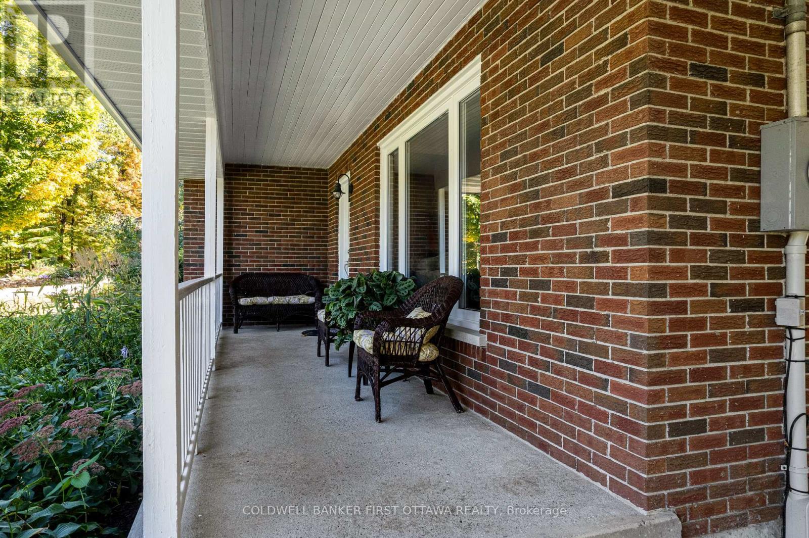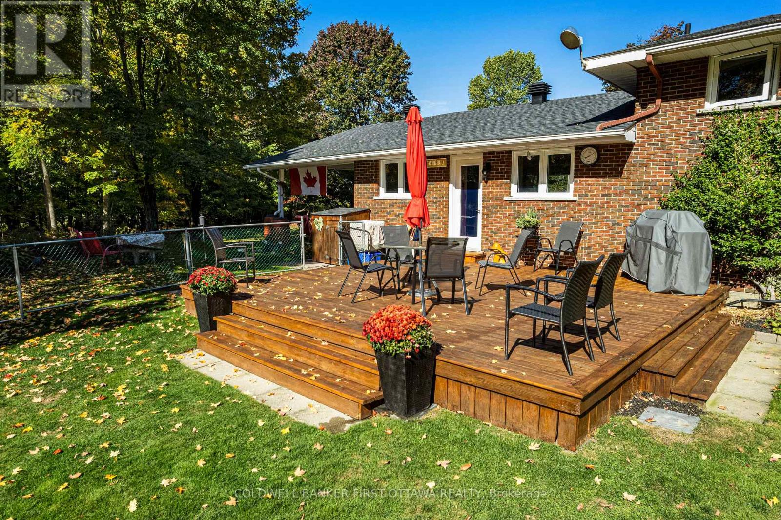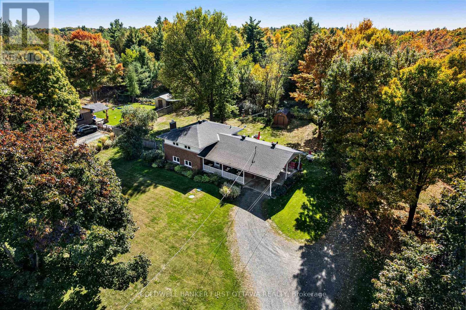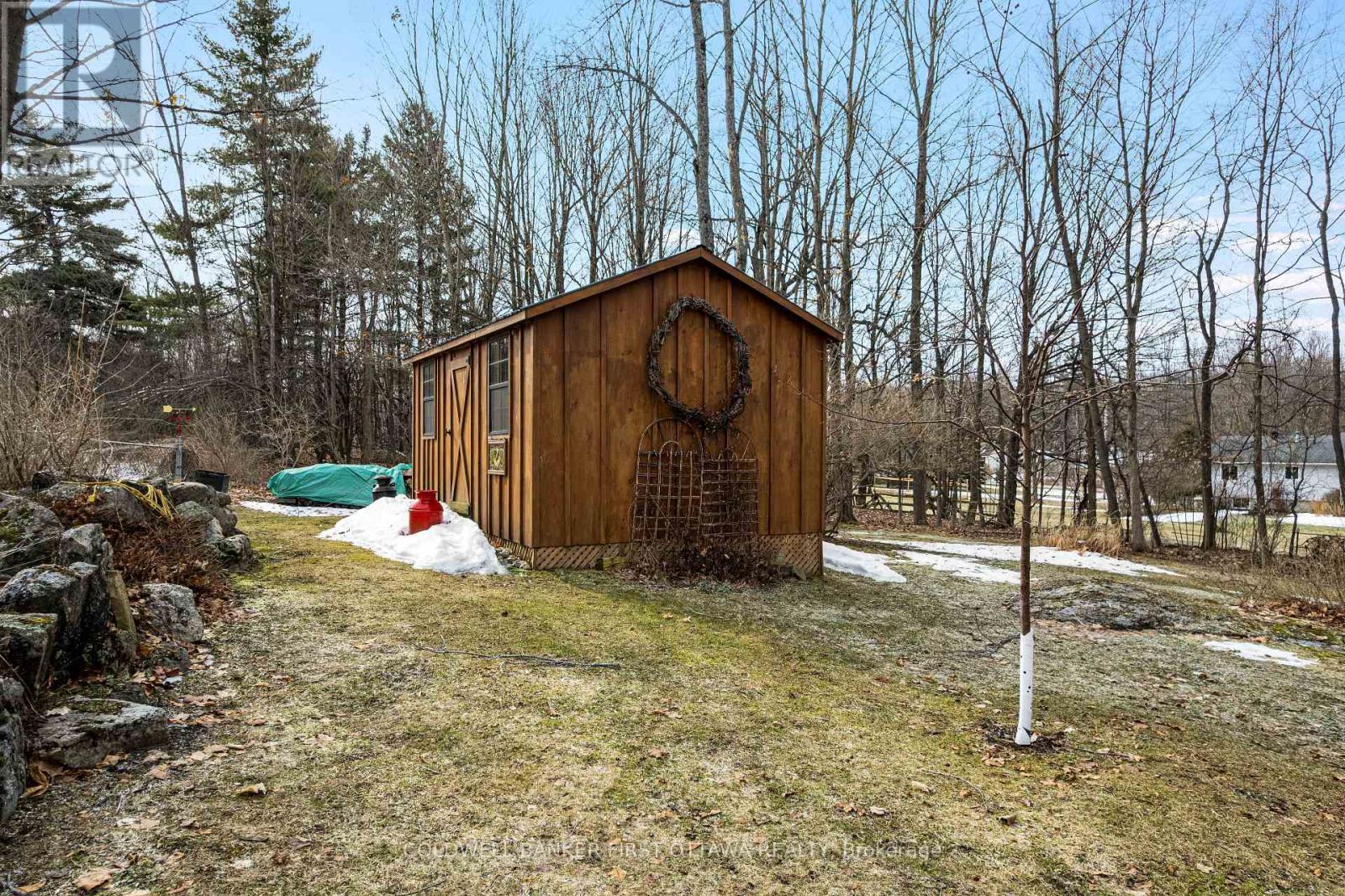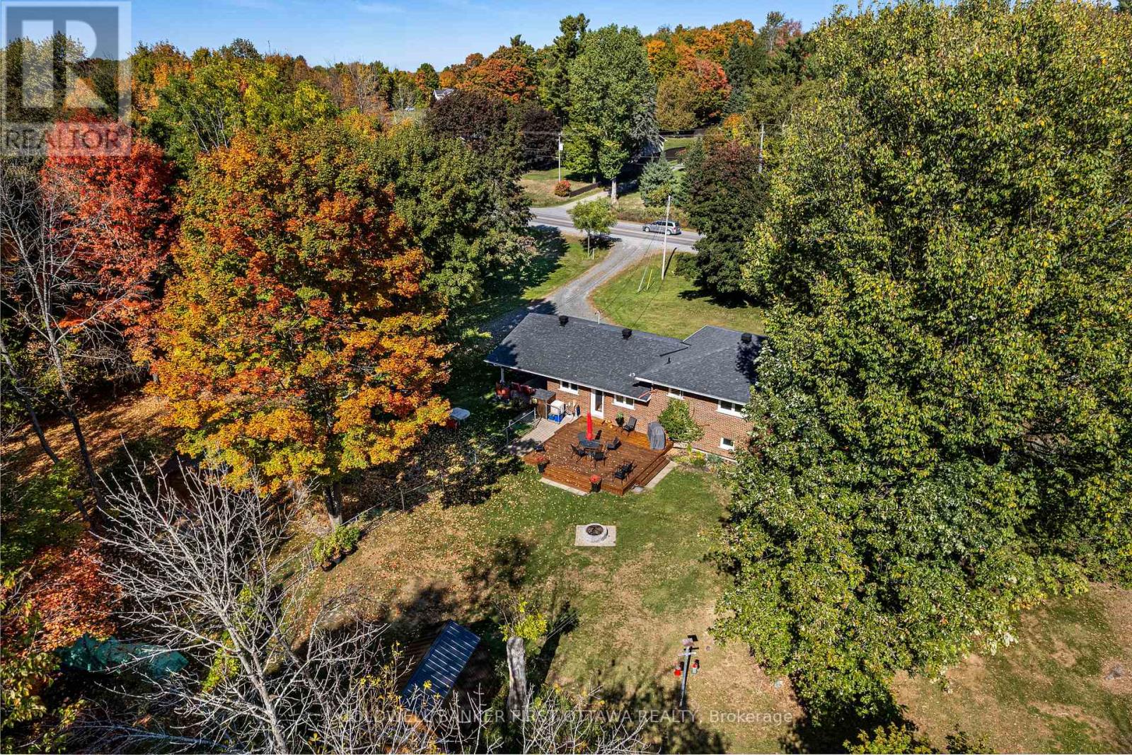 Tucked away on a beautifully treed 1.5 acre pie-shaped lot, this solid brick 3 bedroom side split is only 5 minutes to Perth! This well maintained home offers space, comfort, and versatility. Surrounded by mature trees, this home features a bright, inviting layout with custom kitchen cabinetry, hardwood floors, and refined finishes including crown moulding. The raised lower level featuring large windows, cozy propane fireplace (2020), bonus den, and ample storage. Enjoy outdoor living with a spacious deck (propane BBQ hookup), firepit, beautiful gardens with water fountain, and a large partially fenced yard. Two sheds add great functionality, including one with power - ideal for a workshop or hobby space. Major updates include Generac generator (2023), furnace & A/C (2019), pressure tank (2022), hot water tank (2024) and more. Minutes to the Rideau Ferry Yacht Club, and quick access to boating on Big Rideau Lake and Otty Lake. From fireside evenings to peaceful mornings on the deck, this property is all about lifestyle. (id:64974)