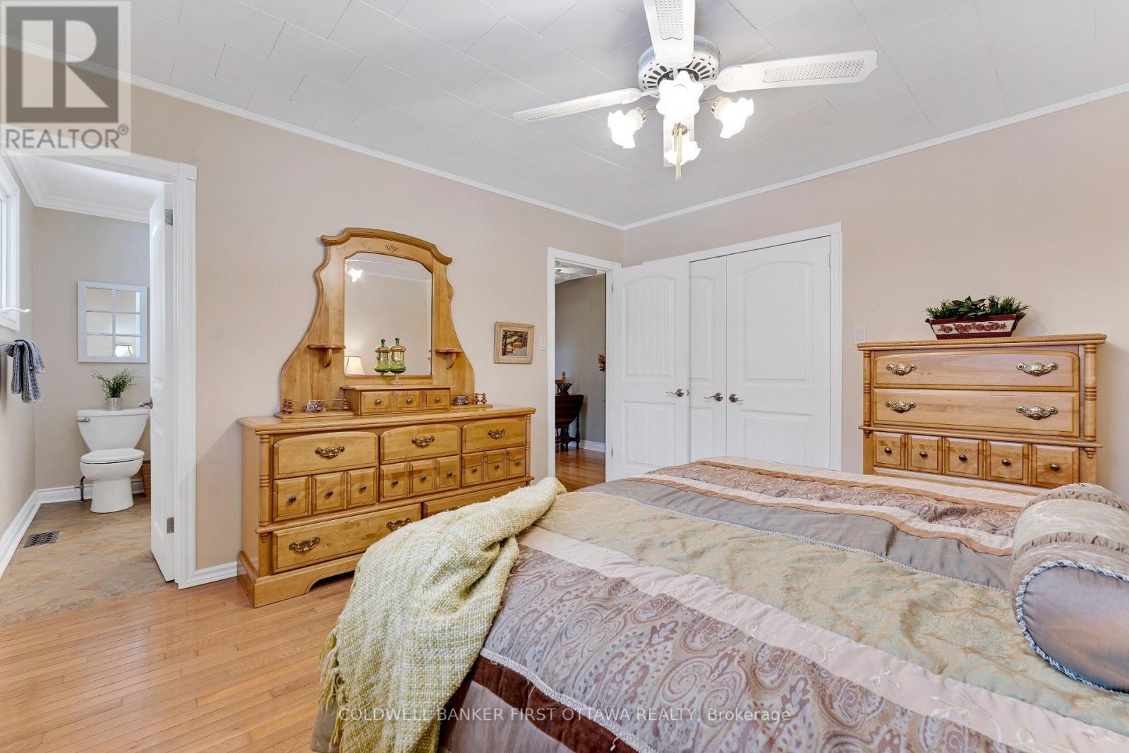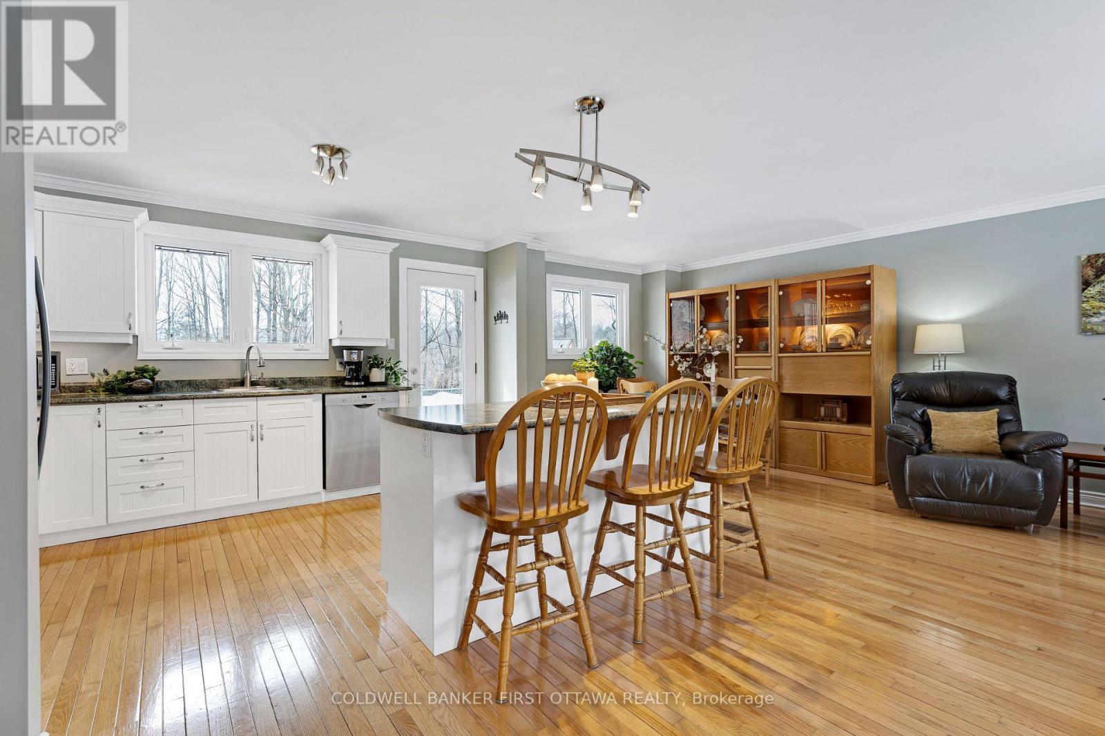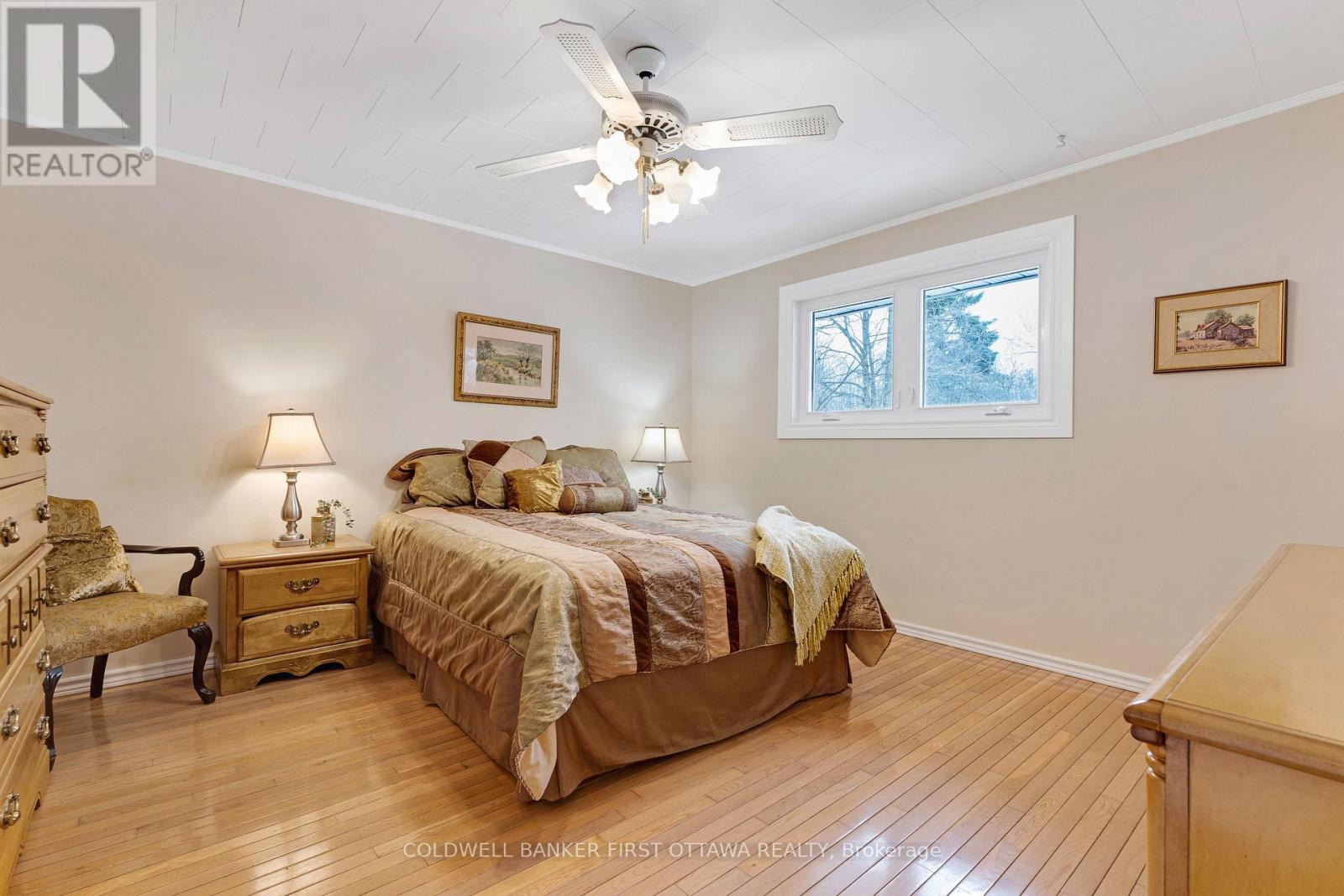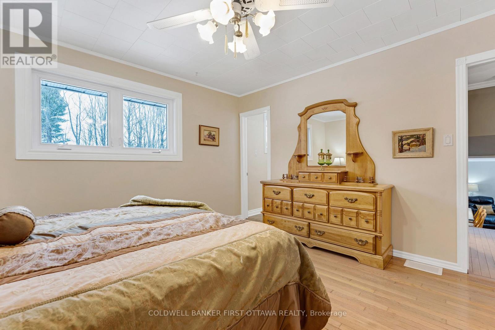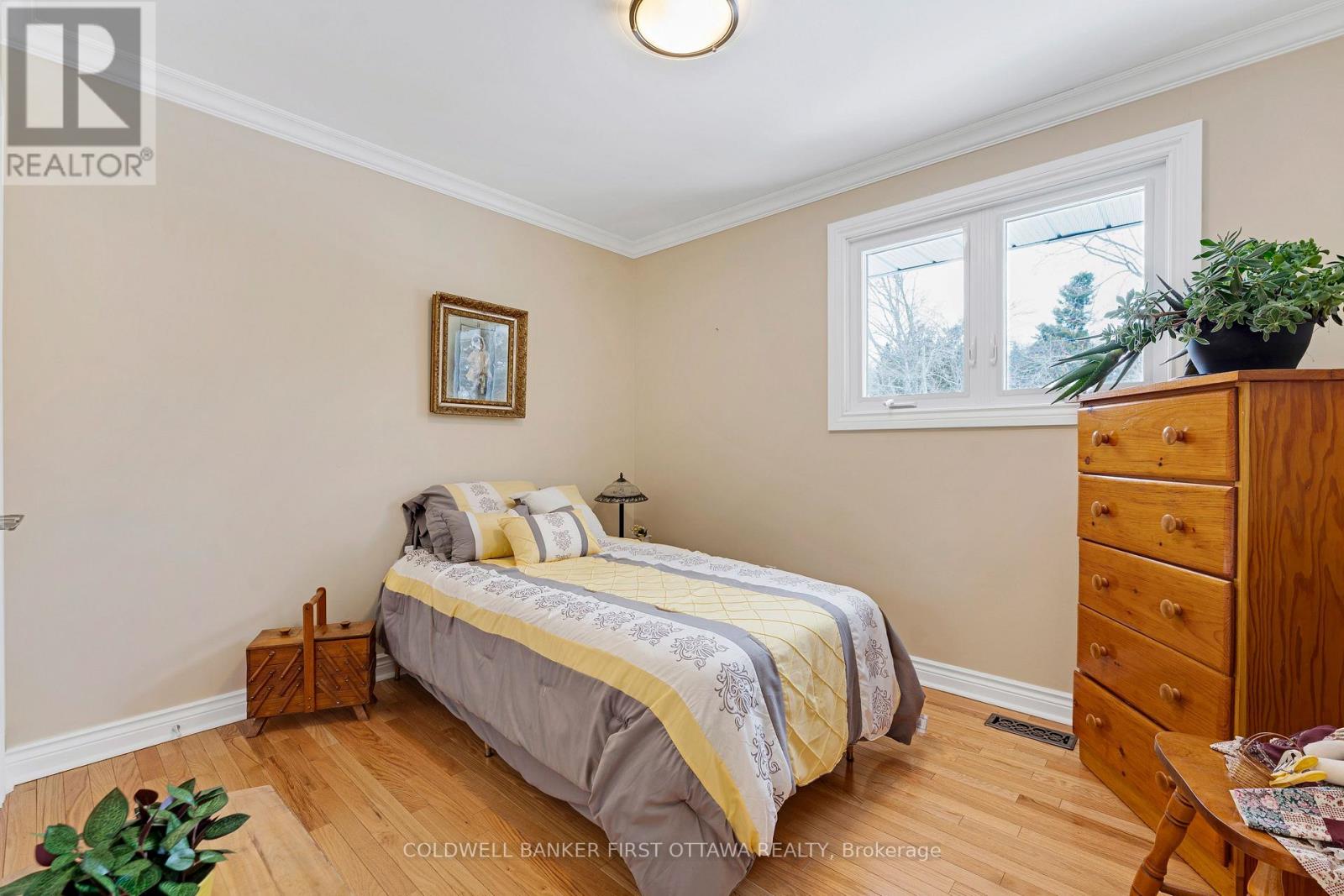 Tucked away on a beautifully treed 1.5 acre pie-shaped lot, this solid brick 3 bedroom side split is only 5 minutes to Perth! This well maintained home offers space, comfort, and versatility. Surrounded by mature trees, this home features a bright, inviting layout with custom kitchen cabinetry, hardwood floors, and refined finishes including crown moulding. The raised lower level featuring large windows, cozy propane fireplace (2020), bonus den, and ample storage. Enjoy outdoor living with a spacious deck (propane BBQ hookup), firepit, beautiful gardens with water fountain, and a large partially fenced yard. Two sheds add great functionality, including one with power - ideal for a workshop or hobby space. Major updates include Generac generator (2023), furnace & A/C (2019), pressure tank (2022), hot water tank (2024) and more. Minutes to the Rideau Ferry Yacht Club, and quick access to boating on Big Rideau Lake and Otty Lake. From fireside evenings to peaceful mornings on the deck, this property is all about lifestyle. (id:64974)
