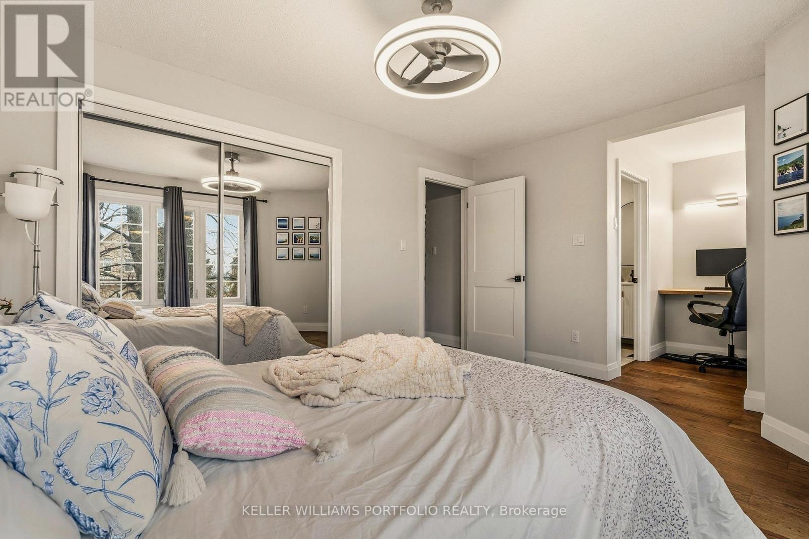 Welcome to 2424 Eileen Dr., an impeccably finished Burlington residence offering refined living in a prime, walkable location. Steps to Central Park, the Library, and Downtown, this home blends modern comfort with exceptional convenience. The main level showcases sophisticated open-concept living, highlighted by a contemporary electric fireplace, newer picture window, and a chef-inspired kitchen with a large island, quartz countertops, stainless appliances, and a gas range. The serene primary suite features a spa-like ensuite with soaker tub and double vanity, and complemented by a full PAX wardrobe system in bedroom. A second bedroom, powder room with laundry, and direct backyard access complete this level. The turnkey in-law suite provides generous living and dining space, an updated kitchen with full appliance package, private laundry, a 3-piece bath, spacious bedroom, and an additional office/bedroom—ideal for multi-generational living or extended guests. Outdoors, the property impresses with a private backyard retreat featuring a gazebo sitting area off the back door, a dedicated firepit zone, garden shed, and additional covered storage behind the oversized garage (16' x 26')—perfect for hobbyist or car buff --a rare combination of comfort and functionality. A polished, versatile home offering exceptional flexibility in one of Burlington’s most desirable pockets. (id:64974)
