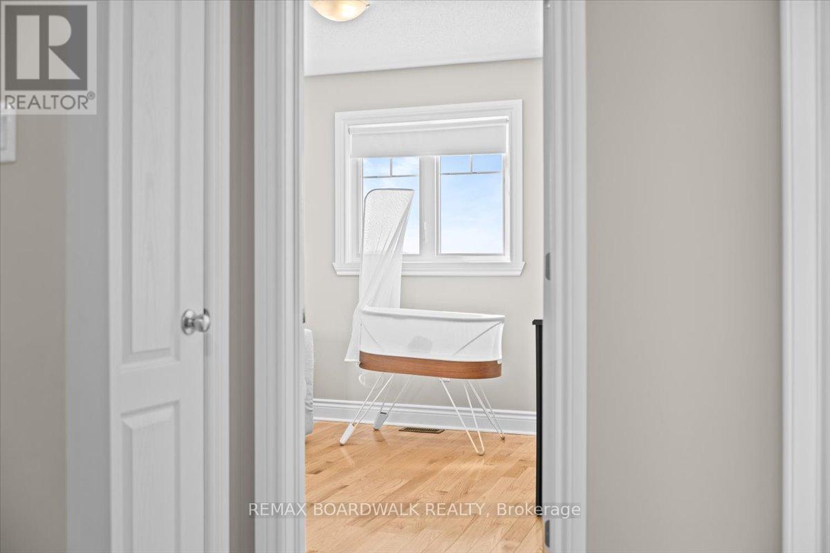 PERFECT STARTER HOME! This 3-bedroom end unit townhome is located in the family-friendly Morris Village community. Step inside to a welcoming entrance and an open-concept main level filled with natural light. The upgraded kitchen features a large island, granite countertops, stainless steel appliances, and flows seamlessly into the dining and family room. Upstairs, find three generously sized bedrooms with recently upgraded hardwood flooring. The primary bedroom includes a walk-in closet and a cheater door to the spacious five-piece bathroom. The fully finished basement offers a large family room and plenty of storage. Enjoy the backyard oasis with a large L-shaped deck (2025), gazebo with netting and privacy curtains (2025), 4x4 ft interlock paver area for BBQ (2024), shed (2022), partially fenced yard (2022), and elevated garden bed (2022). Well maintained and move-in ready - don't miss the chance to make it yours! (id:64974)