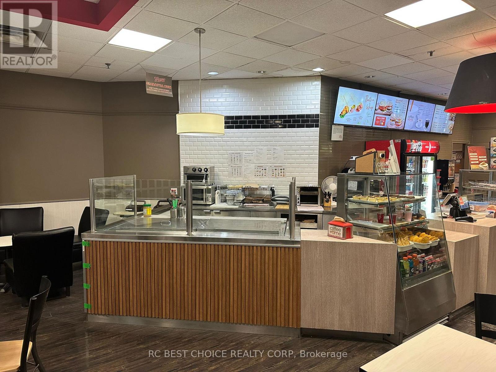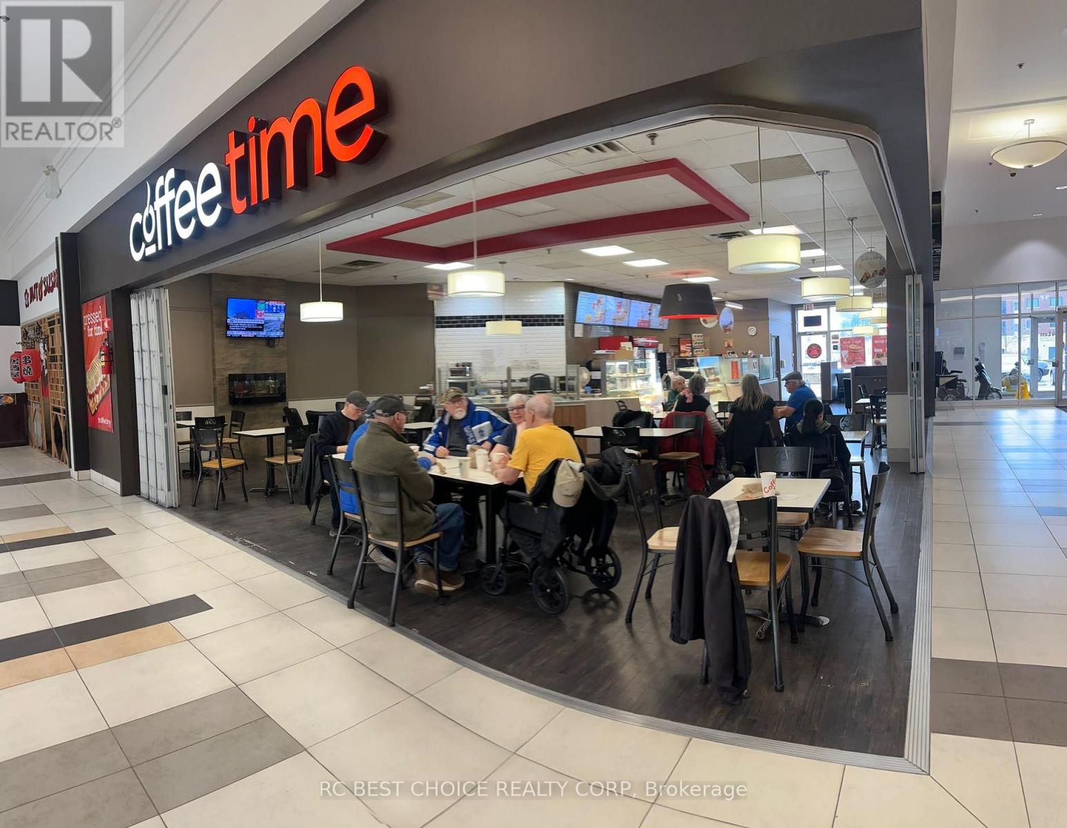 Rare opportunity to own a long-established Coffee Time franchise in busy Bowmanville Mall. Turnkey 1,880 SF space with approx. 14 years of operation and yearly revenue of about $410K. Secure lease with a renewal option. Great location beside the mall entrance, with access from both the mall and the exterior entrance for strong exposure and easy customer access. Surrounded by residential neighbourhoods, schools, daily service businesses, and ample parking. A solid opportunity for owner-operators or family business buyers. (id:64974)