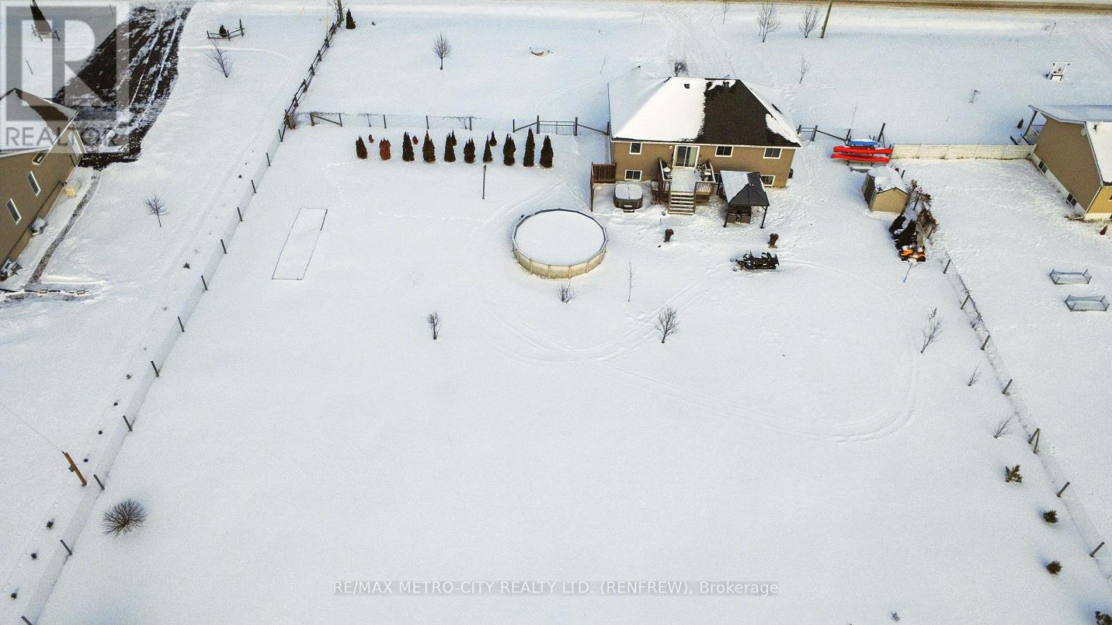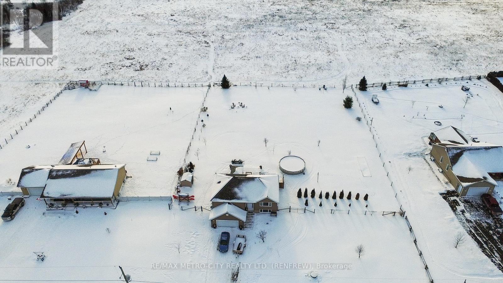 Discover this charming split level family home located in a peaceful rural setting on ONE acre of land. Perfectly situated for commuters, with quick access to the highway and just a short drive to Renfrew for all your shopping and family needs. Enjoy easy access to area golf courses and scenic waterways for outdoor adventures. Built in 2011, with over 1000 square feet on the main floor, this home has been freshly painted throughout and features refinished hardwood floors throughout the home. The open-concept layout floods the space with natural light through large windows and offers two levels of comfortable living. The spacious kitchen boasts abundant counter and cupboard space, a large center island, and is perfect for family gatherings. The home includes four bedrooms, three on the main floor, each with ample space and a 4-piece ensuite in the primary bedroom. A 4-piece main bath serves the remaining bedrooms. The lower level offers a versatile recreation room, additional bedroom, family room, office area, laundry, and direct access to the attached large garage. Enjoy outdoor living with a fenced rear yard, above-ground pool, and a rear deck overlooking stunning sunsets. This property combines rural tranquility with modern comforts-an ideal retreat for family and outdoor enthusiasts. (id:64974)