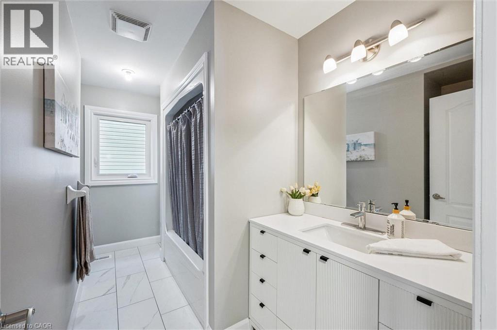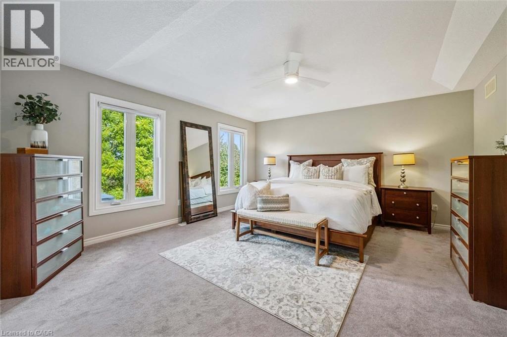 Impressive 5-bdrm, 3.5-bath home W/LEGAL 2-bdrm + den W/O bsmt apt offering 3400sqft of living space backing onto greenspace! Stunning curb appeal W/modern black dbl car garage & window framing (2023), front porch, distinctive architectural lines & landscaped front yard. Inside the main level offers spacious layout for modern living & entertaining. Front office W/tray ceilings, bamboo floors & bay window. Living room W/new gas fireplace is framed by 2 large windows. Chef-inspired kitchen W/dark cabinetry, granite counters, top-tier S/S appliances incl. B/I oven, tile backsplash & centre island W/bar-height wood countertop & seating. Dining area W/vaulted ceiling, custom wall of B/Is W/coffee bar, storage & wall of windows framing views of backyard. Step outside to upper-level Trex composite deck & take in views of greenspace beyond. 2pc bath completes this level. Upstairs primary bdrm boasts multiple windows, W/I closet & 5pc ensuite W/oversized vanity, quartz counters, dbl sinks, soaker tub & W/I glass shower. 2 add'l bdrms share 4pc bath with tub/shower & large vanity. Laundry area is located in the upper-level bathroom. Legal W/O bsmt apt offers 2 bdrms + den (one bdrm has B/I closet organizer), kitchen W/ample cabinetry & 4pc bath W/modern vanity, tub/shower & its own laundry. Luxury vinyl plank floors & sliding glass doors flood space W/natural light & provide access to lower deck & backyard. Ideal for multi-generational living or income potential, this well-designed apt offers opportunity to offset your mtg W/strong rental potential of approx. $3000/mth, private entrance & close prox. to UofG. Outside the fenced backyard offers lower deck W/stairs connecting to upper level, grassy area & peaceful wooded backdrop making it ideal space for families & pets. Upgrades: metal roof 2021, furnace & AC 2016, triple-pane windows Dec 2023, exterior & garage doors 2024 & fencing 2020. Walking distance to Rickson Ridge PS, mins from UofG & easy access to Hanlon Pkwy & 401 (id:64974)