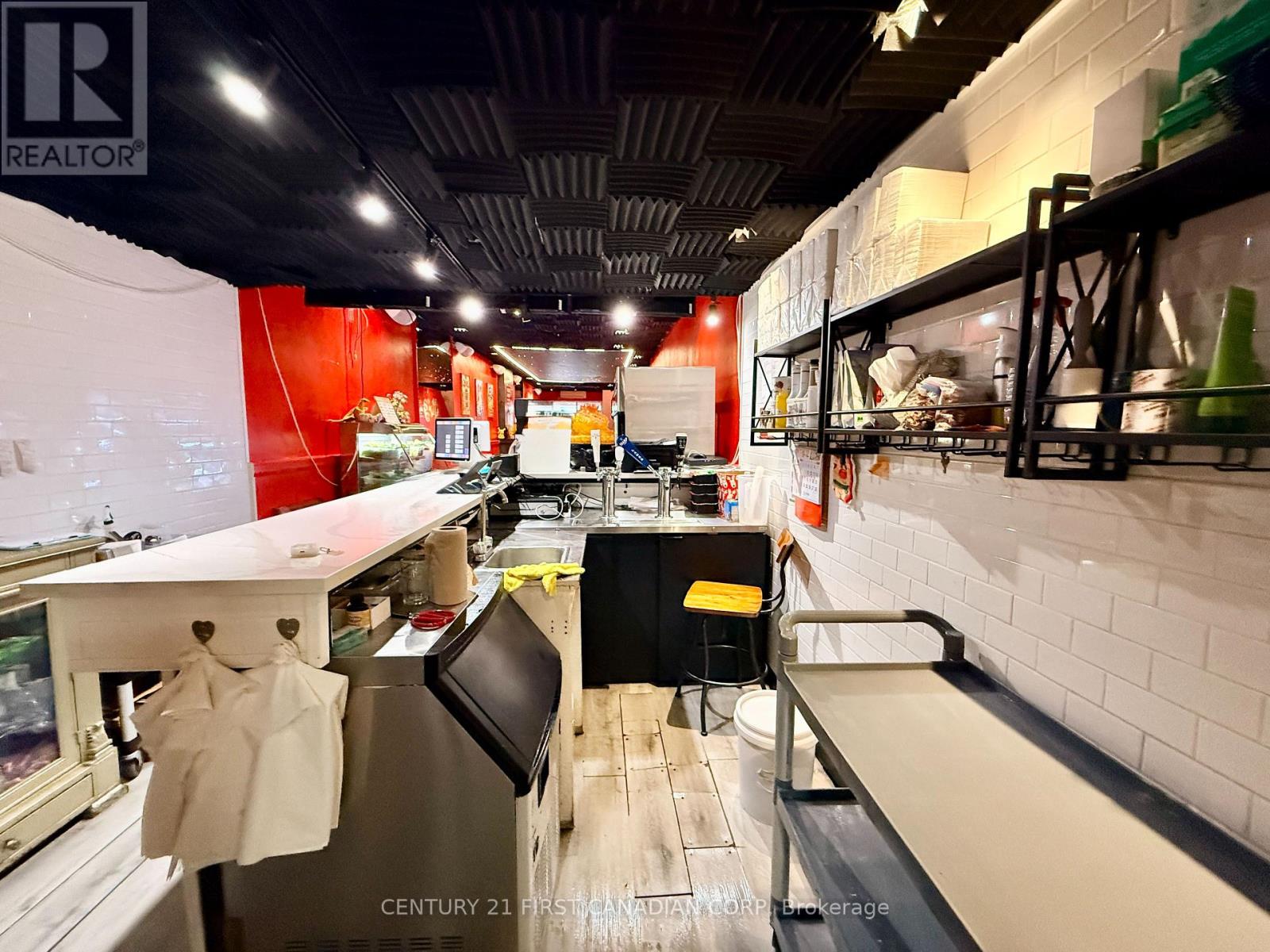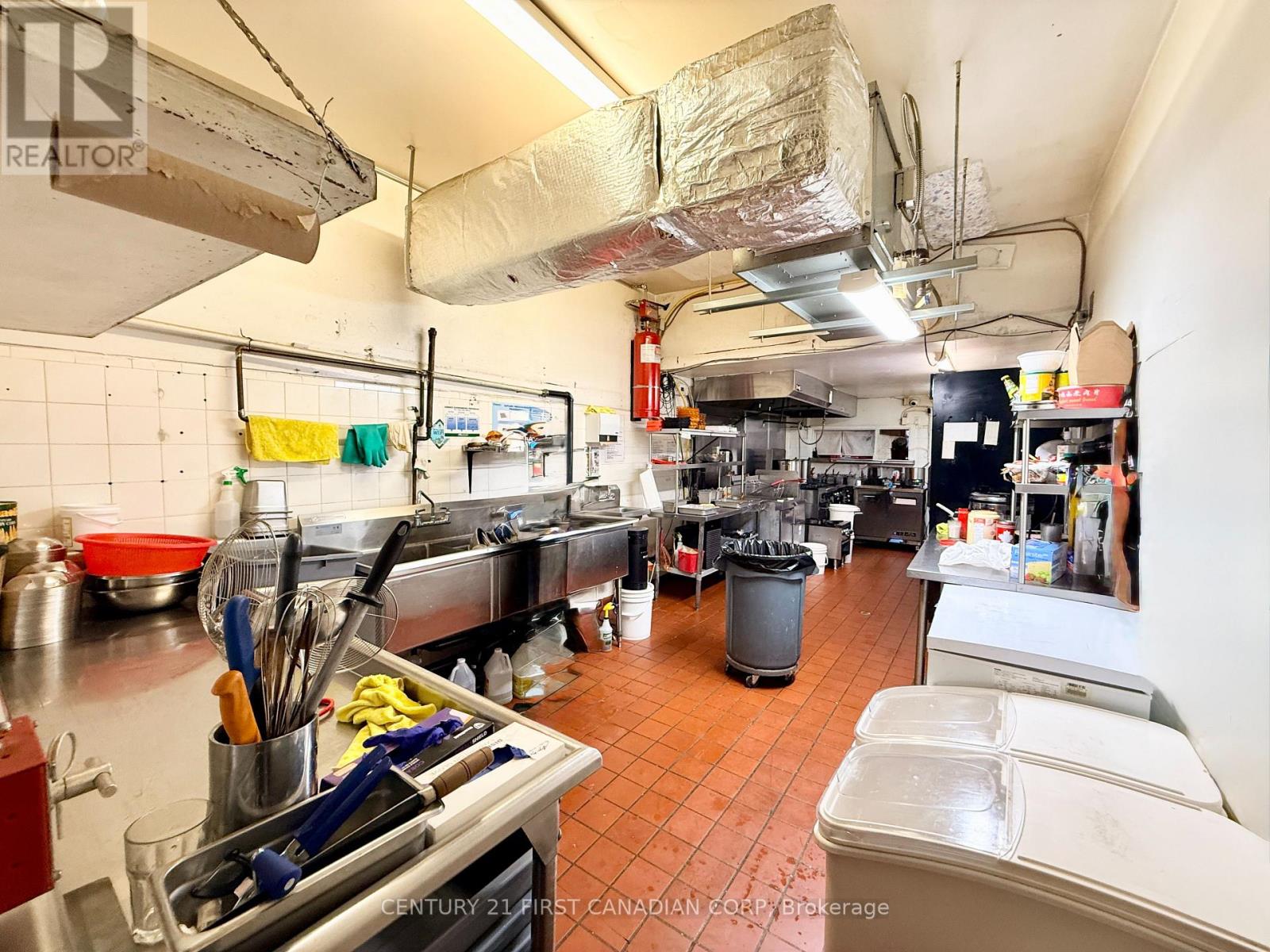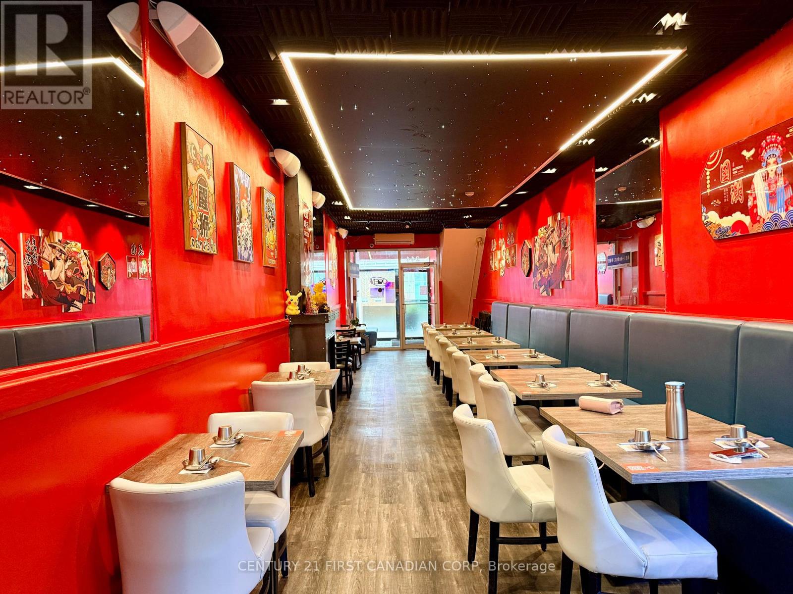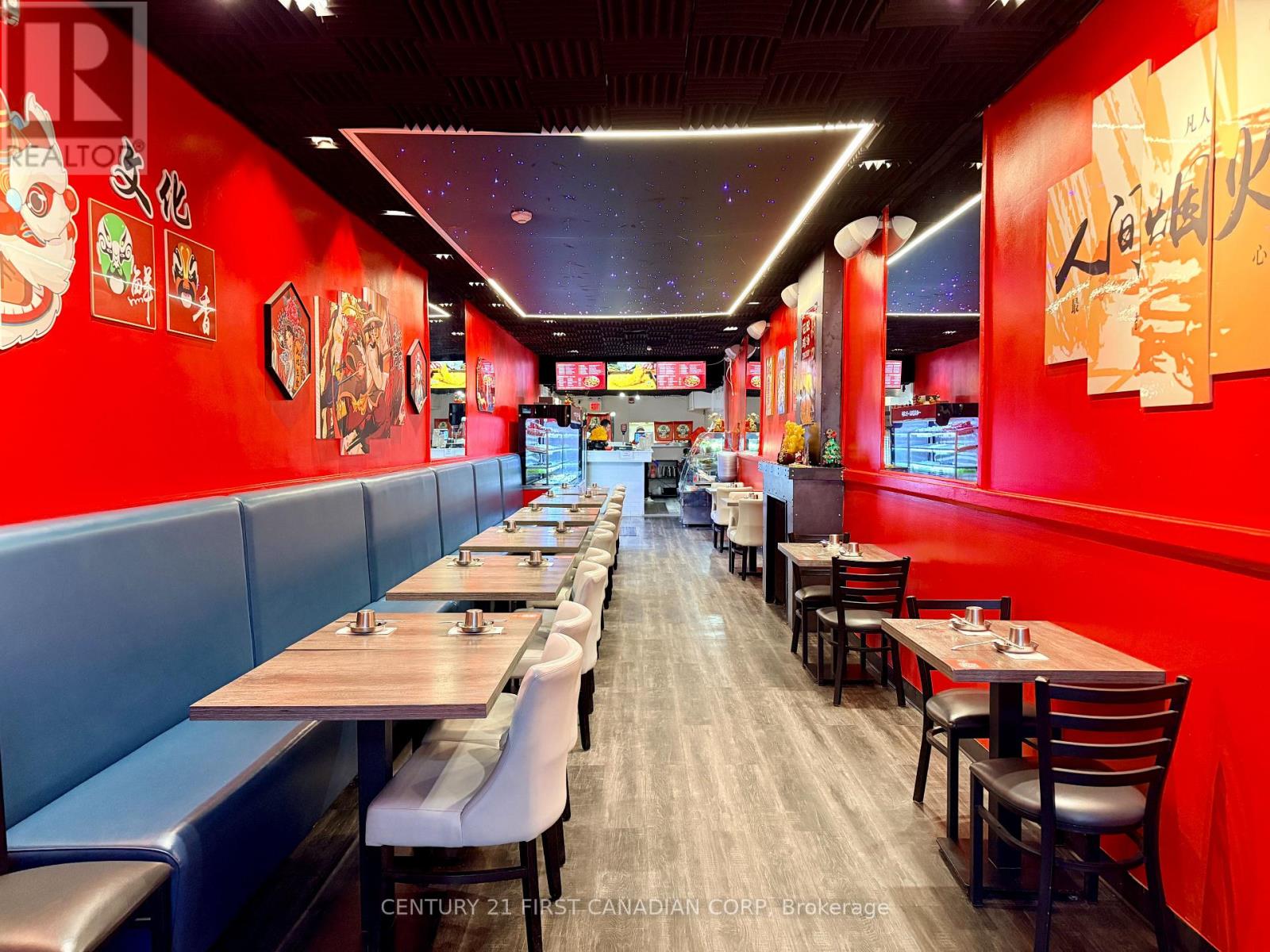 A fantastic opportunity to own a thriving business in the heart of London, Ontario. This impressive establishment offers 2,100 sqft of space, making it ideal for culinary professionals and aspiring entrepreneurs alike. Step into the beautifully renovated dining area, an inviting space that comfortably accommodates up to 45 guests. Renovated just 2 years ago, the dining room features a stunning built-in starlight ceiling, creating a warm and captivating ambiance that enhances the overall dining experience. Behind the scenes, the restaurant boasts a spacious, fully equipped kitchen designed to support efficient operations. It includes a commercial new hood, deep fryer, electric and gas ovens, 9 freezers, a walk-in cooler, and generous prep space, providing everything needed for a high-functioning kitchen. The lease also includes access to the basement for additional storage, allowing for a well-organized and streamlined restaurant operation. (id:64974)