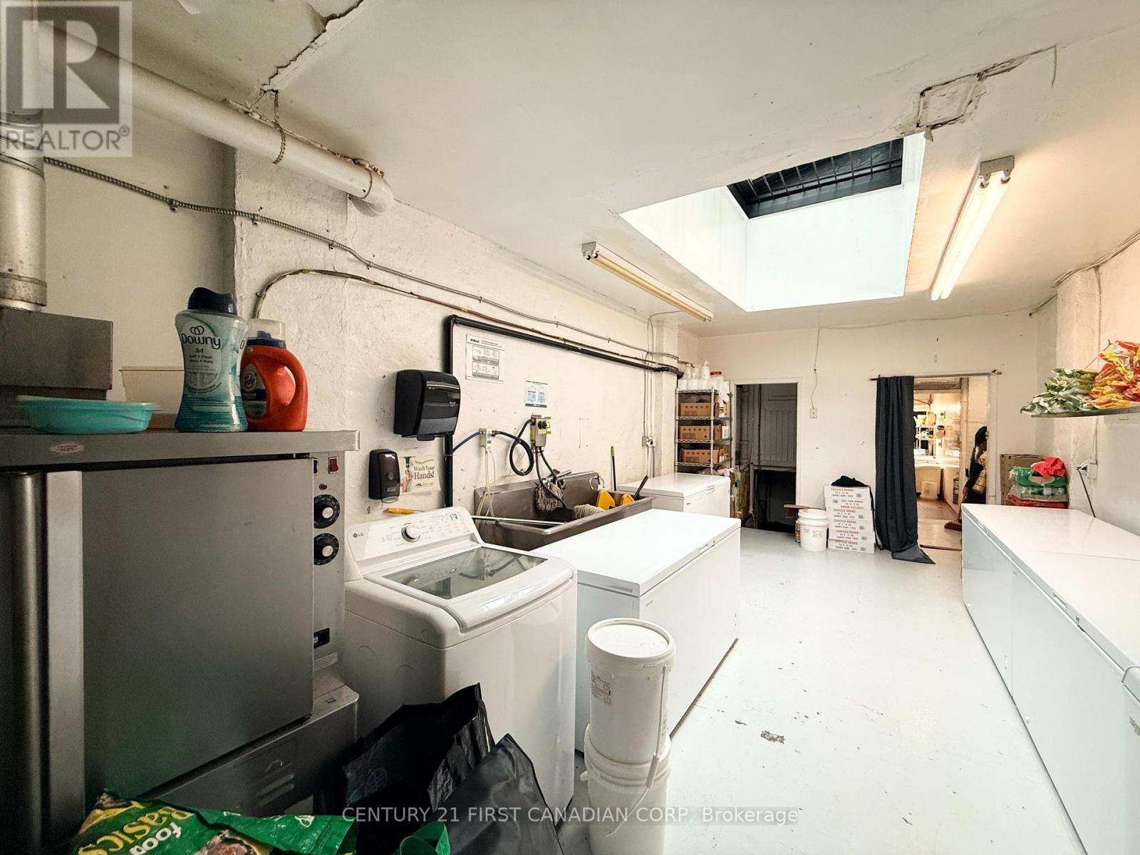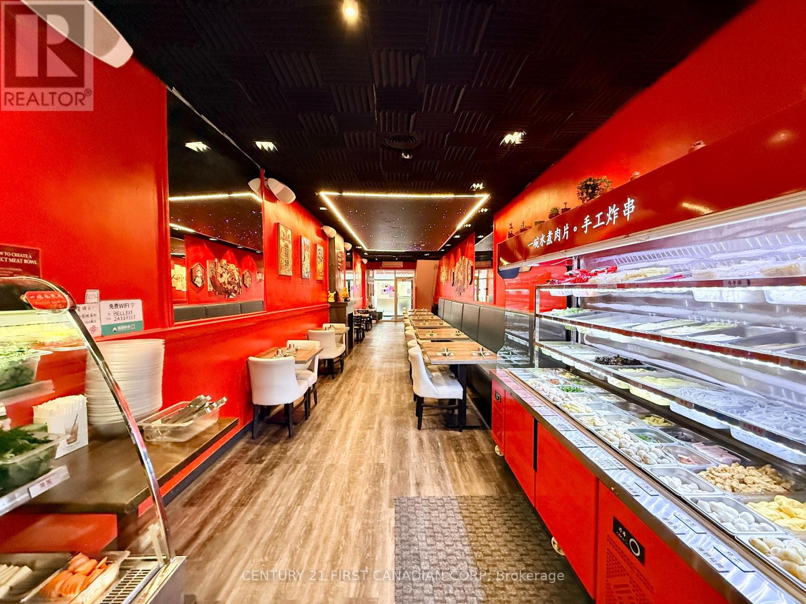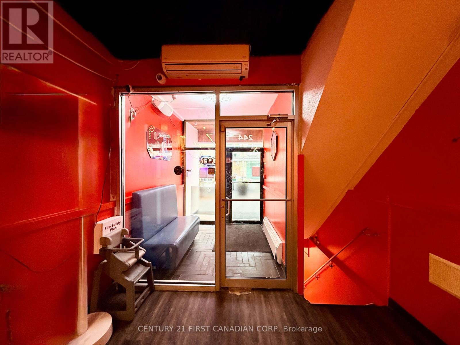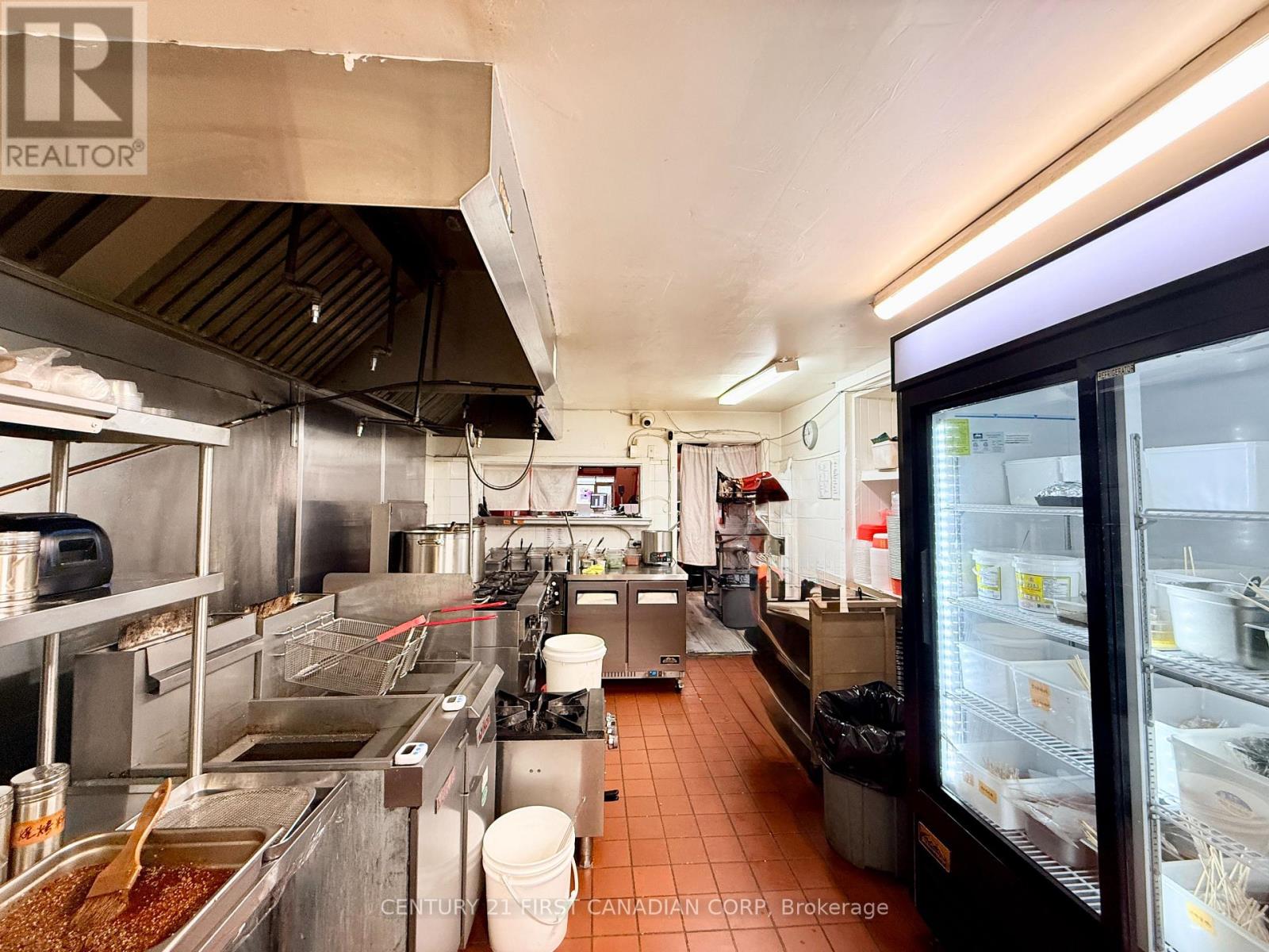 A fantastic opportunity to own a thriving business in the heart of London, Ontario. This impressive establishment offers 2,100 sqft of space, making it ideal for culinary professionals and aspiring entrepreneurs alike. Step into the beautifully renovated dining area, an inviting space that comfortably accommodates up to 45 guests. Renovated just 2 years ago, the dining room features a stunning built-in starlight ceiling, creating a warm and captivating ambiance that enhances the overall dining experience. Behind the scenes, the restaurant boasts a spacious, fully equipped kitchen designed to support efficient operations. It includes a commercial new hood, deep fryer, electric and gas ovens, 9 freezers, a walk-in cooler, and generous prep space, providing everything needed for a high-functioning kitchen. The lease also includes access to the basement for additional storage, allowing for a well-organized and streamlined restaurant operation. (id:64974)