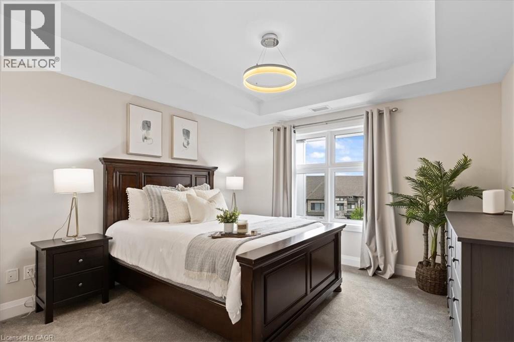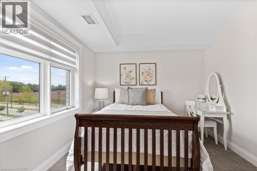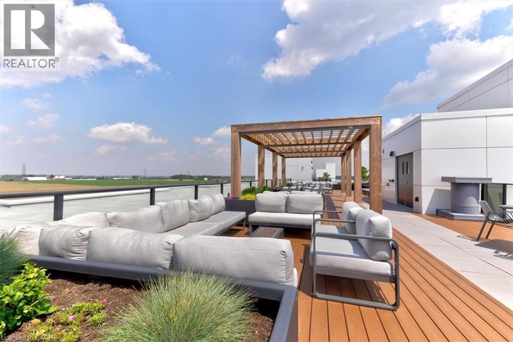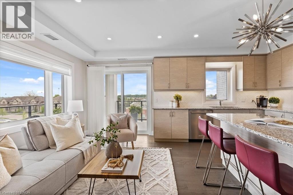 Beautiful 2-bedroom, 2-bath executive condo located in the highly sought-after Carriage Crossing neighbourhood. This bright corner unit, just 4 years old, enjoys west-facing exposure with no direct neighbouring views, allowing for plenty of natural light throughout the day. The modern open-concept kitchen features quartz countertops, a stylish herringbone backsplash, under-cabinet lighting, a large island, stainless steel appliances, and plenty of storage—perfect for everyday cooking or entertaining guests. The sun-filled living area offers engineered hardwood flooring, upgraded lighting, and direct access to an expansive wraparound balcony. With two separate seating areas and wide open panoramic views, it’s an ideal spot to unwind with a drink after a long day. The spacious primary bedroom includes two closets and a private ensuite featuring a spa-inspired glass shower with built-in bench. The second bedroom is generously sized and filled with natural light, making it perfect for guests, a home office, or additional living space. Both bathrooms are finished with granite countertops and upgraded fixtures. This unit also includes a convenient drive-in underground parking space with a large private storage locker located directly in front, making access simple and practical. Additional features include in-suite laundry, water heater, and water softener. Residents enjoy access to an incredible rooftop terrace complete with planter gardens, comfortable seating areas, a fire table, communal BBQ, and stunning views—a wonderful place to gather with friends or relax outdoors. Fantastic location close to Rim Park, Grey Silo Golf Club, BlackBerry, scenic walking and biking trails, Brown’s Social House, Conestoga Mall, and the St. Jacobs Farmers’ Market. Experience the ease and comfort of condo living in one of Waterloo’s most desirable communities. (id:64974)