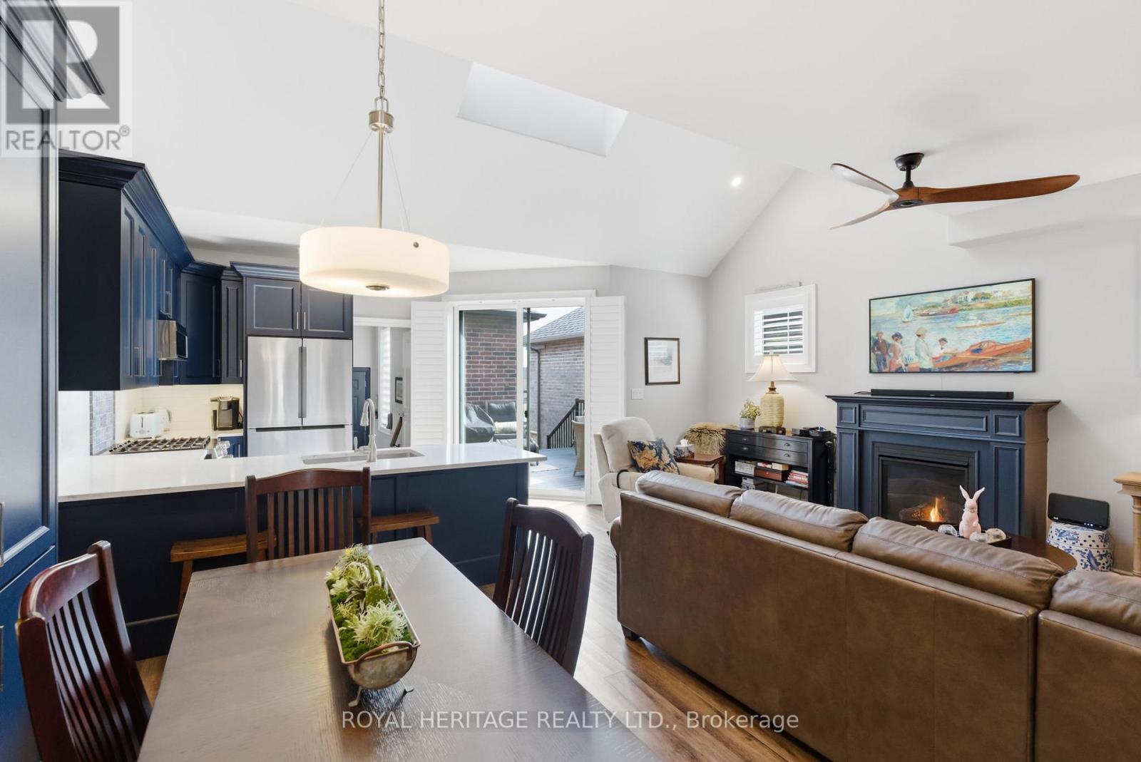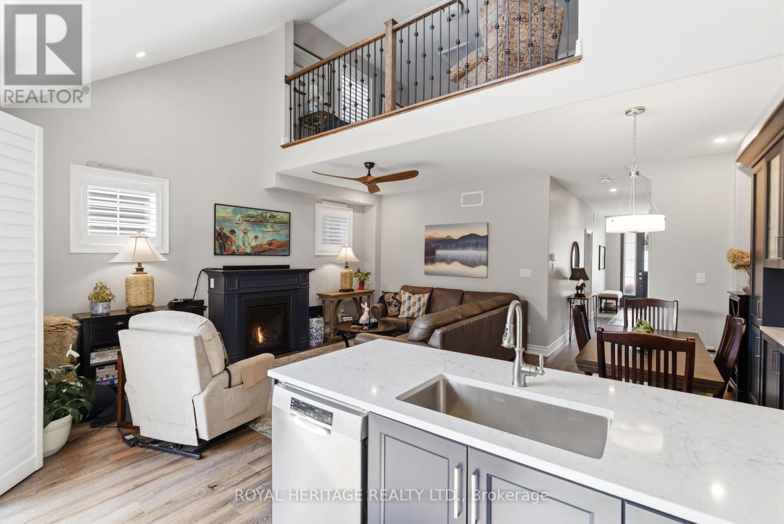 Welcome to 245 Strachan Street, an exceptional bungaloft in one of Port Hope's most sought-after communities. Beautifully finished throughout, this home blends style, comfort, and functionality.It offers 3 spacious bedrooms, 4 bathrooms, and a double car garage, making it ideal for families, downsizers, or those seeking flexible living space. The main floor features a generous primary suite with a 4-piece ensuite and upgraded double sink vanity, along with a bright open-concept kitchen, living, and dining area designed for everyday living and entertaining. Upstairs, a sun-filled loft with an oversized window includes a cozy family room, second bedroom, and 3-piece bath perfect for guests or a private retreat. The fully finished lower level adds even more space with a large recreation area, third bedroom, and an additional 3-piece bathroom.Located just a short walk to the Port Hope Golf Club, Lake Ontario, parks, trails, schools, and local dining, and only minutes from Highway 401 and Port Hope's charming historic downtown, this home offers an exceptional lifestyle in a prime location. (id:64974)