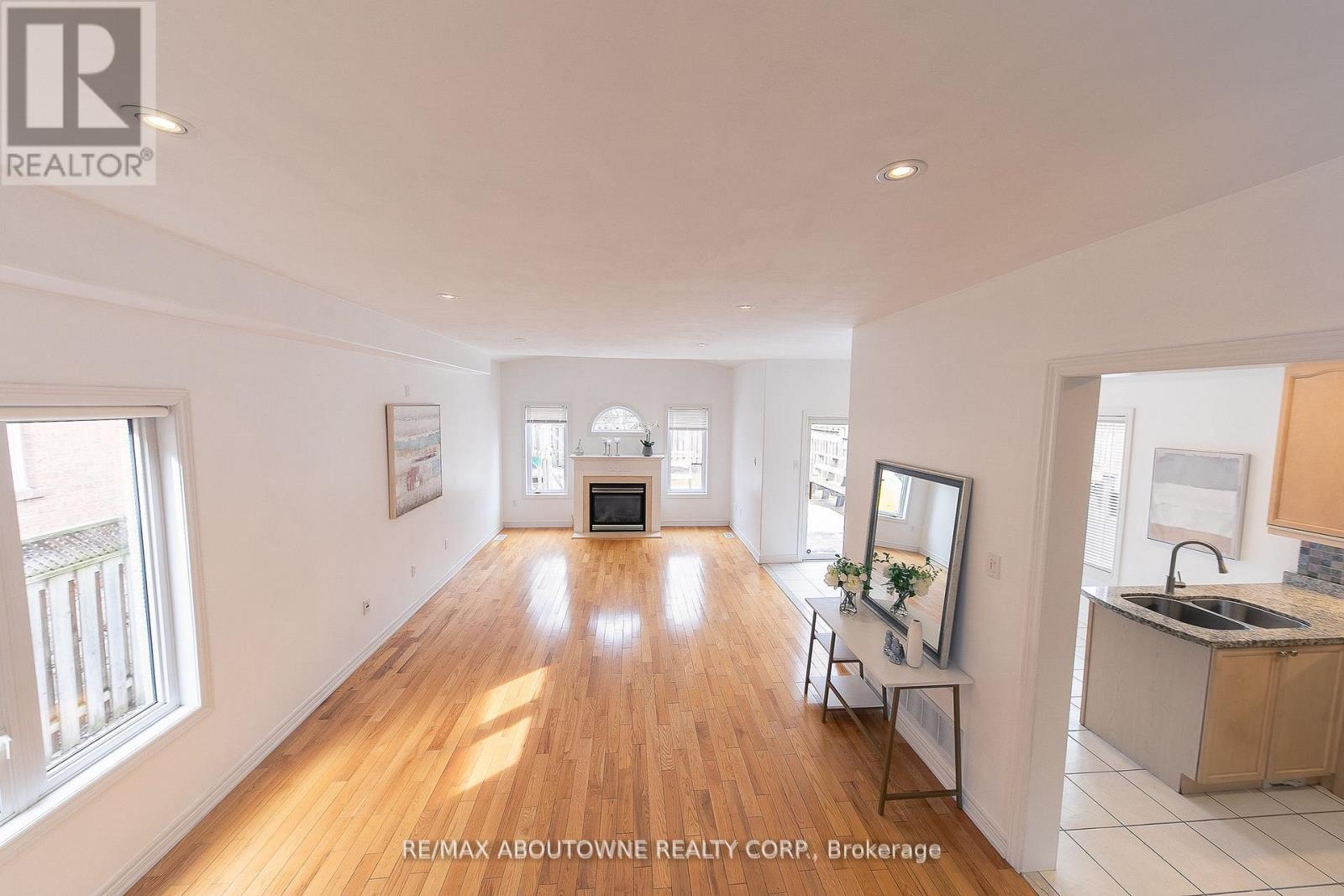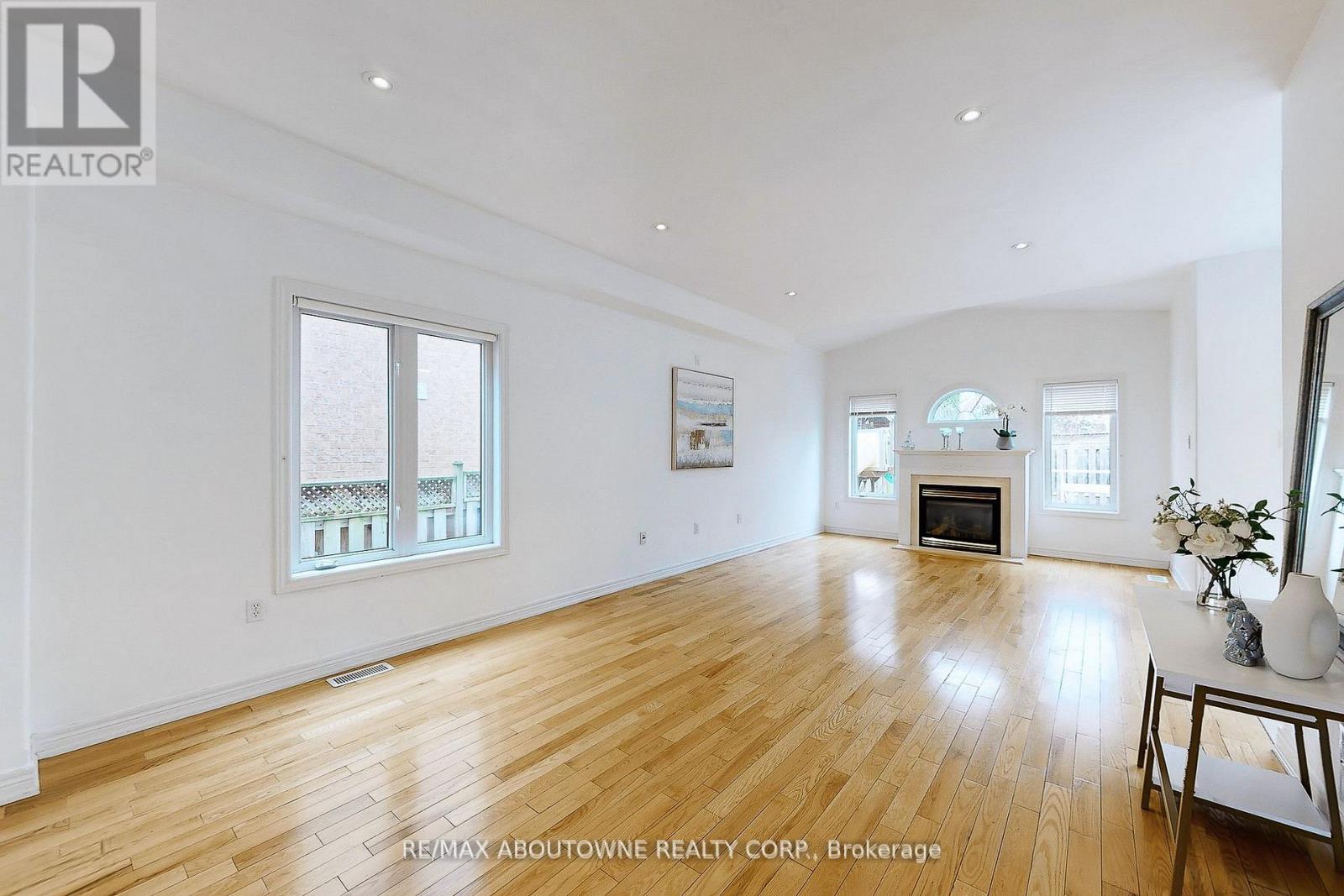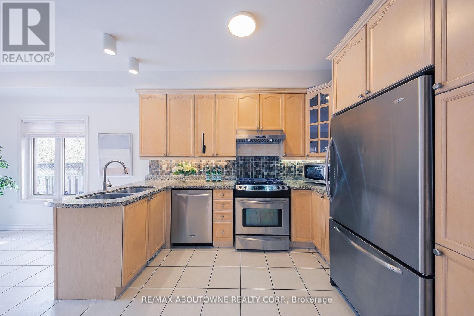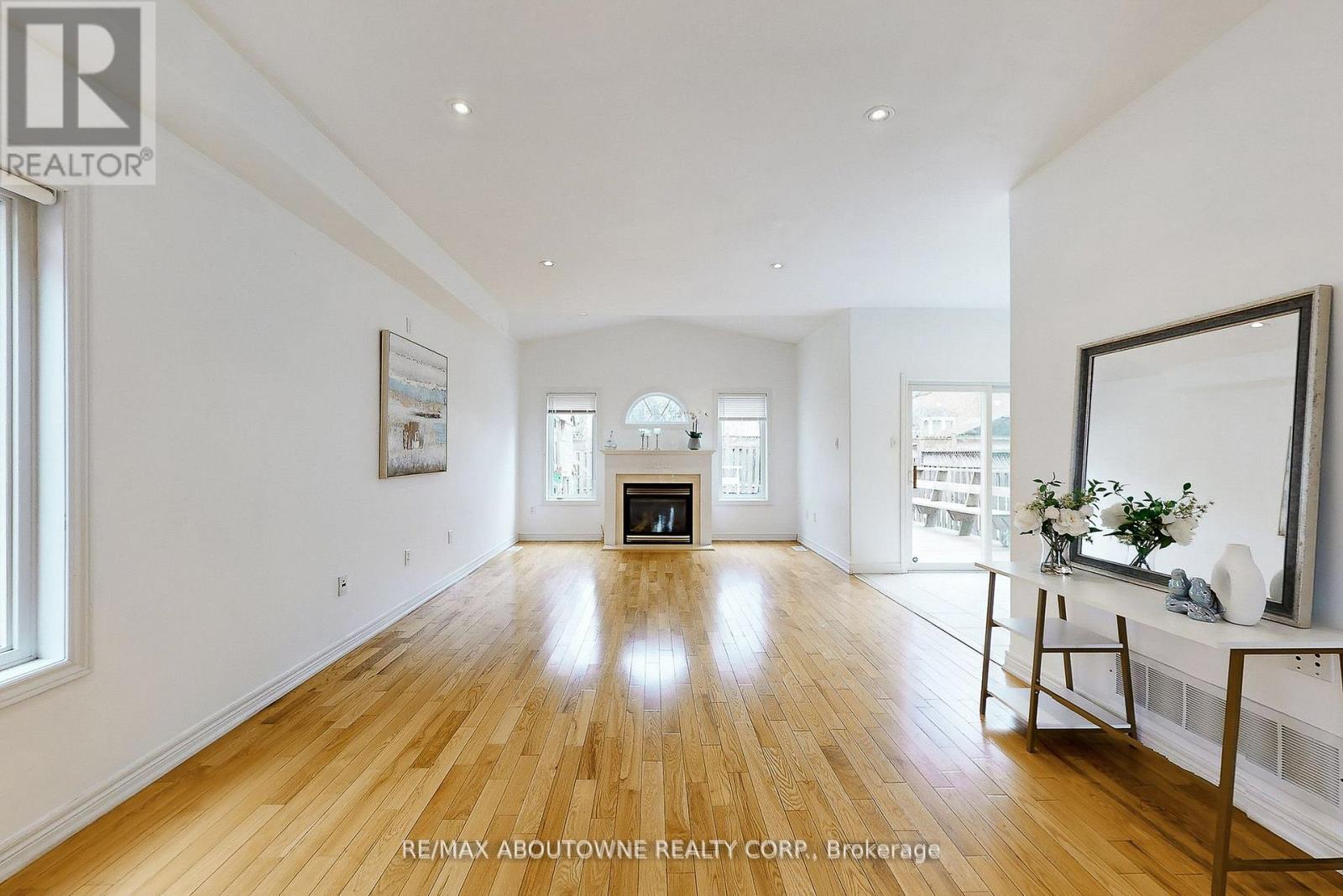 Welcome to this bright and beautifully maintained detached home located in the highly sought-after Joshua Creek community of Oakville, within the catchment of the highly regarded Joshua Creek Public School and Iroquois Ridge High School. Situated on a quiet, family-friendly street, this home offers a peaceful setting while remaining conveniently close to parks, community centres, shopping, and major highways including 403,407, and QEW. The home features 3 bedrooms and 4 bathrooms. A welcoming front porch and elegant entrance with glass panels allow natural light to flow into the home. The open-concept main floor features 9-ft ceilings and hardwood flooring throughout the living and dining areas, while the kitchen and hallway are finished with ceramic tile. The living room is centred around a gas fireplace, highlighted by a distinctive half moon accent window and large windows on either side, creating a bright and inviting space. The kitchen features granite countertops, stainless steel appliances, and a mosaic backsplash, and flows into a bright breakfast area. Large sliding doors lead to a spacious wooden deck and fully fenced backyard, complete with a children's play structure (included) - ideal for outdoor entertaining and family enjoyment. Upstairs offers three bright bedrooms and two full bathrooms, including one bedroom featuring a beautiful architectural window design that fills the room with natural light. The primary bedroom features a vaulted ceiling, large windows, and two separate closets providing generous storage. The ensuite includes a double vanity, soaker tub, and separate shower. The finished basement adds additional living space with a recreation area and a 3-piecebathroom, offering flexibility for a home office, gym, or guest space. Located in one of Oakville's most desirable school zones, this home offers a wonderful combination of comfort, functionality, and location. (id:64974)