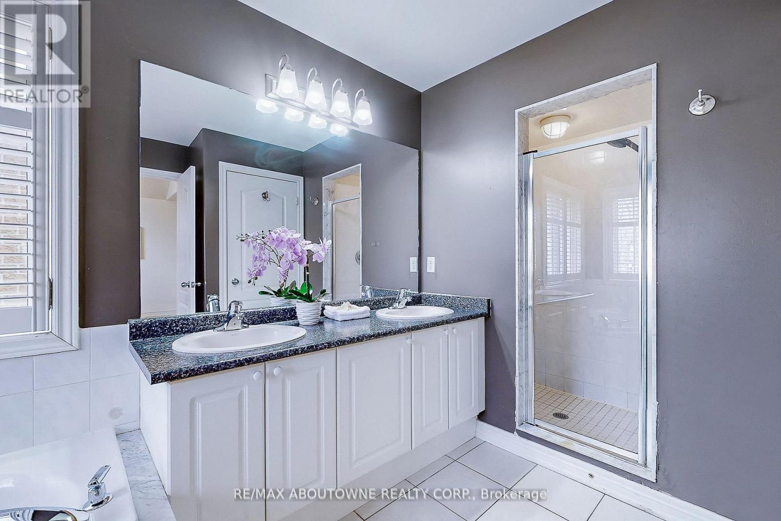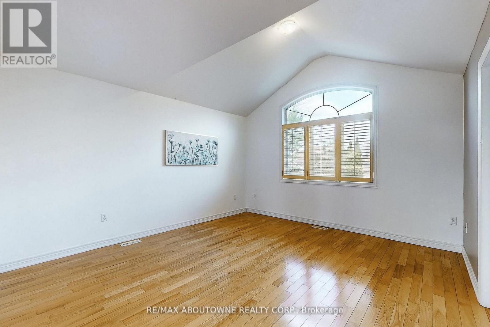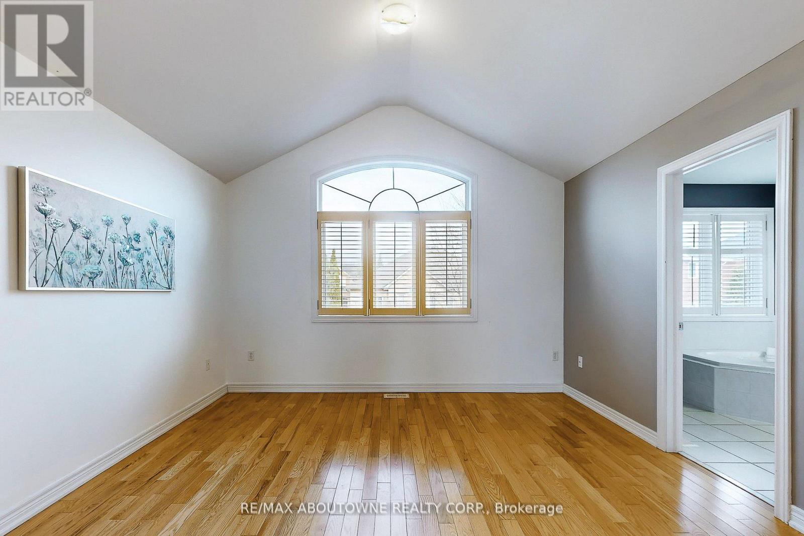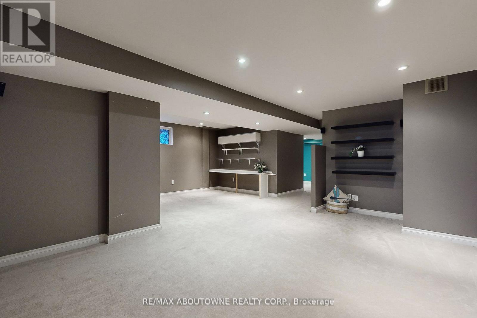 Welcome to this bright and beautifully maintained detached home located in the highly sought-after Joshua Creek community of Oakville, within the catchment of the highly regarded Joshua Creek Public School and Iroquois Ridge High School. Situated on a quiet, family-friendly street, this home offers a peaceful setting while remaining conveniently close to parks, community centres, shopping, and major highways including 403,407, and QEW. The home features 3 bedrooms and 4 bathrooms. A welcoming front porch and elegant entrance with glass panels allow natural light to flow into the home. The open-concept main floor features 9-ft ceilings and hardwood flooring throughout the living and dining areas, while the kitchen and hallway are finished with ceramic tile. The living room is centred around a gas fireplace, highlighted by a distinctive half moon accent window and large windows on either side, creating a bright and inviting space. The kitchen features granite countertops, stainless steel appliances, and a mosaic backsplash, and flows into a bright breakfast area. Large sliding doors lead to a spacious wooden deck and fully fenced backyard, complete with a children's play structure (included) - ideal for outdoor entertaining and family enjoyment. Upstairs offers three bright bedrooms and two full bathrooms, including one bedroom featuring a beautiful architectural window design that fills the room with natural light. The primary bedroom features a vaulted ceiling, large windows, and two separate closets providing generous storage. The ensuite includes a double vanity, soaker tub, and separate shower. The finished basement adds additional living space with a recreation area and a 3-piecebathroom, offering flexibility for a home office, gym, or guest space. Located in one of Oakville's most desirable school zones, this home offers a wonderful combination of comfort, functionality, and location. (id:64974)