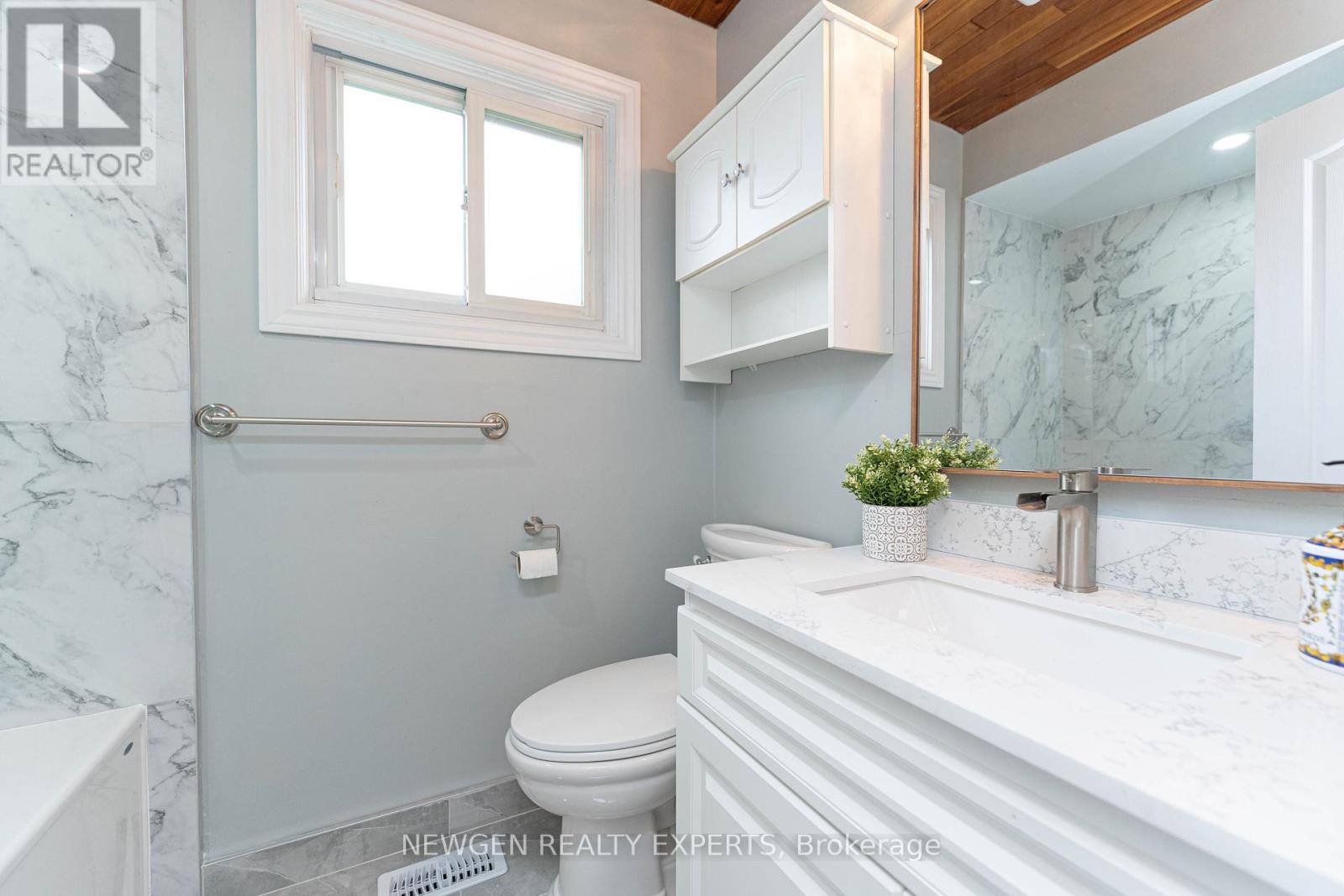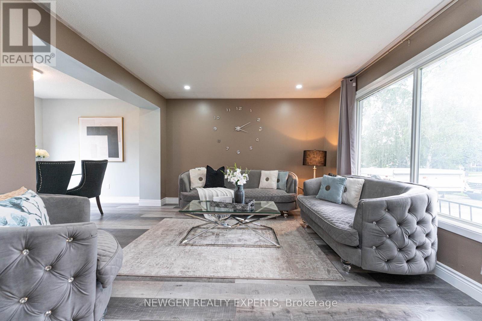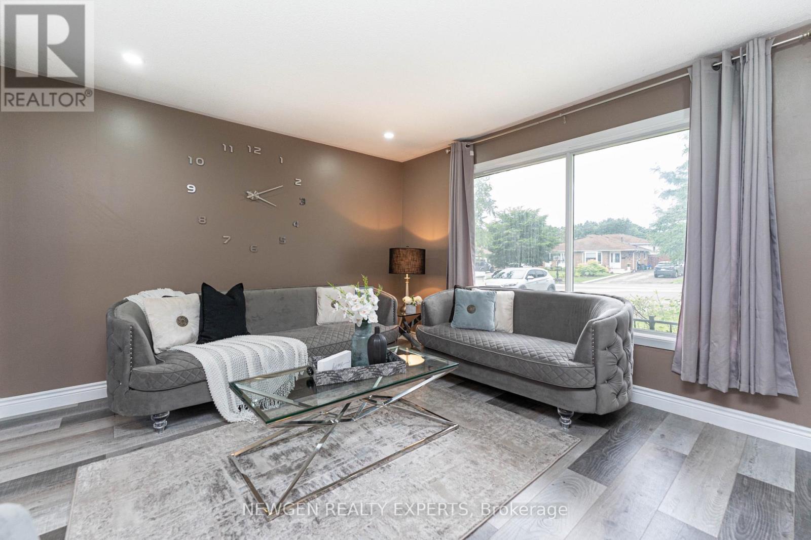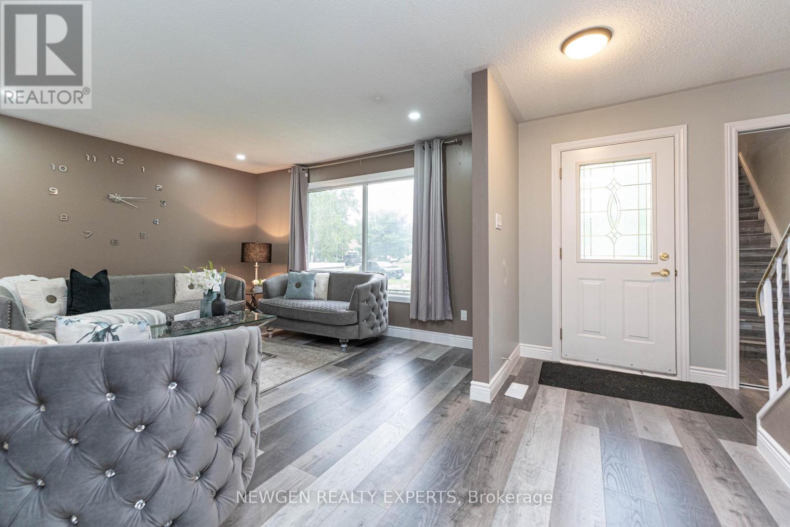 Welcome to 2458 Martin Court a beautifully upgraded semi-detached home tucked away on a quiet cul-de-sac in one of Burlington's friendliest neighbourhoods. This fully renovated, open-concept gem offers over 1800 sq ft of stylish living space and is truly move-in ready. Step into the bright and airy kitchen featuring quartz countertops, sleek stainless steel appliances, and a view of the backyard perfect for everyday living and effortless entertaining. Engineered hardwood flooring flows throughout the main level, enhancing the homes modern, cohesive feel. The sun-filled living room offers a large bay window that floods the space with natural light and opens to a dining area with a walkout to the backyard patio. Upstairs, you'll find three generously sized bedrooms with ample storage and a renovated main bath complete with elegant tile and a tub/shower combo. The professionally finished basement includes a cozy entertainment space, a second full bath with a walk-in shower, and the potential to be converted into an in-law suite. Enjoy summer evenings in the private backyard featuring an aggregate patio, lush greenery, mature trees, and beautiful landscaping for maximum privacy. With parking for three cars and the option to extend the driveway, this home checks all the boxes. Just minutes to the lake, parks, trails, and all major amenities, with quick highway access to the 407 and QEW this is Burlington living at its best. (id:64974)