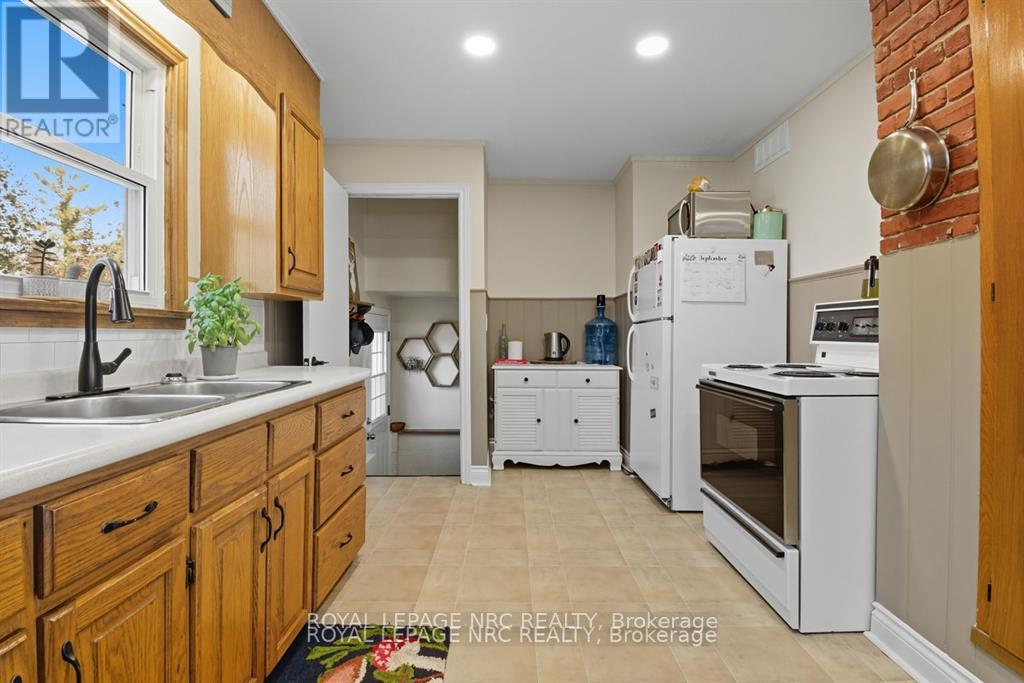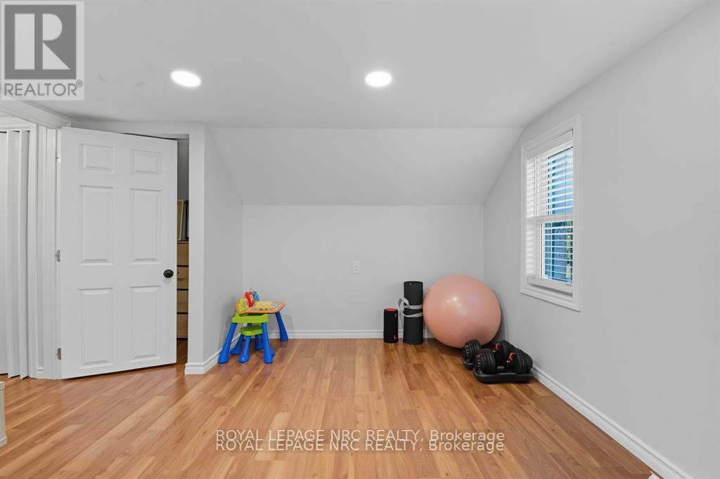 Welcome home to 2459 Thompson rd in Northend Niagara Falls! This property is truly unique and turnkey! You will arrive at the home and immediately see that you have no neighbours on the west side and no rear neighbours either! With 174 feet of frontage on Thompson road, and 184 feet of frontage on Portage rd, youll find the privacy youre looking for! You will arrive and park in the double wide driveway, and find yourself looking at the 613 sqft garage, that has ten foot ceilings, and Hydro! Entering the home you will see the home is ready to go and turnkey! The home features new roof with warranty in 2023, new flooring throughout, new electrical panel in 2025, bathroom in 2022, as well as all new lighting! The main floor consists of a bedroom, 4pc bathroom, kitchen, dining room and living room! Heading upstairs youll find another living area/office (could be another bedroom), and a second bedroom! The basement consists of a third bedroom, and utility/laundry room! Heading outside into the spacious yard, youll find yourself on a patio with a wood fireplace! The yard is fully fenced, with a gate for access off Thompson rd, and has beautiful trees for shade! The yard is expansive and private! Book your private showing today! (id:64974)