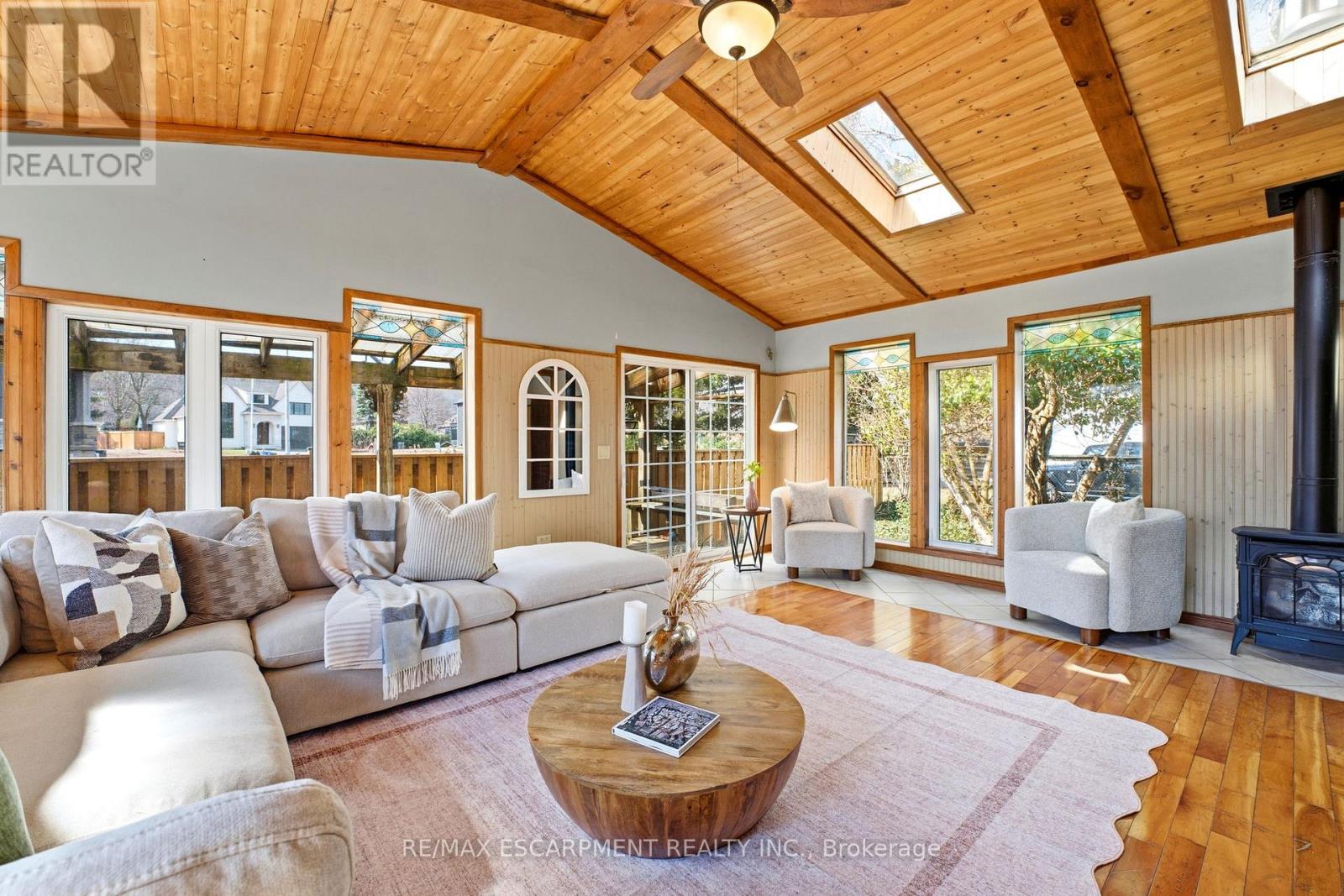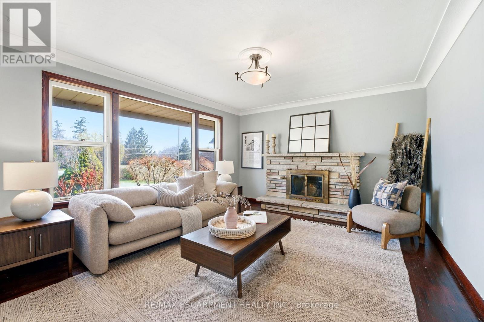 A rare blend of country-sized living with city convenience - right in the heart of Grimsby. Set on just under half an acre of mature, beautifully landscaped grounds, this charming 2-bedroom bungalow offers the perfect balance of privacy and accessibility. Inside, you'll find a spacious family room with vaulted ceilings and a cozy gas potbelly stove, along with a separate formal living room featuring a wood-burning fireplace - ideal for entertaining or relaxing with family. Ideally located just minutes from the new West Lincoln Hospital, QEW, and GO Transit, commuting is effortless, with quick access to the U.S. border (30 minutes), Hamilton (20 minutes), and downtown Toronto (approximately one hour). Families will appreciate proximity to the new West Niagara Secondary School. Enjoy the serenity of a generous lot without sacrificing convenience - and if the existing home doesn't suit your vision, this property also presents an exceptional opportunity to build your custom dream home in a highly desirable location. (id:64974)